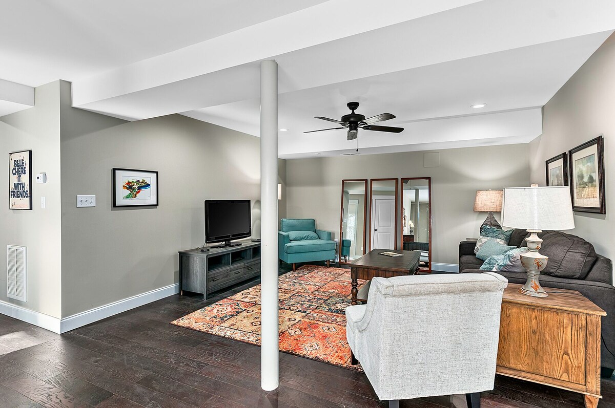This is a renovated basement. There is spacious living room with a bedroom. A big open shower in the bathroom with plenty of light and movement for all your needs. It comes with a kitchenette that has mini refrigerator, microwave, coffee maker, and kettle. Also the apartment has a washer and dryer.
