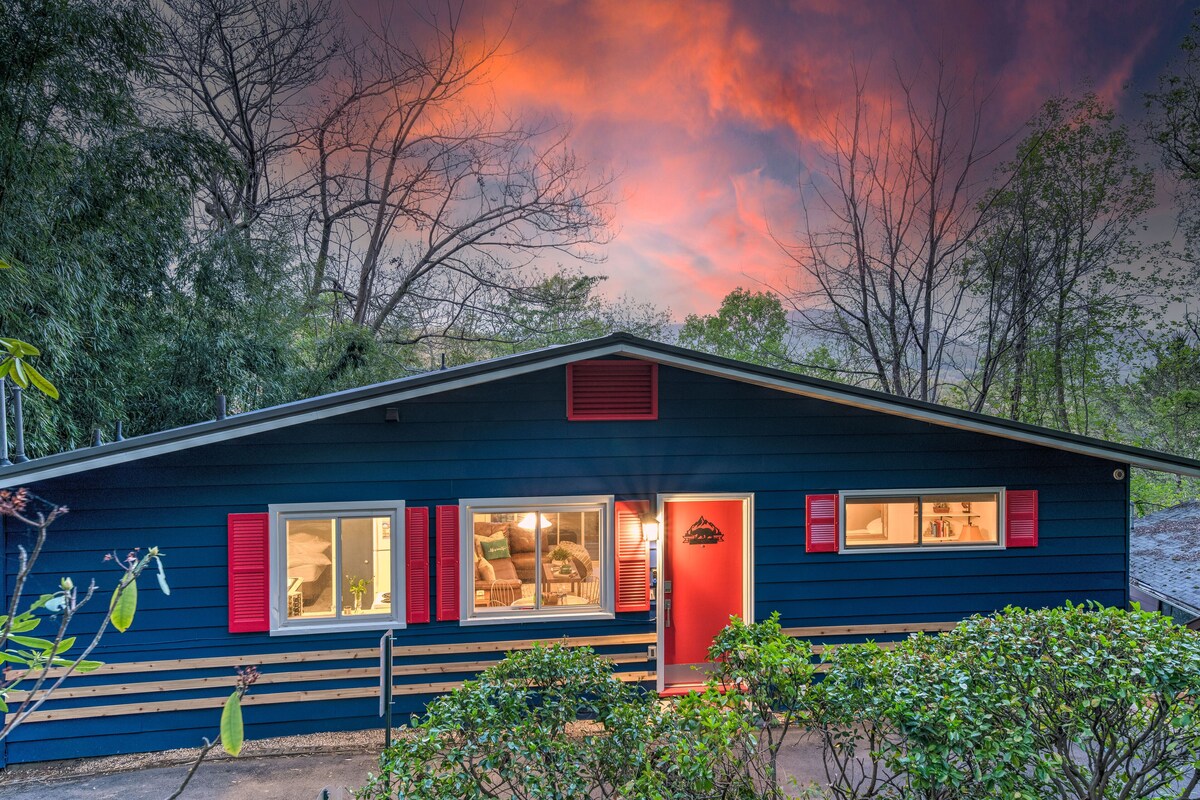 5-star 1960s unique mountain cottage that is just 1.2 miles from downtown Asheville. Located on Beaucatcher Mountain, this charming home sits on a narrow switchback road above the famous mountain tunnel heading into downtown Asheville. It is located in one of the best locations in the city! Step into the 1960s with this bright home’s original built-ins and well-preserved mid-century feel. The house features cozy furniture, balcony, grill, and an additional outdoor space immersed in the mountains. You can throw a rock into downtown Asheville, while being a world away on Beaucatcher Mountain. It offers hiking opportunities and occasional bear sightings, yet it is still only a 5-minute drive to DT. The home consists of two cabins/chalets on top of each other on a mountain top. Each chalet has its own private entrance. This listing is for the bottom unit, The Zurich Swiss Chalet #9B. It is spacious with a full kitchen, living room, dining table with 2 seats, 1 large bedroom with a queen bed, 1 velvet sleeper sofa that opens up as a fun floor mattress (reference pictures with measurements to confirm size suitability), laundry area, and 1 full bathroom. Also, open area includes an adjustable desk with a 30\ s parked cars. Please watch your step and walk safely while avoiding scratching their cars with the luggage. Brought to you by our family, who fell in love with Asheville and wanted to share this unique and special find with you. Guest Access: - There are outdoor security cameras - Self check-in/out. - House is located below a top chalet with a separate and private entrance. - This upstairs chalet is another short term rental. - 100% of bottom chalet/cabin is yours. Other things to note: - 1.2 miles from DT Asheville / lost cost Uber. - House not childproofed but kids of all ages are welcome. Pack N t accommodate them due to allergy concerns. ○ We charge a pet fee of $25 per night, per dog, with a max of $150 per stay; we offer a reduced pet fee for dogs under 10 pounds. Applicable pet fees will be requested through VRBO after you book. ○ Dogs must be up-to-date on flea and tick medication, as well as all required vaccinations. You must be prepared to show the up-to-date Rabies tag should the need arise. ○ Dogs must be leashed at all times outside of the chalet. We have bears in the area! ○ Don ,