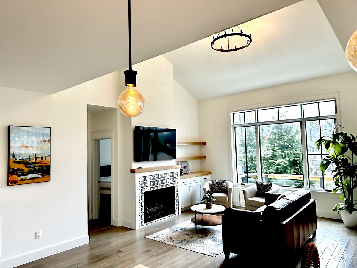 New luxury home Originally a 3 bedroom 2 bath is versatile with the 3rd bedroom now a private den with luxury sleeper sofa. This home is located in one of Asheville’s most desirable and popular neighborhoods. It’s tucked back and quiet yet you can walk to Asheville‘s, finest restaurants, breweries, pubs, and shops. This gorgeous home has a professional style kitchen with gas range and hood all stainless steel appliances. The living room has an Italian leather sleeper sofa, 65 inch flatscreen TV and large fireplace. Also enjoy sitting on the rocking chair front porch or relax on the back veranda which has a dining table with seating for 6, and a natural gas grill so you can enjoy dining alfresco. The landscaped yard is fully fenced. The master en suite bedroom has a king bed with luxury linens and 50 inch flatscreen TV and connects to a beautifully modern master bathroom. The bathroom boasts a freestanding tub as well as separate tiled shower. It also has a double vanity and separate private toilet room. Bedroom 2 is beautifully appointed with a split king bed, and luxury cotton linens. It has a 42 inch flatscreen TV. For versatility, the room can be set up as two separate twin beds upon request. Bedroom 3 has a queen sleeper with luxury linens and a 50 inch flatscreen. It’s a private versatile room that can be a den or bedroom, and bed can be made up in advance upon request These rooms are served by a second bathroom which is beautiful and modern with a custom, floating vanity and has an oversized shower/tub. Towels, linens, paper products, shampoo, conditioner, body wash, blow dryer, iron and ironing board, drip coffee maker, Nespresso, toaster, microwave, some general cleaning products, cooking utensils, dishes a few basic spices. are included. There is also a new washer and dryer, Reliable 500 Mbps WiFi The garage was converted and is not available for use at the moment, and is occupied by a young lady who was displaced by Hurricane Helene. The city of Asheville requires a permanent resident at any short term rental in the city limits. Will update photos soon. Our prices include all fees. No hidden fees.