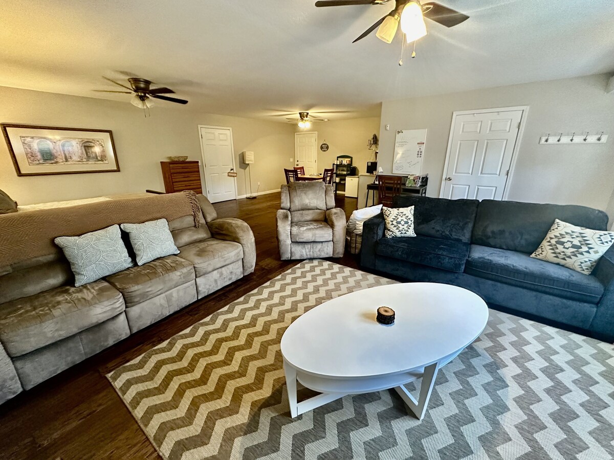 Enjoy comfortable and cozy convenience in this studio apartment that we have set up, especially for the small traveling group or single worker! Our well-appointed space offers private entry, reserved parking, and plenty of room to spread out inside. Small groups of 2-4 love that we are 2 min to downtown West Asheville and close to all the outdoor adventures. Groups also love that the bathroom provides excellent privacy, with a shower on one side and a separate water closet on the other. Upon arrival, you will pull into the driveway for the main house and come down around the back. A reserved private parking spot is marked with a sign and is available for your use during your stay. While one parking spot is provided, there is additional parking across the street on Pinewood. The entrance to the studio is directly behind the parking spot and on the bottom level of the main home. Outside Area: Outside and to the left of the entry door, two chairs and a small table create a space for nature lovers to sit outside and enjoy the fresh air. A small creek flows at the edge of the property, creating a fun area to take in some natural beauty. Our guests love sitting at the streamside firepit in our four Adirondack chairs! Living Area: As you enter the studio, you will be greeted by the living area immediately on the left. A queen sized sleeper sofa (waiting on updated photos for listing) and two comfy recliner chairs sit on an area rug. Opposite the chairs, a large smart TV with Netflix offers the opportunity to enjoy a show or movie. You can also bring your own logins and enjoy almost any other app. The living area creates a space perfect for relaxing with a movie by yourself or with your fellow guest. A personal thermostat is in the space, allowing for a custom temperature to suit your needs. Sleeping Area: Beyond the living area sits the bed. We have created an inviting space with a queen bed with a comfy 100% natural latex mattress, nightstands with reading lights, and a low table at the foot of the bed for opening a suitcase. A ceiling fan hangs above the bed for those guests wanting extra airflow at night. Eating Area: Across from the sleeping area, we have created a space for dining and food prep. A table for two gives the option of a sit-down meal. We also offer a coffee bar and tea area with a Keurig coffee maker in this space. K-cups, tea bags, creamer, and sugar are provided. We also feature a popcorn popper with popcorn and seasonings provided. Our eating area includes a microwave, mini fridge, kitchen sink, and small counter space. We provide full-place settings and paper towels, dish soap, and hand soap for your stay. Dedicated Workspace: As you walk in the front door, the dedicated workspace sits to the studio's right. A desk and chair with a work light allow you to set up a laptop or spread out books and papers. We have also mounted a whiteboard on the wall above the desk to provide a spot for you to make notes, brainstorm, and get creative. Our fast Wi-Fi will make everything from email to video calls simple and effective. Bathroom: To the right of the desk, a door leads to the bathroom and laundry area. Inside and on the left, a full-size walk-in shower makes getting ready easy and relaxing. Shampoo, conditioner, and body wash are provided. On the right, a modern washer and dryer allow you to get any necessary laundry done. A four-drawer dresser is also available for your use. Another door opens to the water closet (toilet and sink area), providing privacy for folks traveling together. Highlights of our Studio Include: ✧ Comfy living area with plenty of seating ✧ Dedicated workspace ✧ Queen size bed ✧ Shampoo/conditioner/body wash/soap provided ✧ Large walk-in shower ✧ Washer/dryer ✧ Reserved parking space ✧ Streamside firepit ATTENTION TO DETAIL ✔ Cleanliness is our top priority, and we pride ourselves on welcoming you into a sparkling clean home! ✔ Our home has a washer and dryer, an ironing board, and an iron for your use. Detergent and dryer sheets are available. ✔ We keep a first aid kit for minor cuts and scrapes. ✔ We provide high-quality linens for each guest. ✔ We provide essential paper goods and consumables - paper towels, toilet paper, dishwasher, dish soap, and sponges. ✔ Coffee, creamer, sugar, tea, and popcorn are included We're excited to share that we've teamed up with fantastic local vendors to offer some awesome extra perks for your stay! You can check out and buy these goodies through our online store. https://app.thehost.co/3871/ If you're looking for an early check-in or a late check-out, you can request and snag these through the store. Just a heads up, while we'll do our best, we can't promise these options. It's all about making sure our cleaning crew has ample time to prep the home for your stay or for the next set of awesome guests! Guest Access: You will have access to the entire studio. Entry is via a keypad, and a manual key box is available for emergencies. The code can be provided by calling us. Other Things to Note: This studio is on the lower level of our home. We live here with our young children. We have soundproofing on the locked door connecting the levels and white noise for your comfort. You will hear children's voices, footsteps, and general household noises through the ceiling. Kindly make sure this is acceptable to you before booking. Air conditioning is via a small window unit neatly tucked behind the TV, and it is more than adequate to keep the studio at the temperature of your desire. A personal wall thermostat controls central heat. The area beyond the metal fence near the tiny home/office at the end of the driveway is not available for guest use. A doorbell camera is attached for security only. Please take caution pulling out of our driveway as some drivers tend to drive fast, and visibility is somewhat limited. The owner of the home will be unavailable to the guests but the owner has hired a friend of the