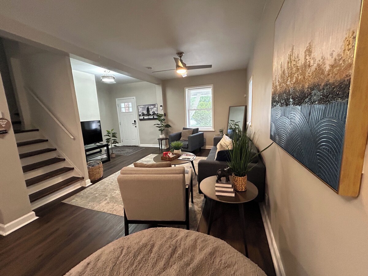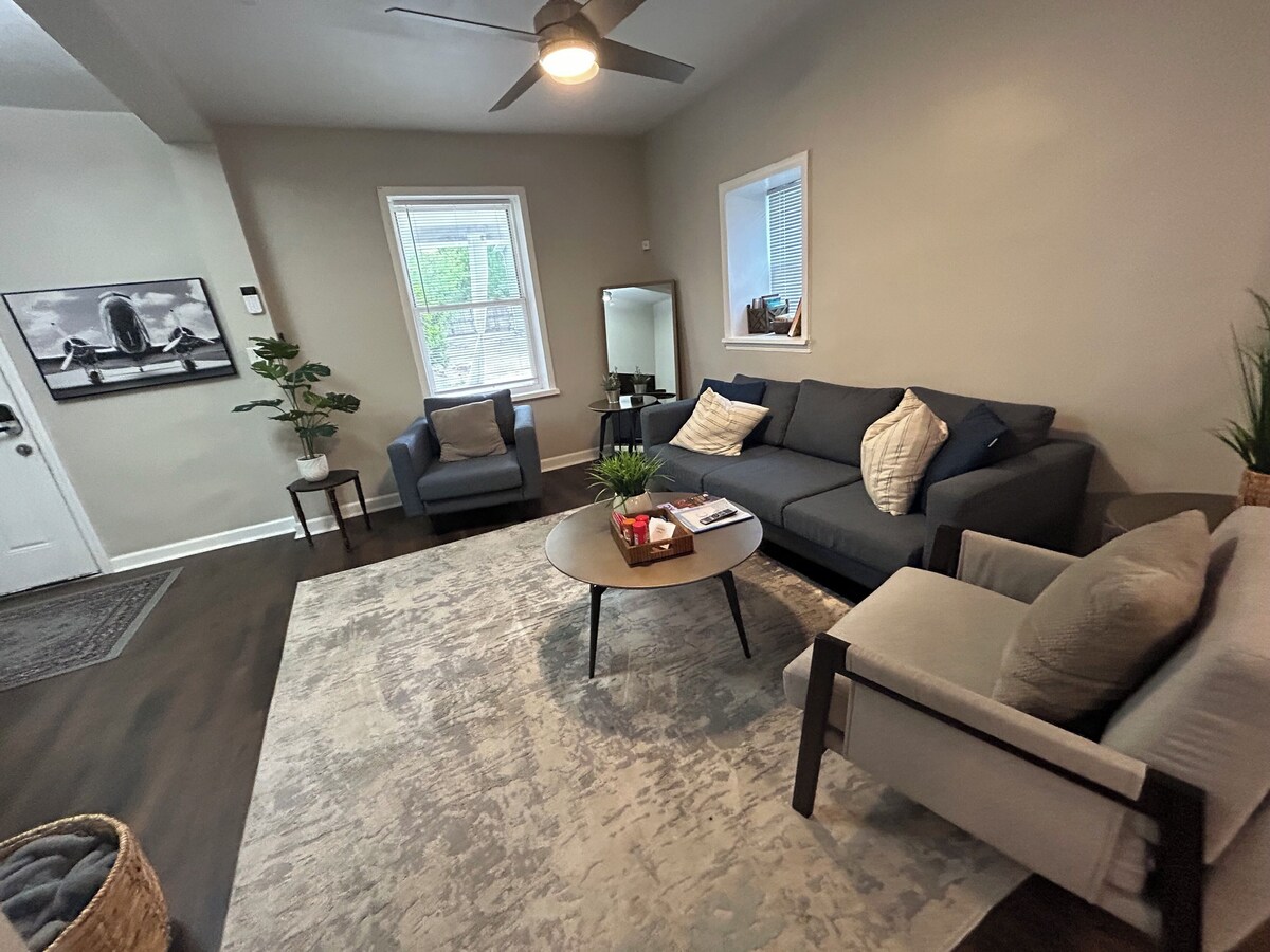 Welcome to your expansive and inviting urban retreat right in the heart of vibrant Kansas City! As you step into our delightful home, you'll instantly feel the blend of comfort and convenience that sets the tone for your stay. The generous living space provides ample room for you and your group to spread out and relax. The fully-equipped, open kitchen beckons to the culinary artist within, offering a perfect space to cook up delicious meals and create lasting memories together. Imagine sipping your morning coffee or enjoying a glass of wine in the evening on your private second-floor balcony, where you can soak in the sun and read a good book. Natural light floods the space, creating a warm and inviting atmosphere that truly makes you feel at home. For a restful night's sleep, choose between the luxurious king bed or one of the three queen beds, each adorned with incredibly comfortable 14-inch mattresses. With two full bathrooms, the morning routine becomes a breeze, allowing everyone to start their day stress-free. Need to stay productive during your visit? The dedicated office desk caters to your remote work needs, ensuring you have a comfortable and quiet space to stay on top of things. Location couldn't be more perfect. Less than a 5-minute drive lands you in the heart of downtown, while the lively River Market is just a stone's throw away. Explore local restaurants that cater to every palate, discover unique boutiques, or even squeeze in a workout at nearby fitness centers. Sports enthusiasts will appreciate the mere 13-minute distance to Chiefs games, making game day excitement easily accessible. Plus, with convenient highway access, you have the entire city within your reach. We're delighted to welcome your furry friends and your family to our pet and family-friendly space. And if your stay requires a bit more time to soak in all that Kansas City has to offer, we're here for it – extended stays are wholeheartedly welcomed. Don't miss out on this exceptional opportunity to experience the best of Kansas City while reveling in the comfort and convenience of your own private retreat. Book now and let your unforgettable journey begin! ✔ 5 mins to downtown & river market ✔ 10 mins to plaza & Westport ✔ 13 mins to CHIEFS Stadium ✔ Large & Spacious ✔ Smart Tv's equipped with Hulu, Netflix, & HBO ✔ Coffee & tea provided ✔ 14 inch comfy mattresses - Firm & Soft available ✔ Free Off Street parking ✔ Fast WIFI ✔ Pet friendly ✔ Washer & Dryer on Site ✔ Second floor balcony ✔ Prime location ✔ Open kitchen ✔ Remote work ready ✔ Abundant natural light ✔ Dining & shopping delight ✔ Long term stay discounts Our prices include all fees. No hidden fees.