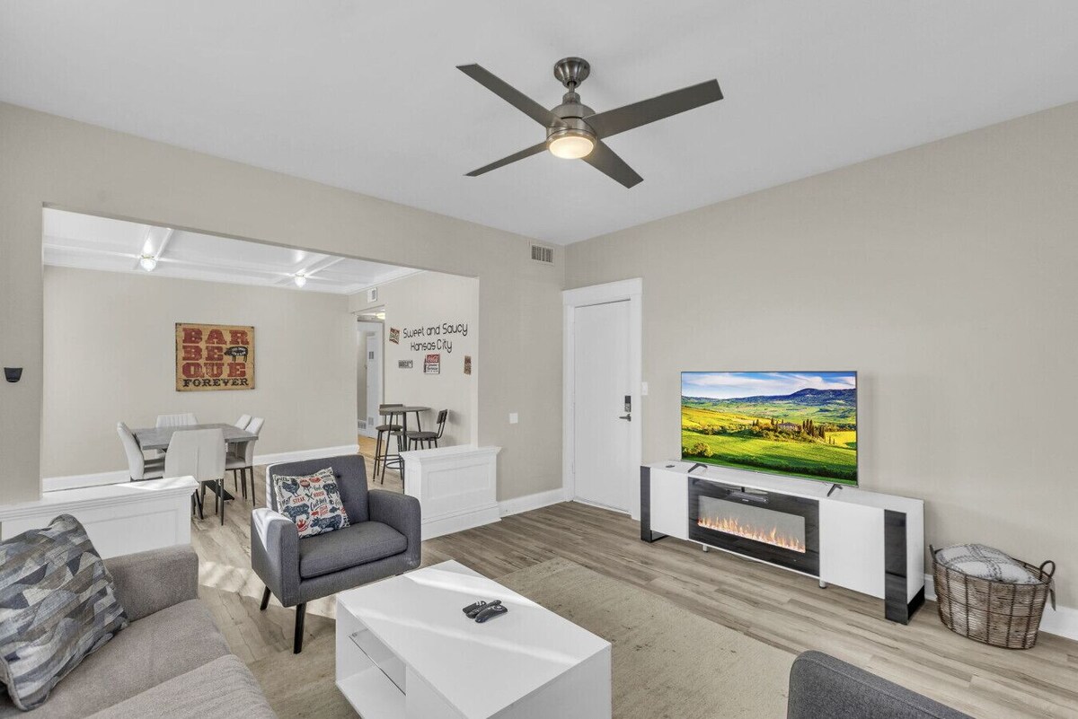 Savor the flavors of Kansas City from this cozy retreat, perfectly located near the city’s best BBQ spots like Gates, Arthur Bryant’s, and Q39. Dive into KC’s vibrant culture with nearby attractions including downtown, the jazz scene, and Arrowhead and Kauffman Stadiums. Featuring a fully equipped kitchen, comfortable living space, and all the essentials, this is your ideal home base to explore, relax, and get “sweet and saucy” in the BBQ capital of the world! Please Note: We do have a smoke and noise monitoring system to help us give all our guests the best experience possible. It is our intention to provide a kid and family friendly environment for all guests. Absolutely no Marijuana use will be tolerated. Smoking inside will result in a $250 fine. Our prices include all fees. No hidden fees.
