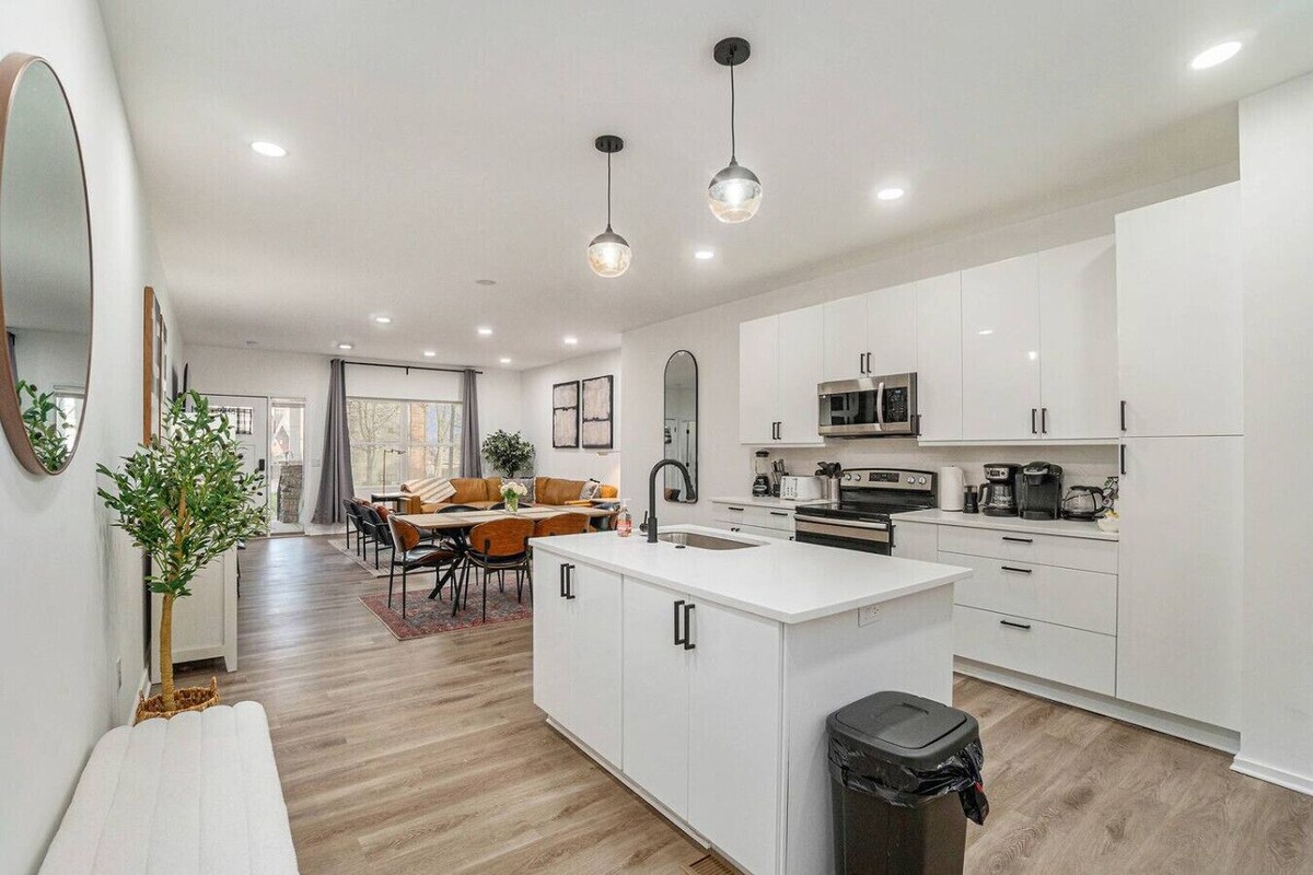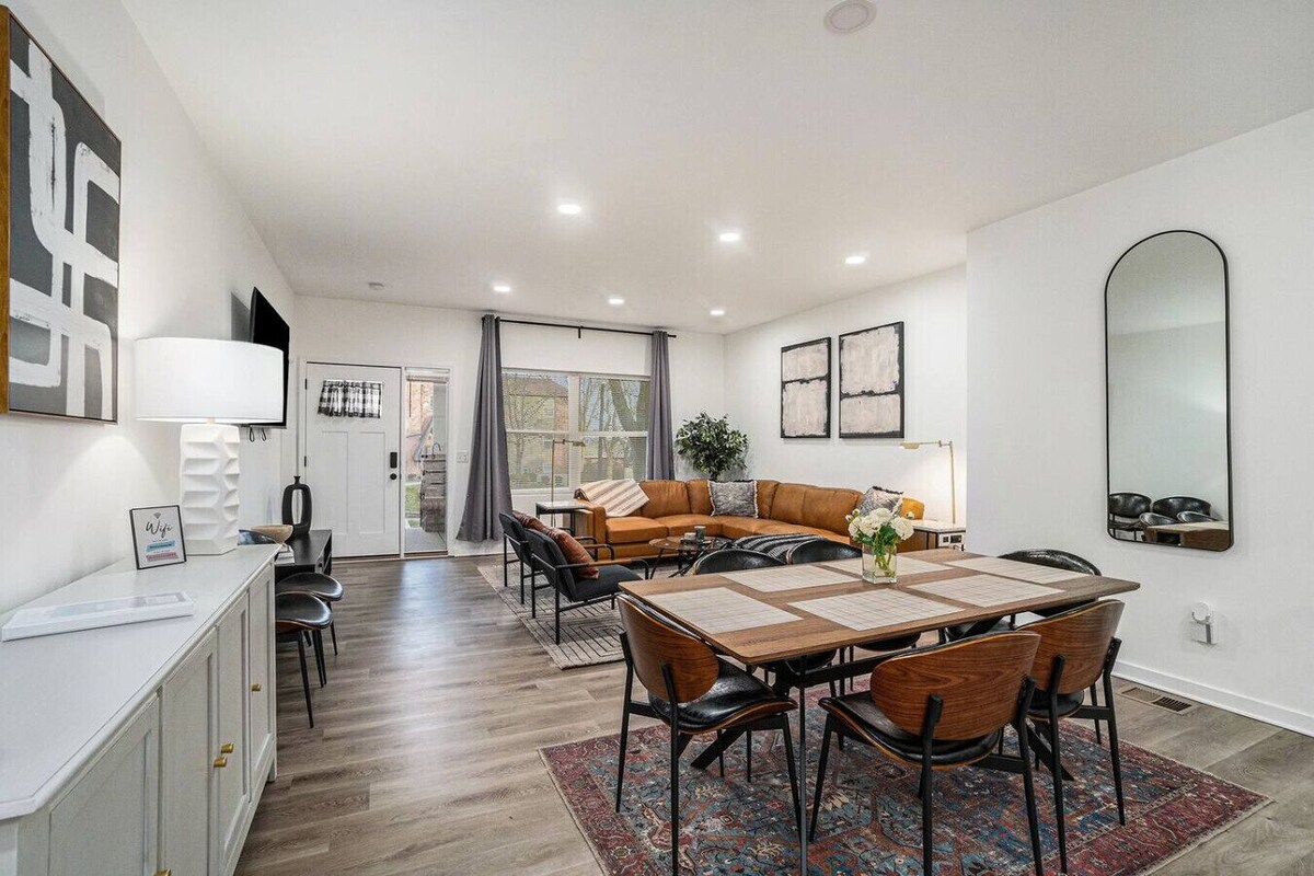 Entire duplex (2 separate units under 1 roof)! Perfect for a large group visiting the city while still having some privacy! Easy access to everything from this centrally located new build! Built in 2022 so everything is new! Total of 6 bedrooms, 4 full bathrooms, 2 half bathrooms, 2 kitchens, living rooms, and dining rooms! Open layouts with lots of sunlight & a large deck! Great location in Midtown! Few minutes from The Plaza, Crossroads, Downtown, & more! Our prices include all fees. No hidden fees.