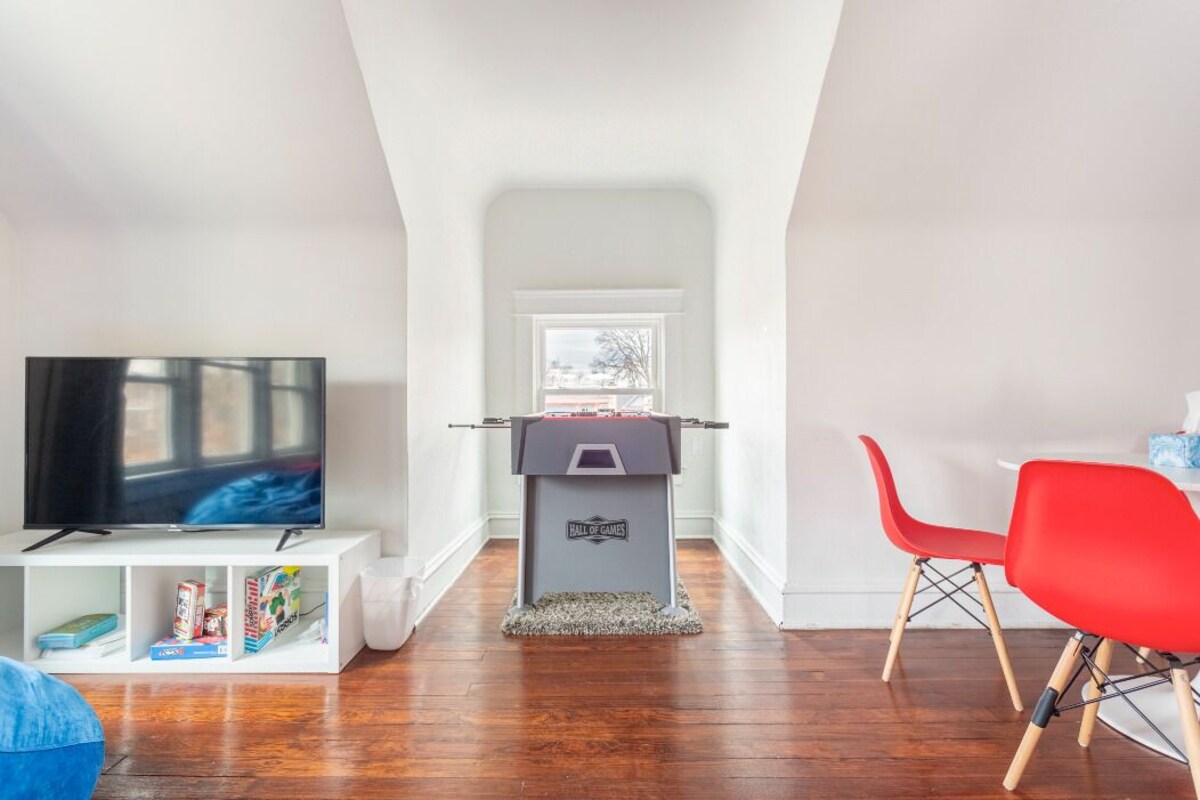 Relax and recharge at this stylish and spacious 5-bedroom home in Kansas City, Missouri. Located just minutes from Kansas City International Airport, the Country Club Plaza, Downtown KC, Arrowhead Stadium, the Convention Center, and all major attractions - this charming home is perfect for families, groups, or business travelers. Enjoy fall’s BBQ competitions, the Plaza Art Fair, and crisp park walks - then transition into winter’s famous Plaza Lights, Union Station’s holiday trains, Crown Center ice skating, and playoff football. All while relaxing in modern comforts, historic charm, and the peaceful residential vibe of South Hyde Park - just minutes from local churches like Central Presbyterian and St. James Catholic, making it a welcoming stay for guests attending worship events or retreats. This historic Hyde Park home is designed for comfort and connection, with cozy reading nooks, large gathering spaces, and thoughtful touches to make you feel at home. ✔ Family-Friendly ✔ 5 Comfy BRs w/ Royal Beds ✔ Fully Equipped Kitchen ✔ Game Room + Media Room ✔ Charcoal BBQ & Firepit ✔ Front Porch w/ Seating Area ✔ Backyard Patio w/ Fire Pit ✔ High-Speed Wi-Fi ✔ Free parking ✔ Remote-Work Friendly (desk & workspace) ✔ 5 - 10 Minutes to Top KC Attractions. The spacious house is designed to offer a comfortable getaway to all visitors looking to enjoy one of the most prominent Kansas City neighborhoods. The vibrant, open-concept living area greets you as soon as you step inside this gorgeous house, setting the tone for many wonderful family evenings. It extends into the lovely dining area and the fully equipped kitchen, where you can prepare and serve tasty homemade delicacies. Five highly comfortable bedrooms and three refreshing bathrooms will ensure you get all the rest needed after exciting adventures throughout the city. Sun shines through the large windows, and together with elegant wooden floors and touches, it makes the entire home cozy and warm. Along with the inviting indoors, the home features a charming front porch where you can sit and marvel at the serene neighborhood. Out of respect for this quiet neighborhood, ***WE DO NOT ALLOW PARTIES AND HAVE STRICT QUIET HOURS*** ★ LIVING ROOM ★ It is a perfect place to gather all your family and friends and enjoy fun and relaxing moments. ✔ Comfortable L-Shaped Sofa with Pillows ✔ Smart TV ✔ HQ Sound System ✔ Comfy Accent Chair ✔ Coffee Table ✔ Reading Lights The 3rd-floor media room features another comfortable sitting area. ✔ Comfortable Sofa with Pillows ✔ Smart TV ✔ Office Desk ✔ Coffee Table ✔ Stylish Seating Area with Table and Chairs ★ KITCHEN & DINING ★ The incredibly spacious and fully equipped kitchen will satisfy even the most demanding of chefs. Stock up on fresh ingredients and let your inner MasterChefs prepare tasty delicacies using many high-quality cooking appliances and deluxe granite countertops. ✔ Microwave ✔ Stove ✔ Oven ✔ Refrigerator/Freezer (Water/Ice Dispenser) ✔ Dishwasher ✔ Coffee Maker (Complimentary Coffee) ✔ Toaster ✔ Breakfast Bars ✔ Sink - Hot & Cold Water ✔ Trays ✔ Glasses ✔ Silverware ✔ Quality Pots & Pans ✔ Kid-Friendly Utensils, Plates, and Cups Serve those delicious homemade meals at the charming dining table, nestled right in between the kitchen and the living room. ✔ Dining Table with Seating for 6 (extra chairs available) ★ SLEEPING ARRANGEMENTS – 5 BEDROOMS ★ After a day exploring Kansas City, retreat to five spacious and thoughtfully designed bedrooms, each offering plush bedding, ample storage, and cozy touches for a restful night’s sleep. Master Suite: King bed, ensuite bathroom, closet, and seating area Bedrooms 2 & 3: Queen beds, closets, reading lights; 3rd-floor room has balcony + ensuite Bedroom 4: Two twin beds, ensuite, bright kid-friendly room facing the backyard Bedroom 5 (2nd Master): Queen bed, closet, balcony + ensuite ✔ Premium linens & pillows ✔ Closets/dressers with storage ✔ Nightstands with reading lamps ★ BATHROOMS ★ The house features a total of three full bathrooms designed to offer maximum comfort and convenience. There is no need to pack your towels or essential toiletries as we have prepared all of these for you. ✔ Bath with a Shower ✔ Shower Cabin ✔ Vanity ✔ Mirror ✔ Toilet ✔ Towels ✔ Hair Dryer ✔ Essential Toiletries ★ OUTDOOR AREAS ★ Start your day with a breath of fresh air and a hot cup of coffee, served on the charming front porch, private balcony, or spacious backyard, where you can relax and enjoy the tranquil neighborhood view. ✔ Front Porch (Seating Area with Table and Chairs) ✔ Charcoal BBQ/Firewood Firepit ✔ Top Floor Balcony ✔ Two-car garage Parking ★ Guest access ★ ✔ High-Speed Wi-Fi ✔ Free Parking ✔ Air Conditioning ✔ Heating ✔ Laundry Room with Washer & Dryer ✔ Fully-Equipped Kitchen ✔ Cozy Firepit ✔ Spacious Front Porch ★ NO SMOKING OR PARTIES ★ We kindly ask all our guests to respect our lovely home and avoid any partying on the property. Smoking is also not allowed. ★ COVID-19 SANITIZATION ★ Heath, safety, and well-being of our guests are of utmost importance to us. For this reason, we use a thorough process of cleaning after each check-out. ★ PETS ONLY UPON APPROVAL ★ We love those little (and not-so-little) furry bundles of joy. Please confirm your pet's information, size, breed, and age before booking. ★ EXTERIOR CAMERAS ★ For your safety and to ensure the property remains secure between guest stays, we have the following exterior-only security cameras in use: 1. Front Door Camera - Monitors the entryway and front steps. 2. Frontyard Camera - Covers the driveway and front yard area. For security purposes only, there are two Ring video cameras on the property. One is the front door camera, which shows who is at the door/entrance, and the third is the front yard camera, which covers the fron