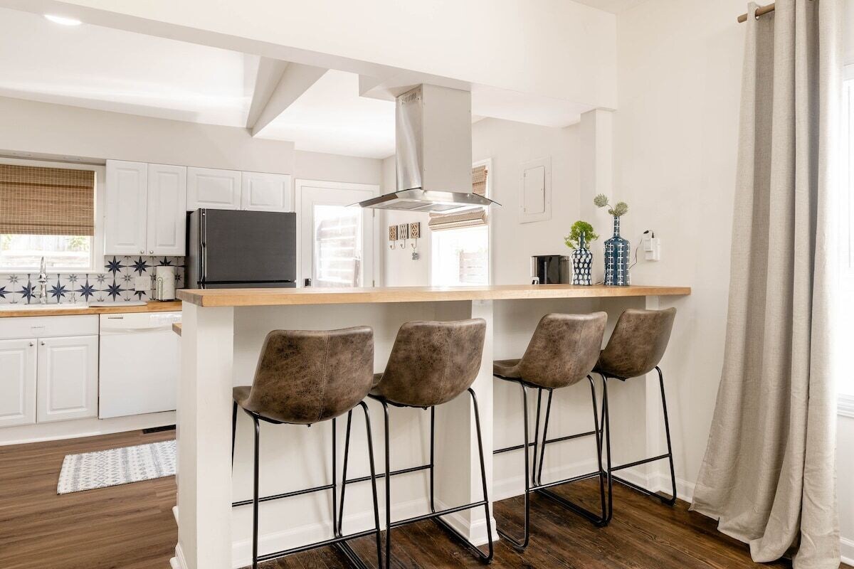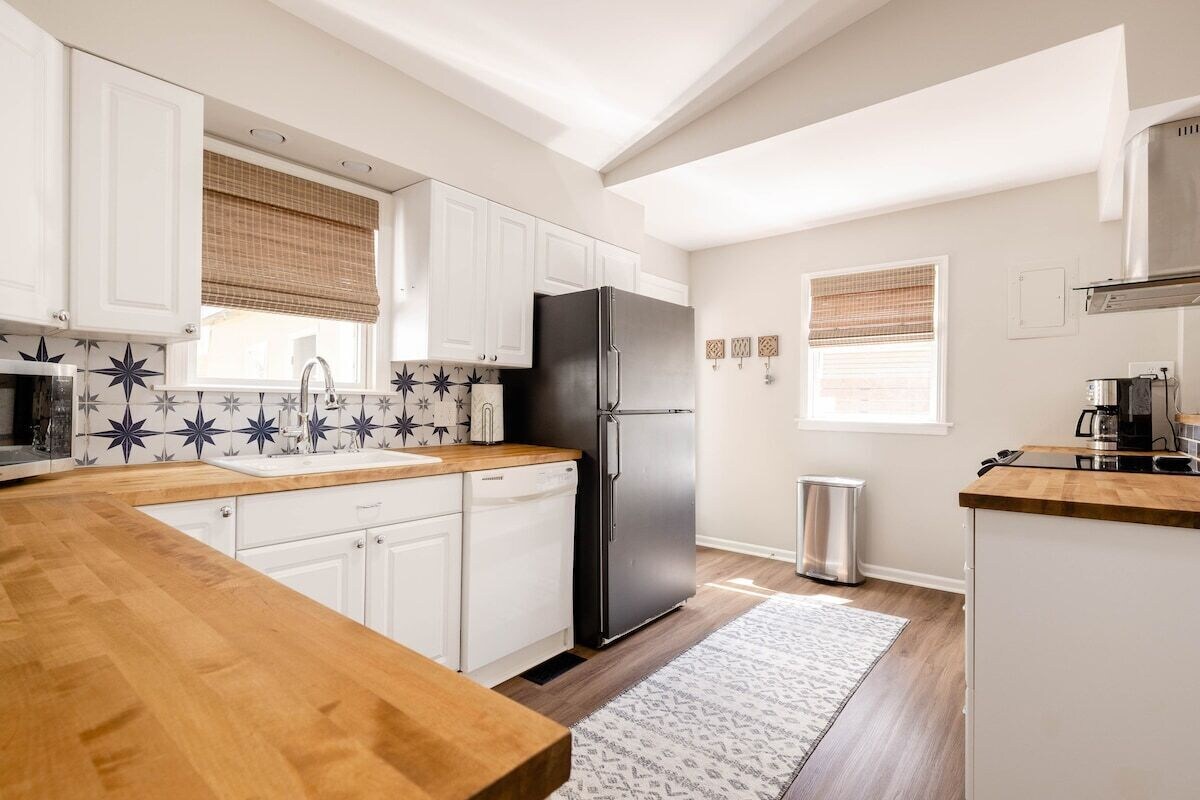 Summary: Welcome! This historic Bungalow in the West Plaza Antique District is newly updated inside and out. The home was originally built in 1901 and boasts authentic charm with modern day amenities. This 2 bed, 2 bath (2 master suites) home sits on a quaint street just west of the renowned Country Club Plaza. It can accommodate up to 5 guests in beds with an air mattress available for an additional 2 guests if needed. This house has a private driveway, front porch and fenced backyard with gas grill. The Space: The front porch welcomes you with chairs to enjoy the quaint neighborhood and front landscaping. There is a private driveway and street parking available. The backyard is fully fenced for your 4 legged friend and includes a deck with large eating table, gas grill , and fire pit. Inside, the main floor bedroom has a queen bed. The upstairs bedroom has a queen bed, single bed and queen air mattress available with memory foam mattress topper if needed. The kitchen is fully stocked with everything you need and has a breakfast bar area that seats 3. The dining room table seats 6. The living area has a 42 inch SMART TV, log into your own smart apps. Washer and dryer are on the main floor laundry room, just off the full bath. Home is conveniently located .8 miles from the Country Club Plaza and has a local coffee shop and unique restaurants within walking distance (.3 miles). High speed fiber internet, 2 smart TV’s in which you will need to log into your own TV apps, coffee pot, filters and single serve Keurig , bring your own Keurig pods. Up to 2 pets allowed for responsible pet owners, 1st pet $40 fee, 2 pets $50 for the stay. Guest Access: Guests have access to entire home, backyard and driveway. No access to locked garage/shed. Video Ring doorbell present on outside of property for guest safety. The Neighborhood: Located in the West Plaza neighborhood, this house is on a one-way, quiet street. The house is walking distance to local coffee shops, eateries and Westwood Park. This home sits next to the West Plaza Antique District which boasts 3 blocks of impressive red brick buildings. It is filled mostly with antique shops crammed full of unique items, curios, and second hand treasures, and delights all who visit the area. Getting Around: DRIVING DISTANCE TO THE FOLLOWING: Country Club Plaza- . 8 miles The Nelson Art Gallery- 1.6 miles Union Station/Crown Center/World War 1 Museum- 3.5 miles T-Mobile/Sprint Center- 6.1 miles KC Airport- 22 miles Arrowhead/Geha Stadium- 8.1 miles Other Things to Note: Pets are allowed on a case by case basis. There is a $35 pet fee per per stay. Interaction with Guests: This home is equipped with a keyless entry for your convenience. I will send you the entry code the morning of your stay. We live close by if you need anything during your stay, feel free to text or call! Our prices include all fees. No hidden fees.
