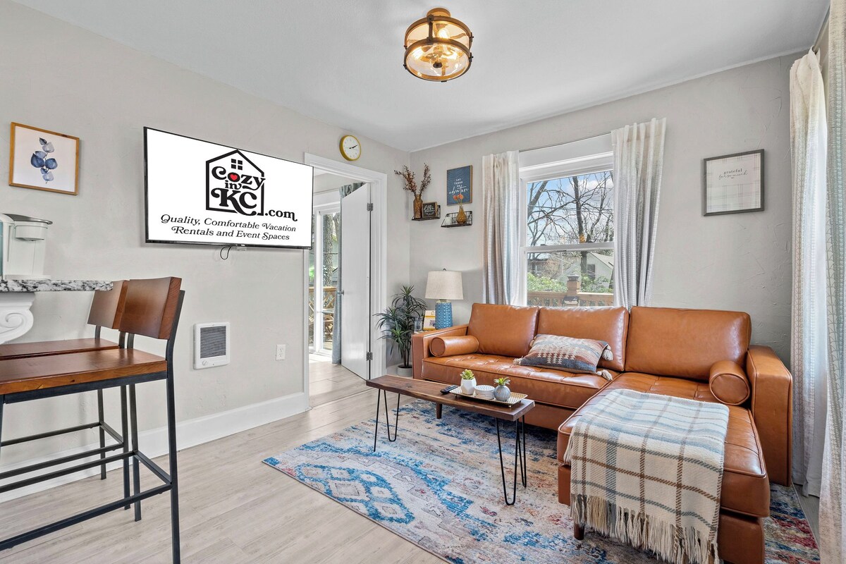 Welcome to the Charlotte Retreat – A Cozy Urban Oasis in Historic Kansas City Nestled in one of Kansas City’s most charming and historic neighborhoods, the Charlotte Retreat offers the perfect blend of comfort, style, and convenience. This thoughtfully designed one-bedroom bungalow is ideal for business travelers, solo adventurers, or couples seeking a peaceful getaway. Host will not be at the home during the stay but am always just a phone call or text away! Discover Waldo – A Laid-Back, Local Gem in Kansas City Waldo is one of Kansas City’s most beloved and down-to-earth neighborhoods, offering a unique blend of local charm, vibrant culture, and a strong sense of community. Tucked into the southern end of the city, this walkable neighborhood is full of character, with tree-lined streets, historic homes, and a welcoming, laid-back vibe that makes visitors feel right at home. LOCAL FLAVOR: Waldo is a haven for foodies, coffee lovers, and craft beer enthusiasts alike. Whether you're in the mood for a cozy brunch at The Classic Cup, wood-fired pizza from Waldo Pizza, or locally brewed pints at Bier Station, you'll find something delicious around every corner. The neighborhood is also home to some fantastic bakeries, vintage shops, and casual hangouts that reflect its friendly, unpretentious spirit. VIBE: What makes Waldo truly special is its community-oriented feel. It's the kind of place where shop owners know your name, and you'll find live music or farmers markets popping up on weekends. It offers a quieter, more relaxed side of Kansas City while still keeping you close to all the action. GETTING AROUND: Waldo’s convenient location makes it easy to explore other parts of the city. You're just a quick drive from Brookside, the Plaza, and Downtown—so you can enjoy the best of both worlds: peace and privacy at home, and vibrant city life whenever you choose. Whether you're here for a weekend or an extended stay, Waldo’s charm and welcoming energy will have you feeling like a local in no time. Guests will be able to access the entire home including front and backyard. Welcome to The Charlotte Retreat – Your Cozy Home Base in the Heart of Kansas City The Charlotte Retreat is a thoughtfully designed one-bedroom bungalow located in one of Kansas City’s most historic and central neighborhoods. Whether you're in town for business or a relaxing getaway, this charming home offers the perfect blend of style, comfort, and convenience—all just minutes from the Plaza, Downtown, Brookside, and Waldo. Living Room Settle in and make yourself at home. The living area features a comfortable sectional sofa, perfect for enjoying a quiet evening with a movie or curling up with a good book. A 55\ ,