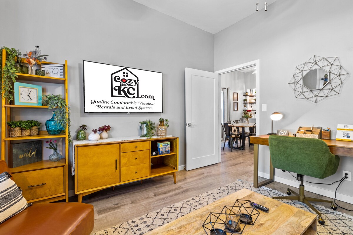 ⛲ Stylishly updated bungalow in historic Midtown, minutes to Plaza & Downtown ⛲ Sleeps 4 with 1 king & 1 queen bedroom + ample storage & cozy finishes ⛲ Spacious living room w/ smart TV & desk + high-speed WiFi for work or play ⛲ Fully equipped kitchen w/ large island, dining for 6 & full coffee bar ⛲ Large bathroom w/ shower-tub combo, washer/dryer & luxury touches ⛲ Pet-friendly fenced backyard, back deck seating & free street parking out front Host will not be on site during your stay but am available by phone or text if you should need anything. Explore the Best of Kansas City from The Lounge Nestled in the heart of historic Midtown Kansas City, The Lounge offers unbeatable access to some of the city’s most iconic neighborhoods and cultural landmarks. Whether you're here for art, sports, dining, or history, everything you need is just minutes away. You're only a short drive from the renowned Country Club Plaza, home to high-end shopping, fountains, and premier dining. Art enthusiasts will love being close to the Nelson-Atkins Museum of Art, a must-visit for its impressive collection and beautiful grounds. Looking for vibrant nightlife or unique local charm? Head over to Westport, Brookside, or Waldo—each packed with bars, boutiques, coffee shops, and eateries that showcase Kansas City’s creative and welcoming spirit. The home is also near UMKC and Rockhurst University, making it a convenient option for campus visits or events. Catch a game? No problem—Arrowhead Stadium (Chiefs) and Kauffman Stadium (Royals) are just 15–20 minutes away. And for those flying in or out, Kansas City International Airport (MCI) is only a 20-minute drive. Whether you're here for business or pleasure, The Lounge puts you right where you want to be—close to everything, yet tucked away in a peaceful, historic neighborhood. Guests will have access to the entire house and backyard. Welcome to The Lounge – Your Stylish Midtown Bungalow in Kansas City Whether you're staying for a night, a week, or a month, The Lounge offers the perfect combination of comfort, design, and location. Tucked in a quiet, historic neighborhood in Midtown Kansas City, this beautifully updated home is your ideal home base to explore the city or settle in for an extended stay. The Area Enjoy unbeatable access to some of Kansas City’s most beloved attractions. The Nelson-Atkins Museum of Art is just a 12-minute walk, while hotspots like The Country Club Plaza (5 minutes), Crown Center (8 minutes), and Downtown & Power & Light District (10 minutes) are all a quick drive away. Prefer not to drive? Uber and Lyft are always close by, making it easy to get around. The House Thoughtfully designed with travelers in mind, The Lounge offers everything you need—from a fully stocked kitchen to high-speed internet and stylish comfort throughout. Kitchen & Dining The heart of the home, the kitchen features: Full-size stainless steel appliances Spacious island with bar seating Generous counter space and modern finishes You'll also love the full coffee bar, stocked with: Keurig, drip coffee maker, French press, and pour-over options Coffee grounds, creamer, and sugar included for every stay The dining room seats 6 comfortably and is a great space for meals, laptop time, or game night. Bedrooms Both bedrooms are designed with your rest and relaxation in mind: Bedroom 1: King-size bed, Smart TV, dresser, and closet space Bedroom 2: Queen-size bed, bedside table with lamp, and closet storage Plush linens and soft lighting make each space a calming retreat after a day of exploring the city. Bathroom & Laundry The spacious bathroom includes a shower/tub combo, plenty of counter space, and: Luxury towels – 1 large bath towel and washcloth per guest Dark makeup towels In-unit stackable washer and dryer for added convenience Living Room & Workspace The cozy living room comfortably seats up to 6 guests and features a 55\ ,