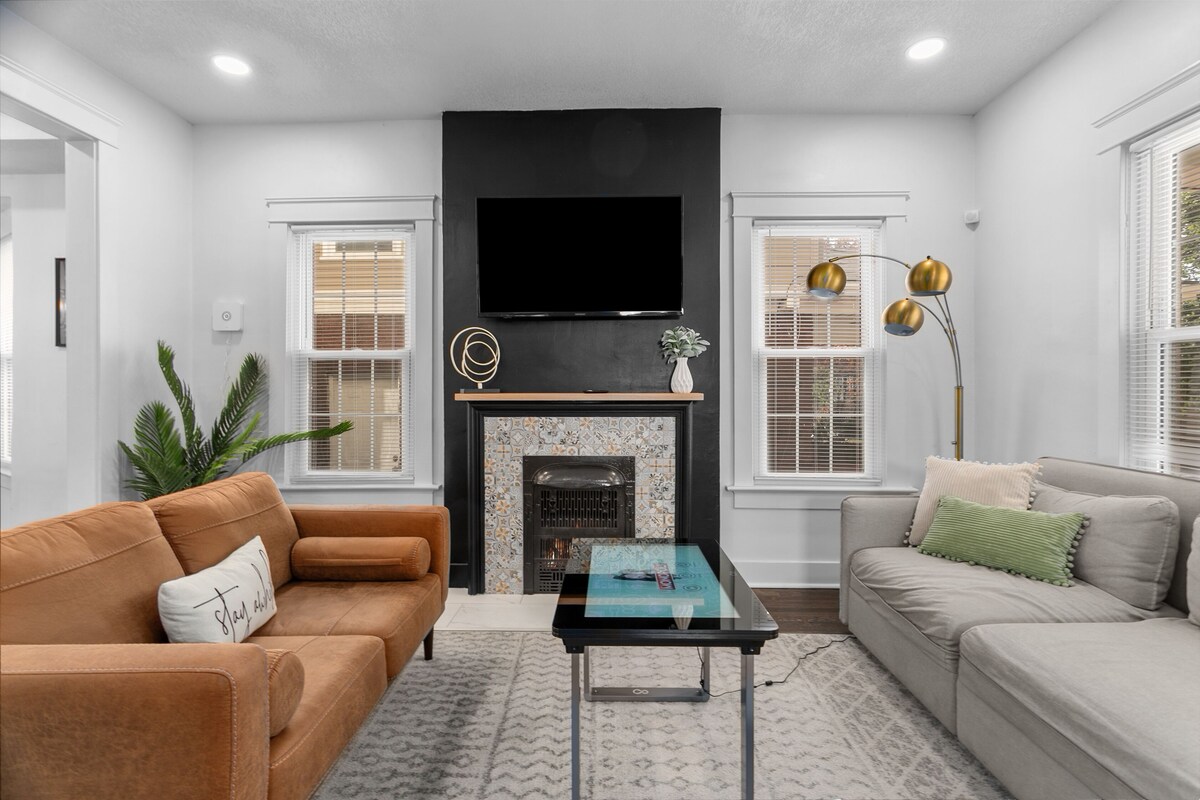 Nestled in a quiet neighborhood in Westport, this spacious home was recently renovated with families and groups in mind. The whole group will enjoy easy access to everything from this centrally located neighborhood. Walk to nearby Westport bars and restaurants or enjoy some of the most iconic Kansas City sights within a 5-10 minute drive from the Airbnb—Nelson Atkins Museum of Art, Country Club Plaza (located 1 mile from the house), Liberty Memorial, Crown Center, and Union Station. The space This home was completely renovated in 2022 and is the perfect retreat for the whole family or a group. Enjoy the privacy of 4 bedrooms, each with luxury bedding and plenty of room for couples. The open floor plan on the main level is perfect for large gatherings, featuring two living rooms and a beautiful kitchen complete with all the necessities for cooking an at-home meal. The four bedrooms include a master suite with a king bed, one queen bedroom, one bunk bed room with a twin over full bed and a twin trundle bed, and the whole third floor is a spacious king suite with a twin daybed and twin trundle bed. The living room on the main floor also has a luxury Crate & Barrel queen sleeper sofa. Guest access Parking: Feel free to park directly in front of the house or on the opposite side of the street. If needed, one small car may be parked at the back of the shared driveway. Please pull all the way up to the shed so our neighbor to the south may still access their backyard freely. Larger vehicles will not fit. Please do not try to fit a larger vehicle to avoid damage to your car or our home. Please avoid parking in front of other homes to be respectful of our neighbors. Be mindful of the one-way street. Our prices include all fees. No hidden fees.