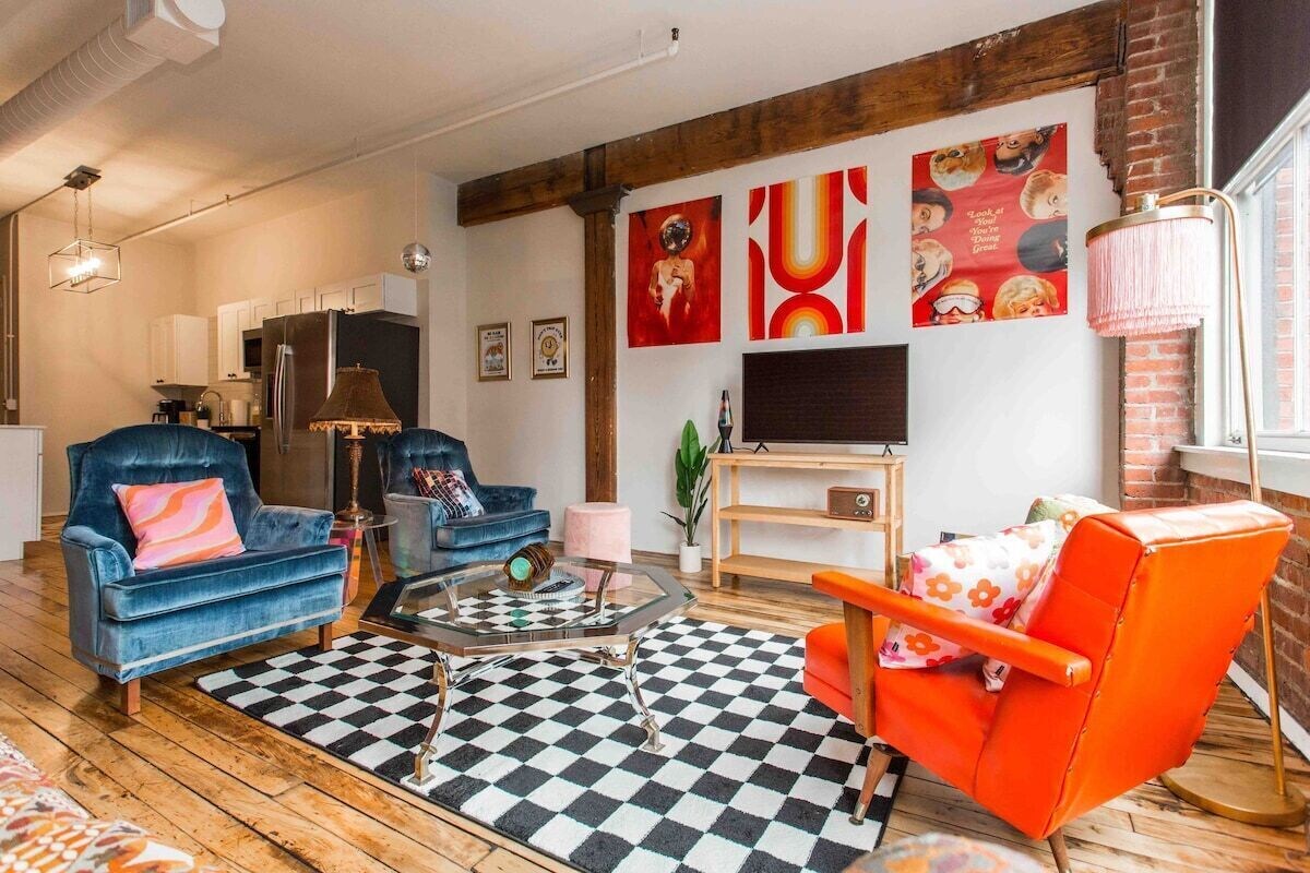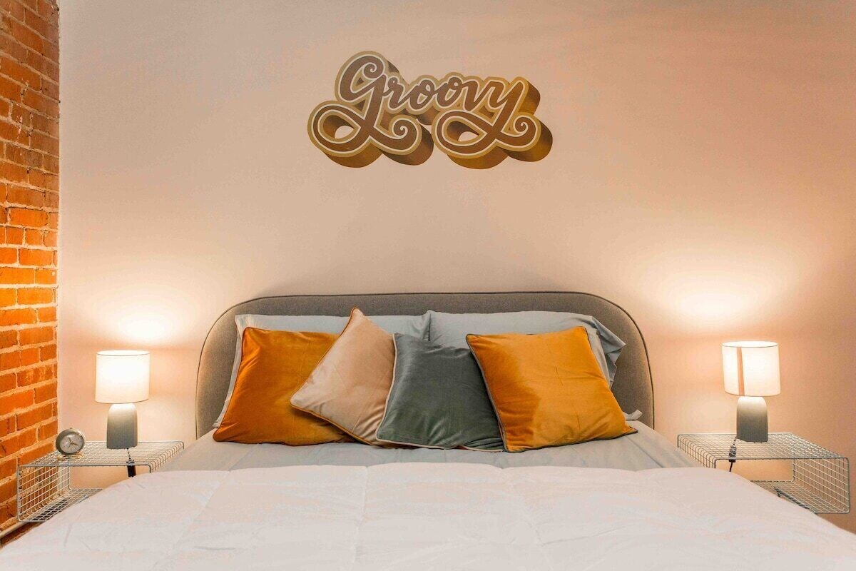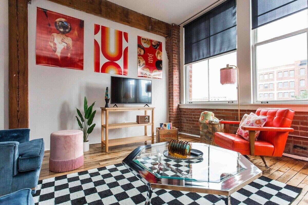 Hop in your time machine... retro vibes are calling your name! Designed with the traveler in mind, the space is stocked with amenities you want. WFH Desk space, fully stocked kitchen, bluetooth speaker, gym, game room, coffee bar, tons of seating & more! Located in the River Market. Walk to shops, restaurants, coffee, bars, plant shops, farmers market & more. Street car access to take you to the T-Mobile Center, Union Station and more. Highway access close by. Game room in the building! Available when you need me! Discover our vibrant, creative, and diverse community in downtown Kansas City's urban village. The hustle and bustle in the River Market centers on City Market, dating to 1857, where casual global eateries, gourmet grocery stores and indie boutiques surround pavilions host a farmers’ market EVERY WEEK! The highly sought after attraction, Arabia Steamboat Museum, displays paraphernalia salvaged from a ship that sunk in the Missouri River in the mid-19th century. The River Market includes broad paths for strolling and biking trace the shoreline in Berkley Riverfront Park. River Market is conveniently located on the Streetcar route. Home to the City Market mentioned above, for over 160 years it has been a top Kansas City destination for locals and visitors. Find fresh produce, local goods and restaurants galore! You’ll love it here! Guests have access to the unit and common areas of the building. Common areas include: the lobby, gym, and game room. Guests also have access to free street parking or a paid parking spot in the parking lot. Message me for paid parking details. 1 Bedroom Spacious Loft Sleeping Arrangements: -Queen Size Bed (Sleeps 2 people) -Air Mattress (Sleeps 2 people) -Sleeper sofa (Sleeps 2 people) Fully Stocked Kitchen Stainless Steel Appliances Coffee Maker - Keurig and Drip Closet Spacious Bathroom In Unit Washer and Dryer Work from Home Space Gym Game Room - in building Coffee Bar - in building Lounge Room - in building Private Parking Space (extra fee) Free street parking Free wifi Smart TV Kitchen island with bar stools Board Games Steamer Windows with fantastic city view Walkable Streetcar access STEPS away Guests can rent a car on Turo or any rental car service. Guests can Uber, Lyft, or use any ride share for quick transportation around KC. There are scooter companies you can ride around the KC like Bird. KC offers RideKC (bus) and Ride KC bike. There is a trolley car that you can take from the river market all the way to Crossroads (Union Station). It is free for the public. The residence is really close to restaurants, coffee shops, entertainment venues. Including the River Market board walk! If you need help getting anywhere please let me know and I can assist you. Free street parking. If you want a designated parking spot please message me for details before or during your stay. ABSOLUTELY NO PARTIES. ABSOLUTELY NO SMOKING. There is a potential for noise. This loft is in a building with other residents. Please be mindful of your own noise levels. Our prices include all fees. No hidden fees.