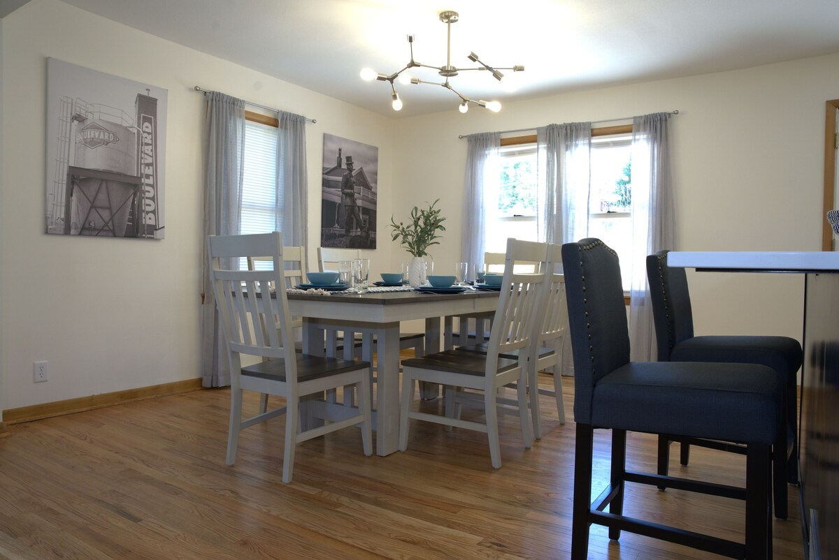 KCMO LICENSE #NSD-STR-00870 This beautifully remodeled home sits in the perfect location to get around the city easily. You will find yourself close to entertainment, historical sites, and parks with easy highway access to places you want to see while you’re here in the City of Fountains! Two large living areas give you plenty of space to entertain and enjoy each others company. Amenities throughout the house including ping pong, games, and awesome kitchen will have you wanting to come back! Need accommodations for additional people? Send us a message! Our prices include all fees. No hidden fees.