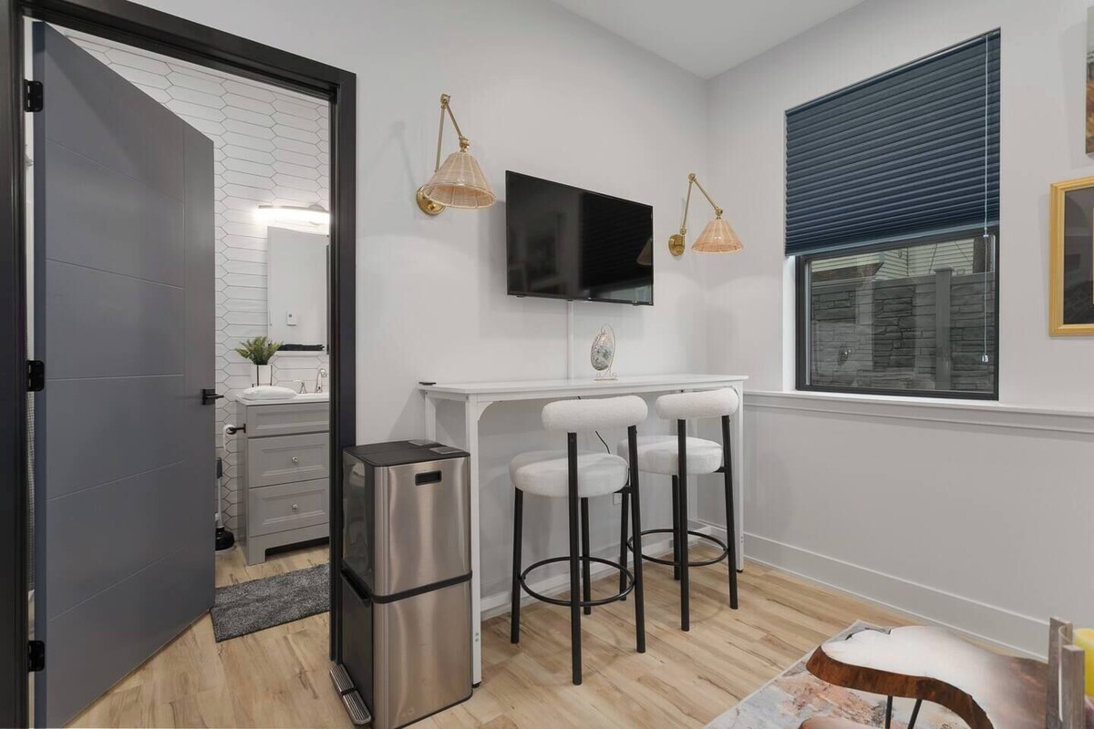 Welcome to our charming studio in Kansas City's lively Crossroads Arts District! Ideal for solo travelers or couples, our cozy space invites you to dive into the vibrant arts and culture scene right at your doorstep. Enjoy a memorable stay with everything you need just steps away. Property managed by Karat Vacation Rental Management Our team is always here to help! If you need assistance during your stay, click \ in the Airbnb app and let us know how we can help. We'll respond as quickly as we can. Located in the Crossroads Arts District in downtown Kansas City, Missouri. The neighborhood is known for its vibrant arts scene, eclectic mix of restaurants and bars, and trendy boutiques and galleries. During the day, you can explore the numerous art galleries, museums, and studios in the area, or grab a bite to eat at one of the many local cafes or restaurants. In the evening, the neighborhood comes alive with live music, theater performances, and other cultural events. The Crossroads Arts District is also home to the First Friday art walks, a monthly event where galleries and shops open their doors to the public for an evening of art, music, and food. With its central location, you'll have easy access to all the top attractions and landmarks in Kansas City, including the Power & Light District, the Sprint Center, and the Kauffman Center for the Performing Arts. During your stay, you'll have full and private access to this unit and you're welcome to use any of the amenities provided. Inside you’ll find a cozy queen bed, a love seat, dining space for two, a full kitchen, full bath, washer and dryer, and plenty of closet space. The unit is located on the first floor with no stairs. Parking is available on the street only, as the driveway and garage are not accessible. Uber and Lyft are readily available Pets are welcome for a nominal pet fee of $40 per pet per month. Pets must be crated while unsupervised, house trained, and are not allowed on the furniture or in the beds. No parties or gatherings. The number of people in the unit may not exceed the guest count on the reservation unless special permission has been granted. This extends to the building amenities as well. Local area residents (Kansas City, MO and surrounding area) with 0 reviews are not allowed to book the property and those with reviews must first be approved for stay and host may require a security deposit. Key things to do in the neighborhood Citydogskc - Dog park is located 3 blocks away. Vaccination records required. Boulevard Brewery tours and beer hall - 3 blocks away. Foxandpearlkc - One of top restaurants in the city. 2 blocks away. 2 minutes to Hy-Vee arena 5 minutes to T-Mobile Center, Crown Center, Lego Land and Sea Life Aquarium 10 minutes to Westport and Plaza area 10 minutes Nelson Atkins Museum, Kansas City Art Institute, UMKC and Kemper Museum. 15 minutes to Arrowhead and Royals stadiums We are only minutes from Consentino's Market grocery store. 2-3 minute drive to CVS pharmacy. Our prices include all fees. No hidden fees.