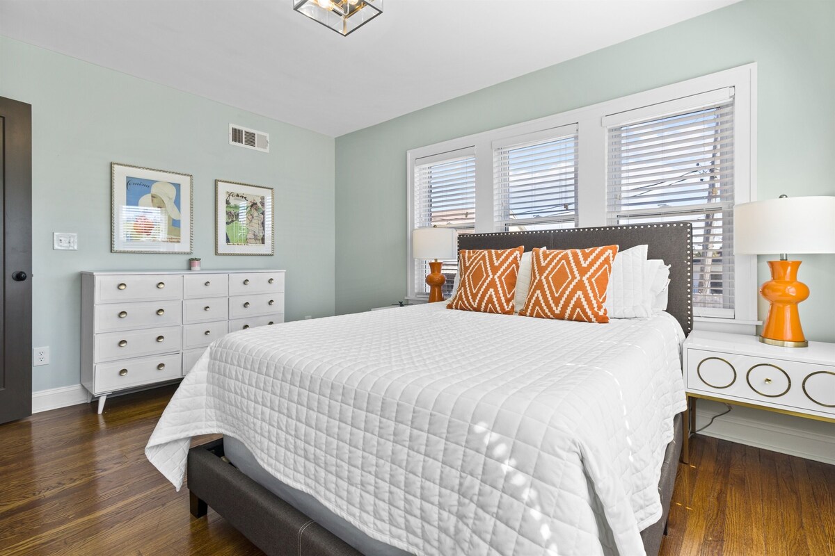 NEW KC STREETCAR! Opening October 24 at Whole Foods — enjoy FREE rides straight to Downtown, Westport, Crown Center, and more. Fall in love with this updated historic duplex in Kansas City’s most coveted neighborhoods. No bathroom waits: 6 bedrooms, 4 full baths + 2 powder rooms. Original hardwood floors and stained-glass windows highlight the home’s Craftsman charm. Contemporary KC décor and modern updates ensure your comfort and safety. Perfect for business travelers, family groups, wedding parties, conference attendees, and anyone wanting authentic Kansas City charm with urban convenience. WE CAN HOST LARGE GROUPS: If you have more than eight people, please message for information about how to add them to your trip. This listing includes both units in the building, one on each floor with near-identical layouts. The interior has been renovated from the studs, giving you modern updates with Kansas City's Craftsman charm. KEY SPECS: 6 bedrooms, each with queen bed 4 full bathrooms (2 per level) 2 powder rooms 7 TVs 2 living rooms 2 dining rooms 2 sets of laundry machines 2 glorious sun porches 2 private parking spots Outdoor seating area 3-minute walk to NEW KC streetcar! Free to ride! Our prices include all fees. No hidden fees.