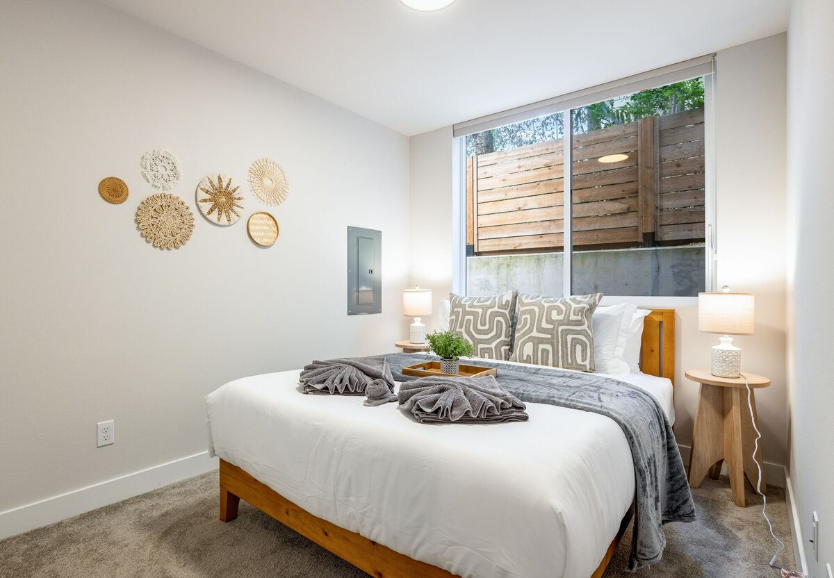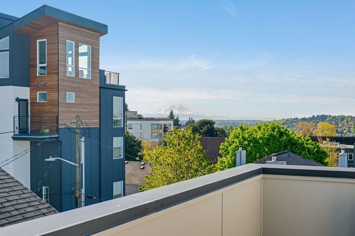Located in a lively neighborhood mere minutes from Seattle's bustling downtown, our chic retreat welcomes adventurers! Relish the stunning sight of Mount Rainier from our deck, offering a unique perspective on the city's beauty. Our cozy rooms and modern kitchen await your comfort. With coffee shops, dining spots, and the light rail just a stone's throw away, plus easy access to major highways, you're perfectly poised to immerse yourself in all that Seattle has to offer, from its iconic landmarks to its vibrant local culture. Come join us for an unforgettable stay in the heart of the city! The home has 2 bedrooms, and 2 bathrooms, and approximately 1,064 sqft. This is a 3-story plus roof deck townhome. **Floor Plan** • First Floor: Main entrance, bedroom with a queen-size bed with heat only, full bathroom. • Second Floor: Kitchen, dining, living room with smart TV, and AC, sofa bed that sleeps two. • Third Floor: Primary bedroom w/ queen size bed, AC, ensuite bathroom. • Fourth Floor: Rooftop with skyline views. **Home Highlights** • Street parking is free! • Great floor plan - bed & bath on different levels, perfect for families • Big windows with lots of natural light • Kitchen is stocked with high-end kitchen appliances, cookware, silverware, serving ware, spices, coffee & tea • High-quality bed, mattress, pillows & linens for comfortable sleeping • Onsite washer and dryer for your laundry needs • Rooftop patio with comfortable outdoor furniture for an al fresco experience • The WiFi speed is 612 Mbps, perfect for smooth streaming and clear video calls **About the Reservation** • In booking our home, you consent to completing a third-party identity verification. The screening will have to be completed within 3 days from booking or at least 24 hours before check-in, whichever is earlier, to fully confirm your reservation. You are welcome to reach out to us for complete terms regarding guest screening. • We uphold our cancellation policy as we only have each night available to one group of guests. We highly recommend purchasing travel insurance to protect your booking. One date change if your check-in date is more than 2 weeks away. No date changes otherwise. • For stays longer than 29 days, we require a double cleaning fee, additional tenant screening, lease signing, and a security deposit to fully confirm your reservation. **Additional Info About the Home** • This is a townhome and is not handicap friendly. Guests have to be very comfortable with stairs as there are multiple stories. See above for the floor-by-floor layout. **About Fees & Pricing** • The regular nightly rate covers 4 guests. Additional guest fees are $25 per person per night, up to a maximum of 6 guests. Please indicate an accurate number of guests. • We utilize dynamic pricing. This means that booking rates may increase or decrease every day. We do not honor yesterday’s pricing. • Pet fee: Well-trained pets are welcome; We charge $50/night for your pet(s) which have already been included in your invoice if you have selected pets on your reservation. **House Rules** • This is a pet friendly home (dogs only) but kindly refrain from allowing pets on furniture/linens including couches, throws, beds, pillows, and towels. Please do not leave pets unattended; please bring poop bags and pick up after your pets. • Strictly NO parties and events, quiet hours between 10pm-8am, no smoking or vaping of any kind anywhere on the property including outdoor areas, no digital piracy, no shoes in the home. $500 fine per violation. Our prices include all fees. No hidden fees.