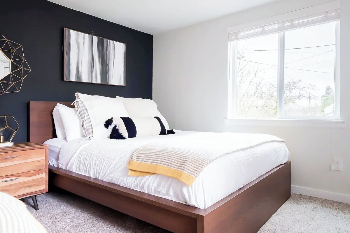 Welcome to your 2,700 sq. ft. Craftsman retreat, just 10 minutes from downtown Seattle and 5 minutes from Capitol Hill, the International District, and Pioneer Square. With nearby shops, cafés, and Judkins Park within walking distance, this home blends urban convenience with cozy charm. Unwind in the fully fenced backyard, where a brick fire pit invites late-night chats and marshmallow roasting. Inside, five plush, hotel-grade queen beds ensure restful sleep for every guest. With stylish furnishings, a gourmet kitchen, and thoughtful amenities, this home is the perfect space for family gatherings, friend trips, or city adventures. Home Highlights: • Spacious & Stylish – 2.5-story Craftsman with chic décor and high-end furnishings • Outdoor Oasis – Fully fenced backyard with brick fire pit • Gourmet Kitchen – Keurig w/K-pods, gourmet teas, cookware, and dining essentials • Dining Area – Live-edge acacia dining table seats 6, plus additional stools • Entertainment – 55” Smart TV with Netflix (no cable) • Comfort & Convenience – Central heating/cooling, washer/dryer, Pack ’n Play (bring your own baby pillows/blankets) • Parking – Two off-street driveway spaces Home Layout: First Floor • Living room • Kitchen & dining area • Full bathroom • Bedroom 1: Queen bed + closet + private full bathroom • Bedroom 2: Queen bed + closet • Bedroom 3: Two queen beds + closet + exterior access (separate thermostat control) • Washer & dryer room Second Floor • Bedroom 4: Queen bed + closet Additional Sleeping: Queen air mattresses available upon request for groups larger than 8 Nearby Attractions: • Judkins Park & Playfield – 5 min walk • Northwest African American Museum – 10 min walk Guest Access: Guests have full access to the entire house and backyard, with complete privacy. Important Notes: • No cooking condiments provided (grocery stores nearby) • Triple-sheet bedding system ensures all linens are freshly cleaned every stay • Base pricing includes 4 guests; $25/night per additional guest • Pets welcome: $150 per stay • Same-day bookings: check-in may be delayed until 6:30 PM if turnover is same-day • Seattle’s greenery means ants/insects may appear during rainy season despite pest control House Rules: • Check-In/Out: 4 PM / 11 AM • Same-Day Bookings: Confirm check-in time with host • No Shoes Indoors • No Smoking inside or within 20 ft of the property • Quiet Hours: After 10 PM • No Parties or Unauthorized Guests • Trash: Place in correct bins (leave inside if unsure, cleaners will handle) • Lost & Found: Items held 2 weeks; $35 handling + shipping for returns • No Mailbox Access – Package delivery at guest discretion Our prices include all fees. No hidden fees.