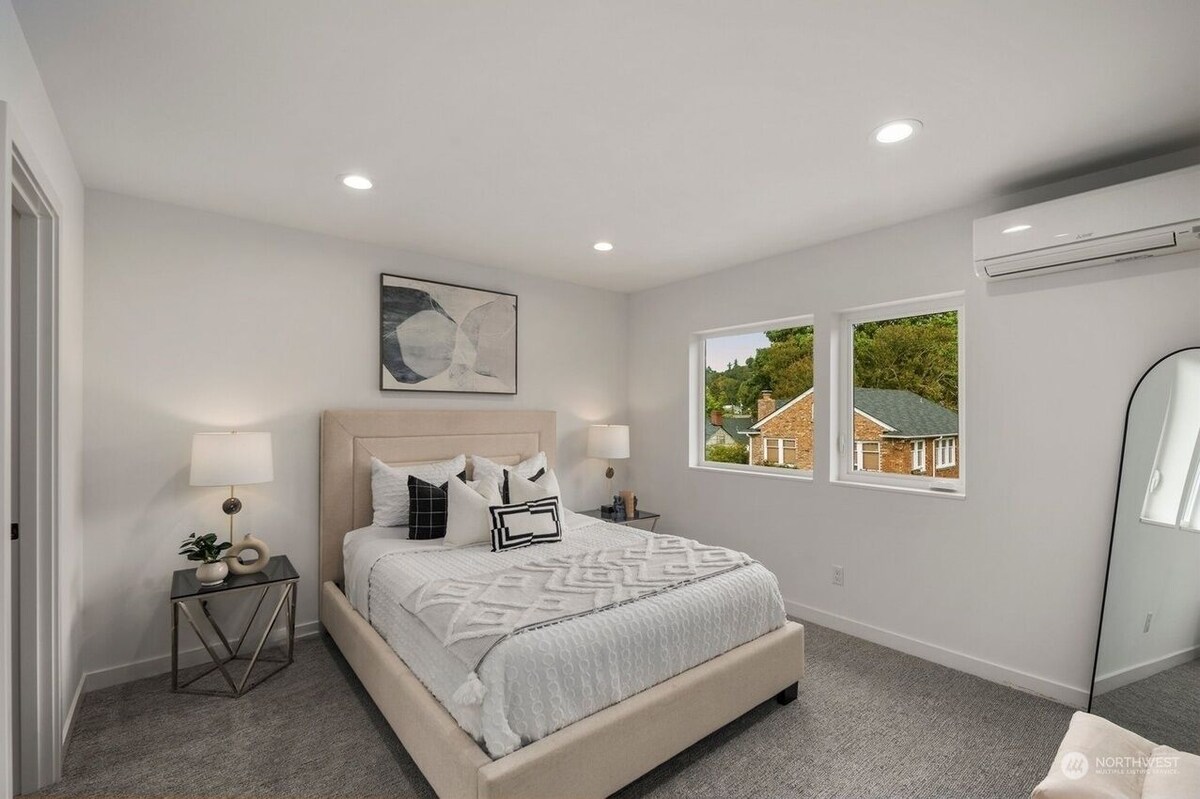 Discover this stunning 3-bedroom retreat in Seattle, perfect for a group getaway( accommodates 8 folks). This beautifully designed home features 1 luxurious king bed, 2 Queen beds and a comfortable sofa bed, ensuring a restful stay for all guests. Enjoy modern conveniences like air conditioning, high-speed WiFi, and an in-unit washer and dryer—everything you need for a seamless stay. With 2.5 spa-like bathrooms, everyone has ample space to refresh and unwind. Step onto the rooftop deck, where breathtaking, unobstructed views of Puget Sound and the Olympic Mountains set the scene for morning coffee or evening gatherings. The spacious bedrooms feature built-in closets, and the home’s thoughtful layout provides both comfort, privacy and style for 8 people. Located just moments from Alki Beach and Alki Playground Park, you’ll have easy access to outdoor adventures, beachside dining, charming cafés, and vibrant bars. Plus, enjoy the convenience of a reserved parking spot—a rare find in this sought-after neighborhood. Book your stay and make unforgettable memories in this Seattle gem! Our prices include all fees. No hidden fees.