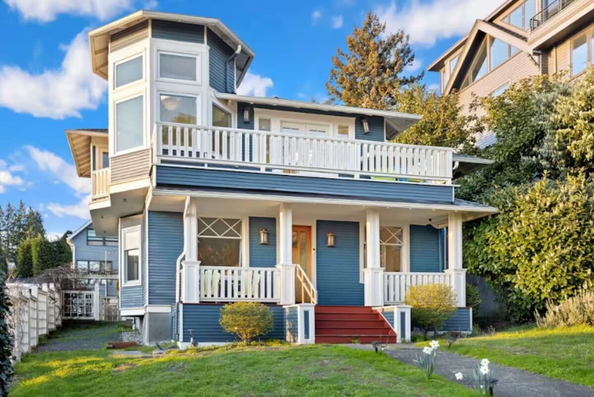 This spectacular multi-level stay offers an unforgettable Seattle living experience with breathtaking panoramic views of the mountains, water, and passing ferry ships. The top floor features a luxurious master suite with a king-sized bed, private bathroom, and spacious deck where you can soak in the stunning vistas. A second bedroom offers flexible sleeping arrangements with three queen beds and one twin, plus its own private deck, while the third bedroom features a space- saving bunk (twin over full) and shared bathroom. Our prices include all fees. No hidden fees.