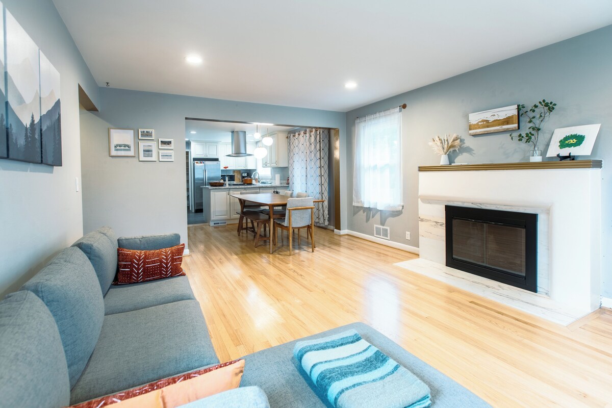 Relax with the whole family at this peaceful and conveniently located home in Seattle. Our home is peaceful, yet just minutes away from it all. It's a short walk to the magnificent Jefferson Park, and a short bus, light rail, or car ride to downtown Seattle and other neighborhoods. Enjoy cooking in the full kitchen. Hang out in one of two living rooms. Walk to Jefferson Park and stroll through the Beacon Food Forest. Play on the playground. Golf at the driving range or 18 hole course. Explore Beacon Hill’s renowned restaurant scene, or hop on the light rail or bus for a quick jaunt to explore Seattle’s other neighborhoods. It’s easy to find what you’re looking for here. ★Kitchen | Dining Room★ We recently renovated the kitchen, and have a large dining table. Feel free to utilize the appliances, cookware, and spices. ★Bedrooms | Baths★ 4 bedrooms -- two on the main floor, and two on the lower level. Three of them have comfortable queen beds, and the fourth bedroom is set up for young children, with a toddler bed and a crib. The kids bedroom also has a full-size tri-fold floor mattress available (for kids and adults) as needed. Additionally, there is also a second full-size folding floor mattress downstairs in living room 2. A full-size air mattress is also available. Bed linens are available for the two foldable floor mattresses and air mattress. There is a bathroom on each floor. Extra towels are located in the main level hall closet and downstairs bathroom cabinet. ★Living Rooms★ The main level living room has an open layout, connecting to the kitchen and dining areas. The downstairs is freshly renovated, with an open living area suitable for kids play, board games, or watching a movie. It also has a workspace, and the house has fast wi-fi throughout. ★Exterior★ The covered back patio is great for relaxing and having a meal outside. Guests have access to both the front yard and backyard — all fully fenced. ★Parking★ There is space for two vehicles to park. One vehicle may park in the covered driveway, and a second may park perpendicular to the driveway, alongside the alleyway. Street parking is accessible for additional vehicles. Our prices include all fees. No hidden fees.