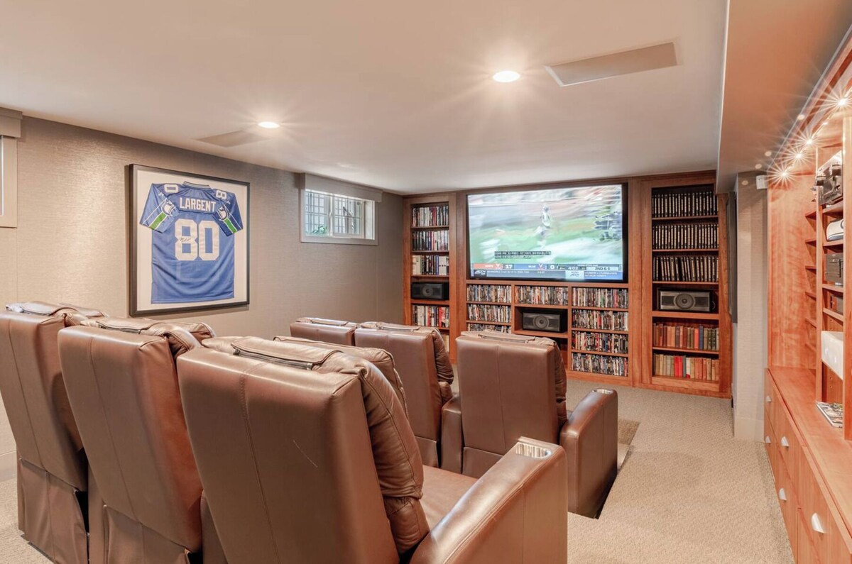 ✅ 5min: DTWN, Climate Pledge Arena, Space Needle ✅ 4000sf immaculate home “We love to stay in luxury AirBNB rentals and this one was beyond any other I have stayed.” ⭐️ 5BR + 4BA, office, chef’s kitchen, pinball, piano… ⭐️ Theater w/ leather recliners + Seattle sports memorabilia: Seahawks, Sounders & Mariners ⭐️ STUNNING views & large deck “AMAZING! Everything about this lovely home is 5+ stars. It's like staying at a high-end luxury resort” I am here for you during your stay, but our level of interaction is up to you. I'm only a phone call or message away. You will be able to self check-in upon arrival. WALK... ⭐️ 5-10 min walk to Kerry Park = a MUST see! ⭐️ 3 blocks to Coffee Mind coffee shop & Tenth West Cafe ⭐️ 11 blocks to many restaurants & retail options on Queen Anne Ave The Upper Queen Anne neighborhood is the closest neighborhood to downtown - one of the most desirable neighborhoods in Seattle. Beautiful large, historic homes & great coffee shops, restaurants & small retail stores within walking distance. Don't miss the Farmer's Market on Thursday afternoons (May - Oct). 💠 HOUSE... The entire home! 💠 GYM... Separate, detached gym space is available for an extra fee. $30/day or $150 per 7 day stay, whichever is less. 💠 PARKING... Does not include garage space, but street parking is readily available right in front of the house. 💠 EV CHARGER...Level 2 EV charger, located just outside the garage, park in the driveway while charging. Views, smart sound system & dimmable lighting throughout! 💠 M A I N F L O O R . .. 💠 - CHEF'S KITCHEN = Fully stocked! Le Creuset cookware, Henkle knives, Laconche French range, warming drawer, spices... - DECK = Smart sound system, glass wall opens to deck. Built-in grill, Ice machine & outdoor seating - DINING ROOM = Large, round table seats 10 with adjacent bar seating for 8. Everything needed for a special meal: - LIVING ROOM = Piano, gas fireplace, large sectional sofa & additional seating that can easily seat 10 - POWDER BATHROOM = Between kitchen & living room 💠 L O W E R L E V E L ... 💠 - THEATER - Screening room with 3 rows of leather recliners, blackout shades, privacy curtain & surround sound. Seattle Seahawks, Sounders and Mariner's sports memorabilia. Xfinity cable, HBO Max, Paramount +, & Prime TV provided - REC ROOM - Star Trek Next Generation Pinball machine (free)! Large TV, board games, queen sofa bed, twin daybed & trundle. Can be used as 5th bedroom w privacy curtains & attached 3/4 bath - BAR - Granite counter, fridge, microwave, sink & mini dishwasher - BATHROOM - 3/4 bath with shower - UTILITY ROOM - LG washer & dryer with speed cycles, ironing board, cleaning items 💠 2 N D F L O O R ... 💠 - PRIVATE STUDY - Large, dedicated office space with printer, shredder, reading material & massage chair! - QUEEN BEDROOMS (2) - Each w/ Casper memory foam mattresses, hotel-quality linens, soft & firm pillow options, extra blankets, bedside lamps & charging stations, portable fan, room darkening shades, California Closet & hangers, luggage rack, full length mirror. - BUNK ROOM - Full size bunk beds & twin daybed, hotel-quality linens, soft & firm pillow options, extra blankets, bedside lamp & charging station, portable fan, room darkening shades, 2 California Closets w/ hangers & luggage rack, mirror, 5 drawer dresser. - BATHROOM - Full bath with tub / shower. Toiletries stocked = extra towels, soap, body wash, shampoo, conditioner, toilet paper, Q-tips, cotton rounds. 💠 3 R D F L O O R ... 💠 - PRIMARY SUITE / BEDROOM - Private suite with gas fireplace, large work space, king bed, Sealy memory foam-hybrid mattress, hotel-quality cotton linens, soft & firm pillow options, extra blankets, bedside lamps & charging stations, expansive windows, automated blackout curtains, 64\ s Kitchen + EVchg + + 🟣 PETS - 2 pets under 35 lbs welcome with pet fee. 🟣 PARKING - street parking readily available for multiple vehicles in front of the house 🟣 TV’s - Setup to use Amazon Fire TV. There is a voice dictation option which we keep turned off for privacy. Please don’t change the Amazon Prime login, but feel free to login to any of your other streaming platforms. 🟣 SECURITY - Outdoor cameras actively record audio and video 24/7. Outdoor noise monitor - tracks decibel level & does not record. 🟣 CHECK-OUT - 10am, but if we don ,