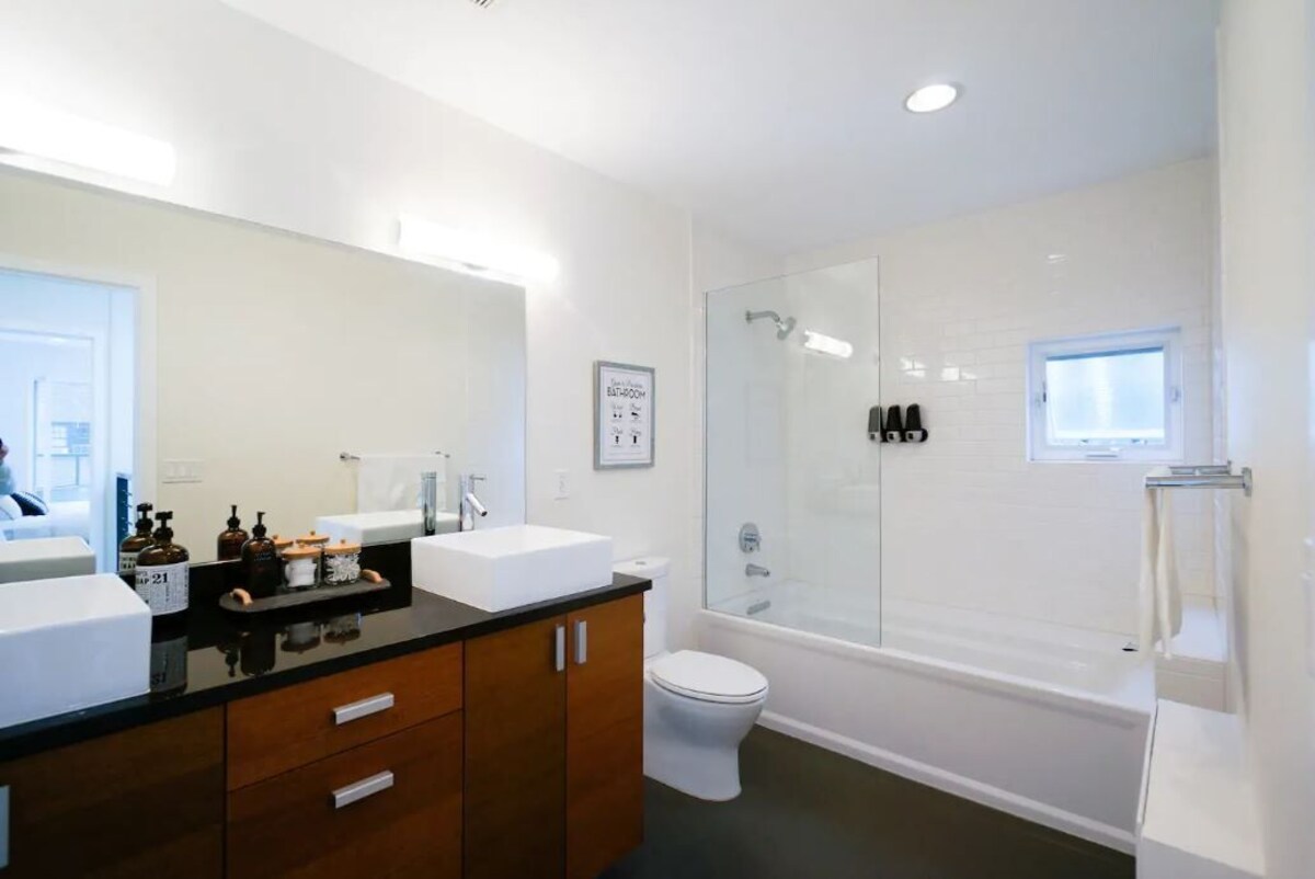 Welcome to your spacious Seattle retreat! This stunning 4-story architectural loft in the heart of Capitol Hill boasts soaring 10 ft ceilings, floor-to-ceiling windows, and a bedroom that opens directly onto a large rooftop deck. With a 96 Walk Score, you’re just steps from Pike Place Market, Downtown, Seattle’s best restaurants, breweries, and the Capitol Light Rail—perfect for exploring the city with ease. Spanning 1,800 sq ft, this modern townhouse offers 3 bedrooms, 3 bathrooms, and flexible sleeping arrangements for up to 10 guests—ideal for families, friends, or groups seeking comfort and style. Home Highlights: • Private 4-story townhouse with keyless entry • Designer furniture, floating stairs, and modern architectural details • Fully-stocked kitchen: Keurig & drip coffee machines, gourmet teas, cookware, dishes, utensils, and more • Comfortable sleeping: Hotel-quality Simmons Beautyrest mattresses, plush pillows, linens, and towels • 55” Smart TV with Netflix (no cable) • High-speed WiFi • Heating throughout; fans in every bedroom (no central AC – portable unit available upon request) • In-unit washer & dryer • Pack ’n Play available (please bring your own baby bedding) • Compact garage parking spot behind the house Home Layout: First Floor • Bedroom 1: 2 Queen beds • Full bathroom with shower • Private green patio Second Floor • Bedroom 2: 1 Queen bed + 1 Twin fold-out bed • Private bathroom with tub Third Floor • Open-concept living area with sectional sofa • Gourmet kitchen • 55” Smart TV with Netflix • Foldable dining table Fourth Floor • Master suite: 1 Queen bed + 1 Twin fold-out bed • En-suite bathroom with tub • Direct access to a large rooftop deck with city views Additional Sleeping • Queen air mattress available upon request for groups over 8 Guest Access: Guests have full access to all four floors of the townhouse, including the rooftop deck. Important Notes: • No central AC, but fans provided in every bedroom. Seattle’s climate is generally mild. • We do not provide cooking condiments, but groceries are available nearby. • Triple sheet system used for all beds to ensure fresh and clean linens. • Basic pricing is for 4 guests; $15 per person per night for additional guests. • Pets welcome: $150 per stay. • Greenbelt/neighbor’s backyard nearby; minor insect activity possible during rainy seasons. • Same-day check-in may be limited; confirm after booking. House Rules: • Same Day Booking: Please confirm check-in time. • Check-In/Check-Out: 4 PM check-in, 11 AM check-out. • No Shoes Inside • No Smoking (inside or within 20 ft of the perimeter) • Quiet Hours After 10 PM • No Parties or Unauthorized Guests • Trash: Sort into correct bins or leave inside cans for cleaners • Lost & Found: Items held for 2 weeks; shipping $35 + costs • No Mailbox Access: Package delivery is at guest discretion ________________________________________ Embrace Seattle living at its finest with space, style, and unbeatable location. Your urban oasis awaits! Registration number: STR-OPLI-19-001222 Our prices include all fees. No hidden fees.