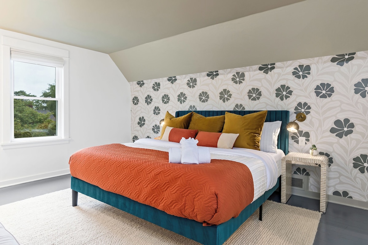 Enjoy Seattle from this spacious 4BR, 2BA home in Capitol Hill—one of the city's safest and most walkable neighborhoods. Just 10 minutes to Pike Place, the Space Needle, downtown, and other attractions. Sleeps 10 comfortably with a modern kitchen, updated bathrooms, luxe bedding, cozy backyard with firepit & a large game room. Steps from cafes, parks, and transit, including a 3-minute walk to Volunteer Park. Perfect for families, groups, and travelers seeking style, comfort, and convenience. The space Welcome to your home away from home in the heart of Seattle’s Capitol Hill. This professionally designed 4-bedroom, 2-bathroom luxury home beautifully blends the charm of its 1906 heritage with modern comforts and curated interiors, making it the perfect stay for families, groups, or cruise travelers seeking space, style, and convenience. BEDROOMS – Peaceful, Stylish, and Thoughtfully Designed Each of the four bedrooms features custom murals, premium bedding, and thoughtful touches to make your stay relaxing and memorable. Bedroom 1 – King bed – Ensuite bathroom with walk-in shower – Mini crib – Ample closet space Bedroom 2 – Two queen beds – Dresser – Closet space – Books and decorative accents Bedroom 3 – Full-size bed – Dresser – Closet space Bedroom 4 – Twin-over-twin bunk bed – Ensuite bathroom with shower-tub combo – Closet space – Toys and books for kids KITCHEN – Fully Equipped and Chef-Ready – Top-of-the-line appliances including gas stove, oven, microwave, dishwasher, blender, and Instapot – Fully stocked with cookware, utensils, oils, and spices – Coffee bar with Keurig, drip coffee maker, French press, tea kettle, and flavored syrups – Kids’ plates, bowls, and cups LIVING ROOM – Warm, Bright, and Inviting – Spacious seating with large couches – 65-inch Smart TV with streaming services – Entryway storage for shoes and coats – A perfect space for relaxing after exploring Seattle DINING ROOM – Gather, Laugh, Dine – Custom wooden dining table with seating for 10 – Original 1906 chandelier adds vintage charm – Artistic décor and warm lighting – High chair available for young guests GAME ROOM – Entertainment for All Ages – Poker table with seating for 8 – Full-size shuffleboard and foosball tables – 55-inch Smart TV with streaming apps – Lounge seating and a variety of board games BATHROOMS – Clean, Modern, and Well-Stocked – One bathroom with a walk-in shower – One bathroom with a shower-tub combo – Fluffy towels, washcloths, and hand towels provided – Hair dryers and complimentary toiletries included BACKYARD – Private and Relaxing Outdoor Space – Fully fenced backyard – Propane fire pit with outdoor seating for 10 – Life-size Connect 4 game – Electric grill for outdoor meals and BBQs WALKABILITY AND LOCATION – Located in one of Seattle’s most desirable neighborhoods – 3-minute walk to Volunteer Park with conservatory, walking trails, and playgrounds – Close to cafes, bakeries, grocery stores, restaurants, and bars – Easy access to public transportation, including buses and light rail – Only 10 minutes to downtown Seattle, Pike Place Market, and the cruise terminal – Free parking available for up to 2 cars WHY GUESTS LOVE THIS HOME – Prime Capitol Hill location near Seattle’s top attractions – Spacious layout that comfortably accommodates up to 10 guests – Professionally designed interiors with curated art and custom murals – Family-friendly with thoughtful touches including crib, toys, and high chair – Historic 1906 charm paired with luxurious modern updates – Fully stocked, professionally managed, and designed for an exceptional stay Whether you're visiting for a family vacation, a group reunion, a special celebration, or a cruise departure, this Capitol Hill retreat offers the perfect balance of location, character, and comfort to make your Seattle stay truly unforgettable. Guest access Guests have access to the whole house and the fenced backyard. One parking space is available in front of the house, and we have a permit for street parking on the street. Additional vehicles can park in the paid street parking Other things to note Local Attractions: 1. Pike Place Market – ~1.5 miles (~6-minute drive) A historic and vibrant public market featuring fresh produce, seafood, crafts, and the original Starbucks. 2. Space Needle – ~2.5 miles (~10-minute drive) Seattle’s most iconic landmark, offering panoramic city views and a revolving restaurant. 3. Chihuly Garden and Glass – ~2.6 miles (~10 minute drive) A stunning exhibit of colorful blown-glass installations and sculptures. 4. Museum of Pop Culture (MoPOP) – ~2.6 miles (~12-minute drive) Interactive museum showcasing music, sci-fi, movies, and Seattle’s rock legacy. 5. Olympic Sculpture Park – ~3 miles (~10 minute drive) Outdoor art park along the waterfront with large-scale sculptures and walking paths. 6. Seattle Aquarium – ~2.8 miles (~10-minute drive) Marine exhibits highlighting sea otters, tropical fish, and local sea life on the waterfront. 7. Seattle Great Wheel – ~3 miles (~10-minute drive) A 175-foot waterfront Ferris wheel with scenic views of the city and Puget Sound. 8. Volunteer Park – ~0.2 miles (~3-minute walk) Beautiful historic park with walking trails, a conservatory, and a water tower with panoramic views. 9. Denny Park – ~0.5 miles (~3-minute walk) Seattle’s oldest park with green lawns, walking paths, and quiet spots to relax. 10. Capitol Hill Cafés & Boutiques – ~0–0.5 miles (walking distance) Trendy cafes, independent shops, bookstores, and bakeries within a few blocks. 11. Pike Brewing Taproom & Capitol Hill Nightlife – ~1 mile (~5-minute drive) Popular local brewery and lively nightlife scene with bars, lounges, and music venues. 12. Museum of Flight – ~10 miles (~20-minute drive) World-renowned aviation museum featuring historic aircraft and interac