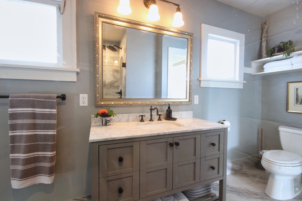 LOCATION -Ballard/Sunset Hill neighborhood -Blocks from Sunset Hill Park and Viewpoint (one of the best views in Seattle, looking out at Puget Sound, the Olympic Mountain Range, Shilshole Bay Marina, etc.) -Minutes from everything the Ballard neighborhood has to offer: restaurants, bars, coffee shops, year-round Sunday farmers market -Minutes from Golden Gardens Park and Beach. THE HOUSE -Two bedrooms on main level: King bed and TV in primary, Queen in the other. Blackout shades/curtains to ensure a good night's sleep. -Two bathrooms: one in hallway between two bedrooms, the other connects to a bedroom and the living room. -Basement (partially finished): spacious, accessible from upstairs and backyard. 3rd bedroom with QUEEN bed and another QUEEN in music/rec room. No bathroom yet on this level. -Zoned Heating and A/C THE GARDEN Fruit trees, berries, herb garden... help yourself! (Seasonal) PARKING Spot #1: Pull right up to the garage door Spot #2: Right behind Spot #1 on the gravel Spot #3: Front the house, right in front of the bus stop. Most folks park halfway on sidewalk so as to not stick out into the street. -And there's plenty of parking in the neighborhood Washer/Dryer in Basement Please be very careful going down to the basement as the first stair is short and steep... and then watch your head about halfway down... there's an art to it. Our prices include all fees. No hidden fees.