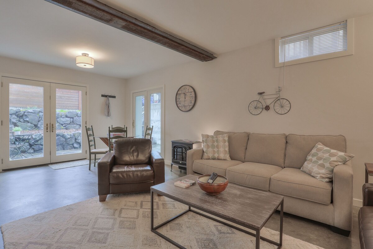 Fully separate from house—you have your own apartment with two bedrooms & two baths with showers. South Ballard location: WALK to all this popular area has to offer: QFC grocery, Olafs bar, Rupee restaurant, old town, Ballard Locks, espresso hang outs, and many popular restaurants and shops. Quiet unit with all HEATED polished concrete FLOORS and two stylish bathrooms. Gourmet kitchen with gas range and stone counters. Eight foot ceilings throughout apartment. Master bedroom has king bed & its own bathroom with tile shower. Hall bathroom has shower. Hide-a-bed couch that is brand new and has fold out memory foam mattress. TV now new larger one. Apartment has had extensive soundproofing so you are comfortable. Owner is builder. **Pets Welcome** South Ballard’s friendliest Vacation Rental with top reviews** Bobby & Jensa. This part of Ballard is among the most peaceful yet close to the action of Ballard. We are west of 24th which is less busy than east of 24th. We are one house off of 28th, the boundary of all single family homes to the west, again a more relaxed area than to the east. You can easily walk to the Green Grocer, Olaf's, Rupee, Kimchi House, Samara & Piccolinos on 32nd-walk! and Copine (Michelin rated gourmet restaurant!) and the new gourmet place ADDO which are due east on 24th and 63rd. If you want a more extensive grocery selection hit QFC on 24th and 57th. Walkable! And just two more blocks is Market Street and Ballard Avenue, the main streets in Old Ballard. Ballard Ave. is one of the best streets in Seattle full of shops, restaurants and pubs! If you are in town on Sunday a must attend is the Ballard Sunday Market on Ballard Ave! Please ask us for tips anytime for things to do in the area. We have been living and working in the area for decades and know every inch of Ballard and Seattle. Bobby's family has been in Seattle since about 1890! Our prices include all fees. No hidden fees.