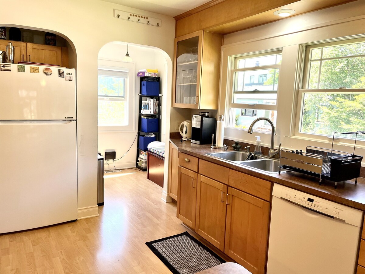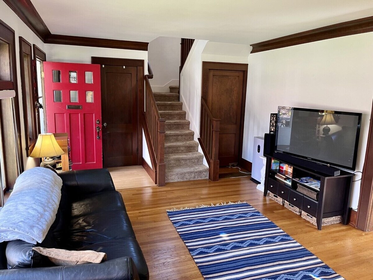 Nestled in the captivating walkable neighborhood of Wallingford, lies our family home: a charming 4-bedroom craftsman gem, radiating history and charm. A complete 4 bedroom, 2 bathroom house close to amenities, attractions, and transportation. We have off street parking and a complementary EV charger. We stock propane and provide a fully functional kitchen. We do actually live here when we are not renting it out and we ensure there's ample space in closets and drawers, however some of our possessions are here too. Step onto the warm, golden hardwood floors that stretch throughout the main living area, where sunlight spills through original vintage windows. Gather around a meal in the elegant dining room while the spacious and well-equipped kitchen patiently awaits to excite your culinary senses with its abundance of essentials. We cook every night, so have outfitted the kitchen with everything you would need. Each thoughtfully designed space beckons with an invitation for a good night's slumber - the main floor hosts two cozy bedrooms, one adorned with a full bed, and the other, a unique \ bed, alongside a full bath. A vibrant living room, accentuated by a 50\ s room that houses a delightful twin bunk bed set. A second full bathroom adds a touch of convenience to this level. Venture outside to discover a large flat yard that eagerly awaits the laughter, joy, and memories to be made. With the luxury of rare off-street parking this lovely home promises an unforgettable, hassle-free stay in a picture-perfect neighborhood. Just a stone s Drive-In serves up delectable cravings just up the road. The electric U-District is a mere hop across the I-5, a swift 10-minute journey. A quick jaunt brings you to a QFC supermarket for all your grocery needs. We ,