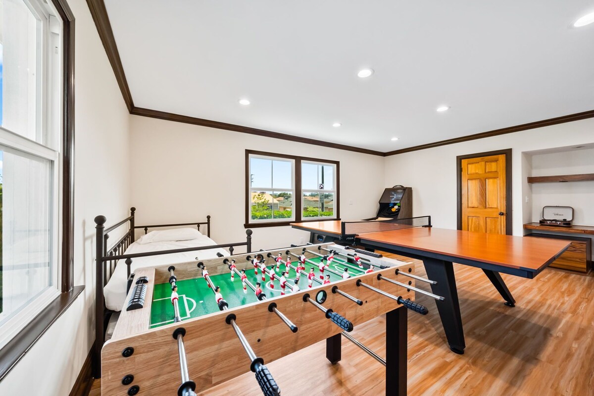 Experience the best of Beverly Hills in this luxurious 6-bedroom retreat! Relax by the pool, challenge friends in the game room, and easily explore Rodeo Drive's legendary boutiques – all within walking distance. Our spacious home comfortably sleeps 14 and offers all the amenities for an unforgettable stay. - Private Pool - Jacuzzi - Exciting Game Room ( Pingpong, Arcade Speedball) - Prime Location – Walk to Rodeo Drive - Fast WiFi - Smart TVs - Fully equipped Kitchen Absolutely NO PARTIES whatsoever. Please keep in mind: our pool is surrounded by beautiful nature, which can sometimes lead to leaves and twigs ending up in the water. On windy days, there may be more leaves than usual, but we do have a twice a week pool cleaning service to keep it in tip-top shape. We do keep a pool net there just in case you need to use it. OTHER THINGS TO NOTE: To abide by local legal requirements, you may be asked to complete a secure verification portal by providing a copy of your official government-issued photo ID, confirming your contact information and sharing the purpose of your stay. The information is collected for screening and verification only and is not stored or used for any other purposes. By making a reservation, you acknowledge that you may be required to provide a copy of a valid government-issued ID prior to check-in. You understand that your check-in instructions might be withheld until you have successfully completed verification steps in our guest portal. For security and to prevent unauthorized parties, please be aware there are two cameras on the property: - Ring Doorbell Camera at the front door - Backyard facing pool ----------- We're thrilled to have you considering our property for your next stay! When making your reservation, we'd love to know a bit more about your group. If you wouldn't mind, please provide us with the following information when you book or message us: 1. How many guests will be staying with us and their approximate age range? Will there be any visitors stopping by during your stay? 2. The purpose of your visit – is this a relaxing vacation, a busy business trip, or something else entirely? 3. Confirmation that you've had a chance to read through our house rules. You can find these in the \ section at the bottom of the listing. ------------- House Rules: Welcome to our home! We want you to have an amazing time, so we've put together some friendly tips to ensure everyone has a great stay: 1. **No smoking or parties, please!** We have a NoiseAware and Ring doorbell to help us keep things quiet and peaceful for all. 2. **Respect our neighbors.** Please keep things quiet after 10 pm, especially any music or outdoor gatherings. No swimming for groups or kids after 10 pm either. 3. **Let us know who's coming!** Please tell us the exact number of guests staying at the house and if anyone plans to visit during your stay. 4. **No fires, please!** The fireplace is just for decoration, and we're in a fire hazard zone, so no fires anywhere on the property, including smoking. 5. **Parties and events are strictly prohibited.** 6. **Keep things tidy!** Please clean up after yourself to help keep our home neat and tidy. 7. **Pool and garden care:** We have a gardener (Saturdays) and pool service (Tuesdays and Fridays) come every week. You can request for additional cleanings for a fee (covered by the guest) if needed. Please note that sometimes leaves and twigs might fall into the pool, especially between service days. If that happens, feel free to use the pool net to scoop them out. Thanks for helping keep things sparkling! 8. **Furry friends welcome!** We love pets, and they're welcome to join you for an extra fee of $250 per pet. Just let us know beforehand so we can approve it. 9. **Check-in and checkout times:** We're happy to offer early check-in or late checkout if we can, but it depends on availability. There might be an extra fee of $50 per hour. **A friendly reminder:** While we want you to have a fantastic time, we can't be responsible for any accidents or injuries that happen during your stay. So, please be careful and have fun! We're here for you 24/7 if you have any questions or need anything at all. Enjoy your stay! 😊 Our prices include all fees. No hidden fees.