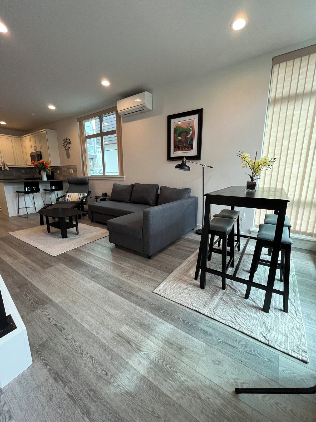 Welcome to our stunning new townhome that has all the comforts of home! This beautiful 3-story townhome is located in a prime location in Seattle, with easy access to all the city's top attractions. Whether you're in town for business or pleasure, our townhome is the perfect home base for your stay. As soon as you step inside, you'll be greeted by a warm and inviting atmosphere. The townhome is beautifully decorated with modern furnishings and stylish decor, creating a cozy and comfortable space for you to relax and unwind. One of the highlights of our townhome is the rooftop deck, which offers panoramic views of the city and mountains. It's the perfect place to enjoy a cup of coffee in the morning or a glass of wine in the evening while taking in the breathtaking views. The townhome has three floors, with the bedrooms located on the top two floor. Each bedroom is beautifully appointed with comfortable beds and high-quality linens, ensuring a good night's sleep. The bathrooms are also well-appointed with modern fixtures and plush towels. The main floor of the townhome features a fully stocked kitchen, complete with all the appliances and cookware you need to prepare delicious meals. The living room is cozy and comfortable for you and your guests to relax and unwind. One of the best things about our townhome is its location. You can easily walk to restaurants and shops, or take a short bus ride Downtown to explore Pike Place market, the Seattle Center, and the Space Needle. With its proximity to the city center, you will have easy access to everything that Seattle has to offer. I n summary, our beautiful 3-story townhome in Seattle is the perfect place to stay for your next trip to the city. With its stunning rooftop deck, comfortable bedrooms, and prime location, you'll have everything you need for a memorable and enjoyable stay. Book now and experience all that Seattle has to offer! Our prices include all fees. No hidden fees.