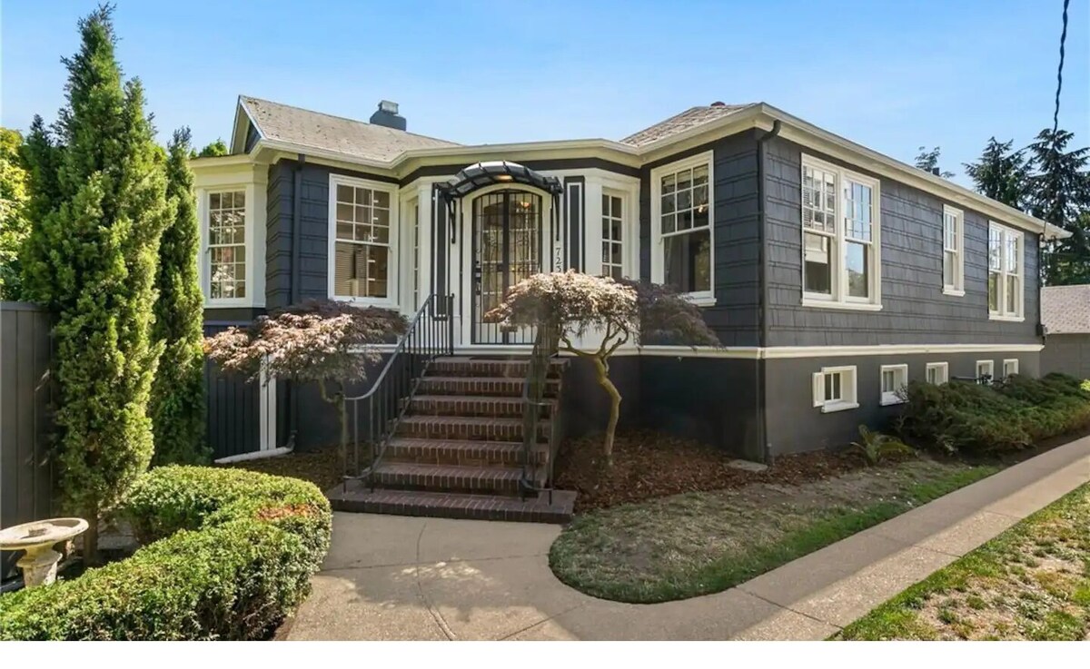 Experience the ultimate Seattle getaway in this beautifully renovated historic mini-mansion in Capitol Hill! Blending over 110 years of timeless architecture with modern amenities, this spacious 2-story home offers comfort, style, and convenience. Ideal for families, groups, or business travelers, enjoy hotel-quality mattresses, crisp linens, and fully equipped kitchens in one of Seattle’s most prestigious neighborhoods. Just a 15-minute walk from the heart of Capitol Hill, you’ll have easy access to top restaurants, breweries, parks, and cultural hotspots. Home Highlights: • Private two-story home with keyless entry • Fully equipped kitchen with Keurig, K-cups, gourmet tea, cookware, and dishware • High-speed Wi-Fi for remote work or streaming • Efficient heating and AC (wall units; portable AC available on request) • In-unit washer & dryer • Two reserved off-street parking spots • Pack ’n Play available (baby bedding not provided) • Triple-sheeted, professionally laundered bedding on plush hotel-quality mattresses • Comfortably accommodates 6–10 guests • Optional queen air mattress available for larger groups Home Layout: Main Level (1st Floor): • Bedroom 1: Queen bed + ensuite bathroom • Bedroom 2: Queen bed + ensuite bathroom • Bedroom 3: Full bed • Additional full bathroom • Living area and kitchen Lower Level (Basement): • Bedroom 4: Queen bed + ensuite bathroom • Bedroom 5: Queen bed + ensuite bathroom • Bedroom 6: Queen bed • Additional full bathroom Nearby Attractions: • Northwest Film Forum – 10 min drive • Cal Anderson Park – short walk • Pike Pine Corridor & Broadway Shops – 15 min walk Guest Access: Guests have full access to the entire home. Additional Notes: • Cooking condiments not provided • Basic pricing includes 4 guests; additional guests $25/person per night • Pets welcome ($150/pet per stay) • Same-day check-ins may be delayed to 6:30 PM depending on turnover • Minor insects may appear in rainy season (routine pest control in place) • Free 24-hr street parking available on East Prospect St., and nearby 13th & 14th streets House Rules: • Check-in: 4 PM | Check-out: 11 AM • Quiet hours after 10 PM • No shoes inside • No smoking inside or within 20 ft • No parties or unauthorized guests • Trash: Please sort and use proper bins • Lost & Found: $35 handling fee + shipping if items recovered (held for 2 weeks) • No mailbox access; package deliveries at guest discretion Our prices include all fees. No hidden fees.