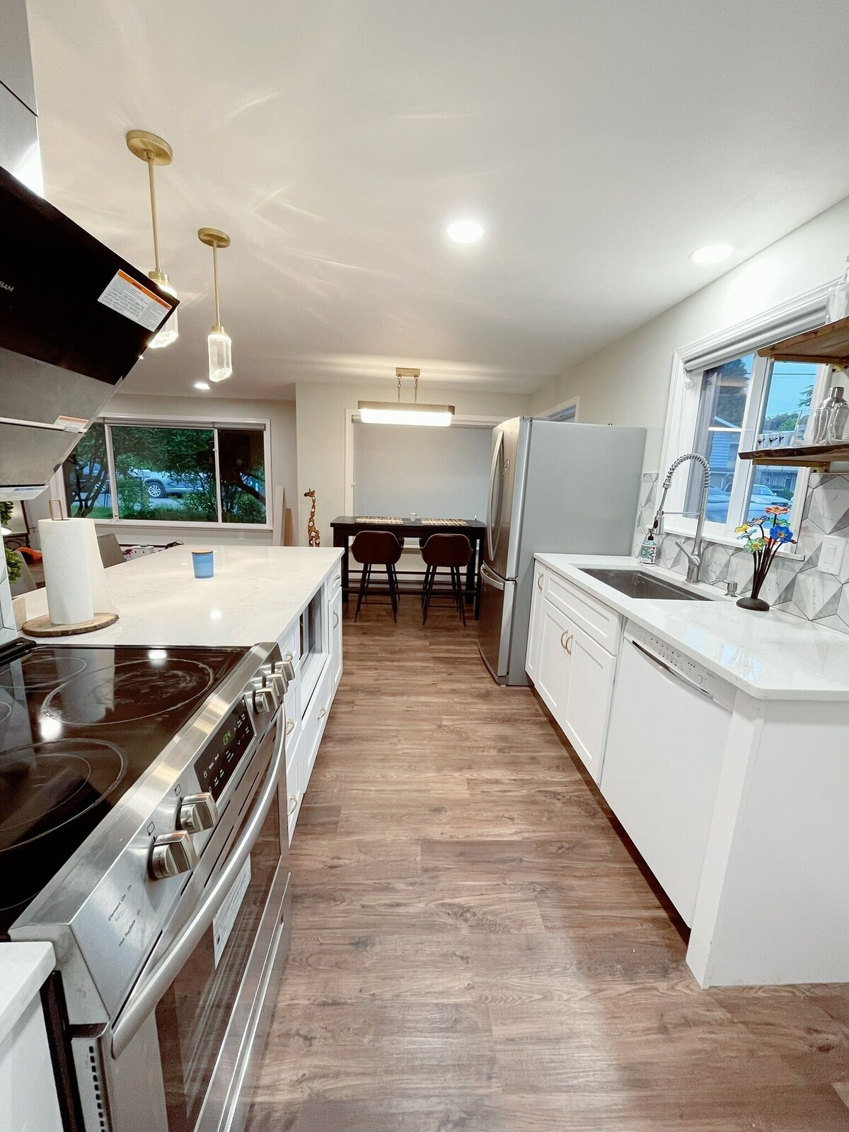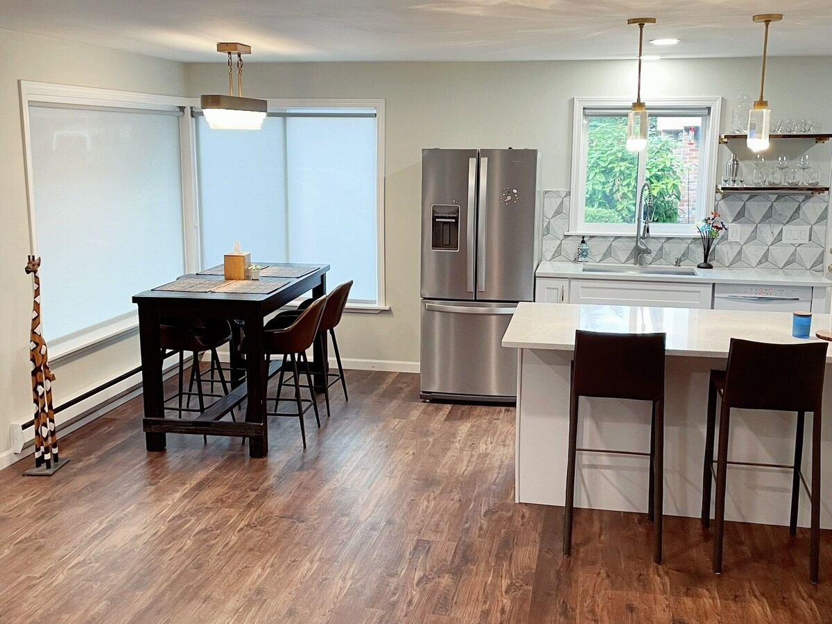Relax with your whole family at this peaceful place with 2 bedrooms, 1 backyard office and a wood deck. Wake up in the morning with bird chirping, watch bunnies playing in the backyard, or pick apples from the front yard apple tree. Enjoy your private and quiet vacation here! Our place has two bedrooms, one bathroom, one backyard office with a large window, two parking spots in front of the house, ideal for family vacation or business trip. The master bedroom has the backyard access. We also have a Nespresso coffee maker and milk frother for our guests, enjoy a cup of coffee or cappuccino on the outdoor sofa or do yoga on the wood deck. You can find apple tree, crab apple tree, plum tree and magnolia tree in the front yard and back yard, feel free to pick an apple during your stay in the fall! All the stainless steel kitchen appliances are new, including touchless range hood, slide-in range, and fridge with water filter. Washer and dryer are available in the unit. Our prices include all fees. No hidden fees.