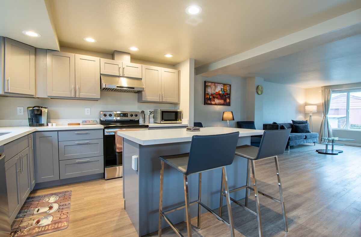 Modern and recently updated townhome in North Beacon Hill. Quick access to Lightrail and Public Transportation. Three story townhome with Air Conditioning (portable air conditioner). All hardwood floors, gorgeous kitchen w/ high-end appliance to go with a snazzy interior - perfect balance of function and design. Private access with 2 car garage parking. Wifi access and TV with complimentary Netflix & Disney+. Minutes to nearby park, restaurants and supermarkets. Perfect location & just minutes away from International District, Downtown & Capitol Hill. The space - modern townhome layout: 1st Floor - Front door entrance, access from garage, dryer/washer and 4th bedroom 2nd Floor - Kitchen, dining and living room and patio 3rd Floor - Master bedroom, 2nd and 3rd bedroom Our prices include all fees. No hidden fees.