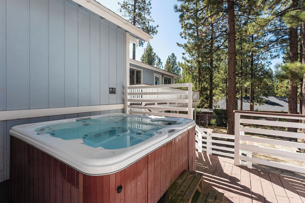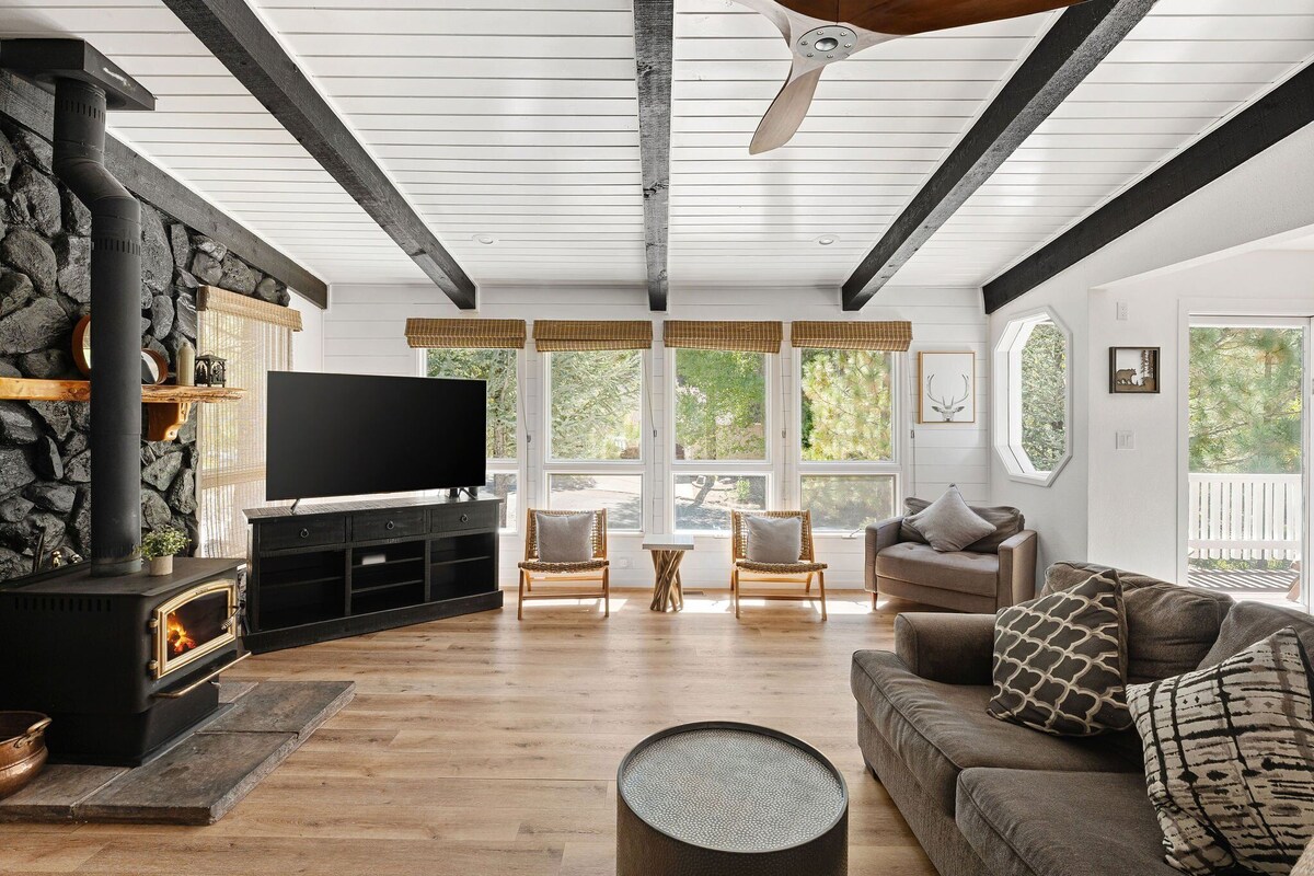 Get away from the everyday and escape to the ultimate family retreat with endless activities for all. Nestled among large pines in the centrally located neighborhood of Fox Farm, this luxury home has everything your entire family is looking for. This recently remodeled, immaculately clean, light, and bright modern cabin gives you all the amenities Big Bear has to offer. With plenty of windows giving you treetop views from multiple areas of the home. Enjoy the gas bbq and the hot tub on those winter nights and view the stars. Wrap up with your loved ones in the spacious living room with comfy blankets in front of the wood-burning fireplace. The possibilities are endless! This home does not have a/c. While air conditioning is absent, nature compensates with its own cooling system - the fresh mountain air. Now featuring more entertainment options including a giant Connect Four game, Cornhole, an electronic keyboard with headphones, large TVs in all bedrooms and enhanced comfort with memory foam mattress toppers for all king beds. Stay connected with our installed mesh routers for seamless internet access, plus a backup router to ensure multiple access spots. Control your environment effortlessly with an Ecobee smart thermostat controlled by voice command. The perfect getaway just got better! Please respect the home and follow the rules, just as you expect timely assistance from us. Many of these rules are city regulations, while others help us maintain the homes in top condition. Our goal is to ensure a great experience for our guests and property owners. * Check-In: Remote check in after identity verification. * Parking: Follow city-enforced parking limits. If you need more space, let us know. There is a Tesla charger available for a fee. * Occupancy: Adhere to the maximum occupancy limits enforced by us and the city. No exceptions. * Noise: Be respectful to neighbors. Keep music inside and at a low volume. Quiet hours are from 9 PM to 8 AM. We have monitoring system in place that reads decibels of noise and notifies you directly and us of loud noises. * A/C: Most homes do not have air conditioning. Nights are cooler with open windows. This home has a whole house fan * Ants: Clean up after meals to avoid attracting ants. We use traps and sprays, but cleanliness is key. * Trash: Dispose of trash at the designated clean site as required by city regulation. * Age Requirement: You must be at least 24 years old to book. We do not allow parties. This rule is strictly enforced. We appreciate your cooperation. If you have any issues or concerns, please communicate with us—we're here to help. Check-in starts at 4 PM Checking In: * IDs are required at check-in. * You must be 24 years or older to book and check in. * You'll need to sign a Rental Agreement with the Big Bear Good Neighbor Policy (5 minutes). The link with the rental agreement will be sent once the booking is confirmed. It needs to be completed and signed before checking-in. To confirm and maintain your reservation, our Rental Agreement must be completed within 24 hours of booking. Failure to complete the agreement within this timeframe may result in cancellation without refund if the cancellation window has passed. Please note: Our standard cancellation policy applies from the moment the reservation is confirmed, not from when the rental agreement is completed. By booking, you agree to complete all required documentation within the given timeframe and to be bound by the cancellation terms. Early Check-In and Late Check-Out: * Early check-in and late check-out options are available for a fee, based on availability. * Please inquire at the front desk for these services. Big Bear Lake STR Permit VRR-2024-1644 Our prices include all fees. No hidden fees.