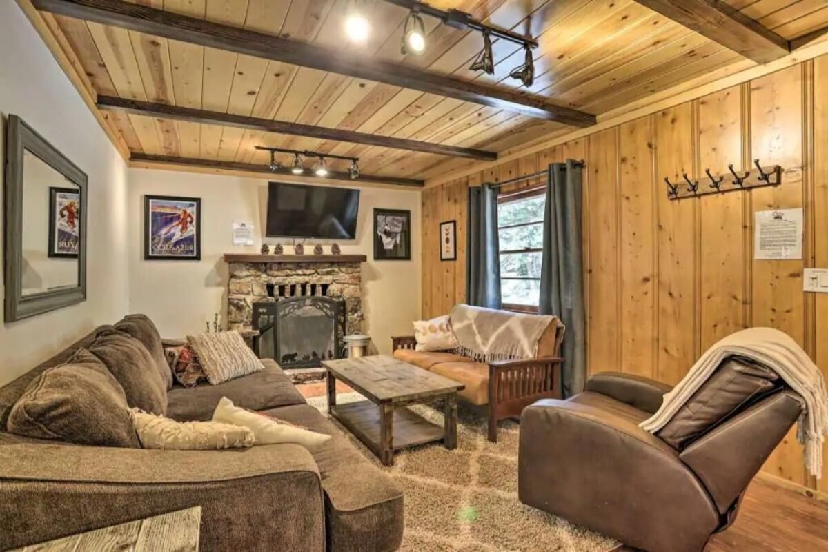 Welcome to Plymouth Lodge! Surrounded by the beauty of the mountains and forest, this 3-bedroom cabin is tucked away on a peaceful cul-de-sac in the Moonridge neighborhood of Big Bear Lake. After a day of hiking the trails of San Bernardino National Forest, kayaking on the lake, or skiing the thrilling slopes of Big Bear – you can rest easy knowing you'll come home to a relaxing private hot tub or evening snuggle by the wood-burning fireplace. The space SUMMARY - Private cabin on peaceful quiet cul-de-sac in Big Bear Lake (Moonridge neighborhood) - Large, private backyard with plenty of room for your pets (Not fenced in). - Wood burning fireplace - Spa in backyard - EV Charger (ChargePoint Home Flex NEMA 6-50) - Washer and dryer included - 3 Bedrooms / 1.5 Bath - Bedroom #1: One King Bed // Bedroom #2: One Queen Bed // Bedroom #3: Four Twin Beds (Bunk beds) - 200 Mbps internet THE PROPERTY Plymouth Lodge is a private cabin deep in the mountains, located in the highly desirable neighborhood of Moonridge in Big Bear Lake, CA. Surrounded by the tranquility of the San Bernardino National Forest, you will enjoy long hikes, jaw-dropping stargazing, or warming up by the wood burning fireplace. On the inside, the cabin has 3 bedrooms + 1.5 baths, 6 beds, a recently renovated & gorgeous kitchen, one of the most comfortable couches you will ever sit on, and smart TVs in every room. Come stay with us and enjoy the cabin life. :) Our prices include all fees. No hidden fees.