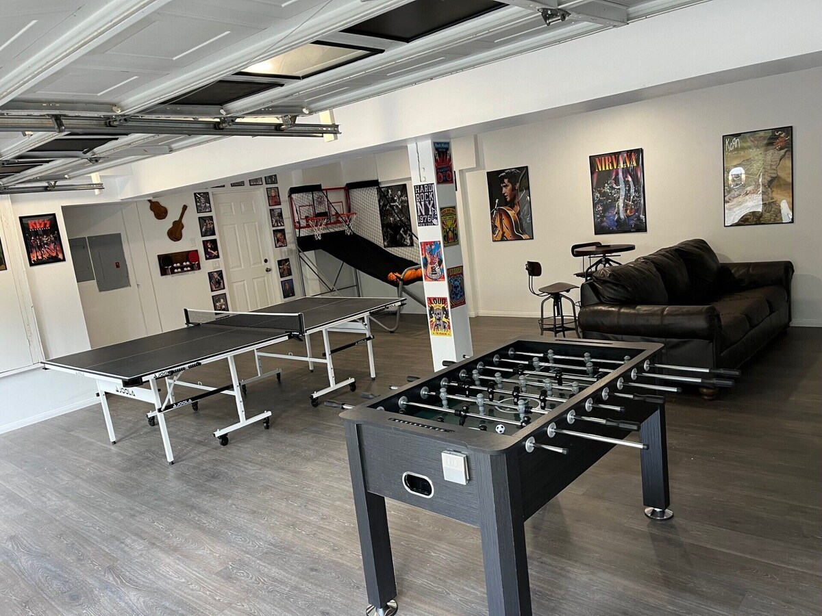 Entertainers dream with 9 bedrooms, 13 beds, 6 bathrooms, basketball, miniature golf, 2 game rooms and 3 decks with views to relax on! This incredible 4-Level Spacious Home is perfect for large family gatherings & reunions, sleeps up to 16 with with ample parking and less then a mile from the Big Bear Lake & Snow Summit! Excellent location in Fox Farm near markets, restaurants & activities, or stay home with gas BBQ, 2 fireplaces, outdoor seating, 3 TV rooms and smart TV's in every bedroom. This beautiful home was remodeled August and September 2024 with all NEW UPGRADES!!! New remodeled kitchen, New Flooring, Smart TVs in every room, all new bathrooms, basketball court, miniature golf, game room and more! This 4-level home features 9 bedrooms, 5.5 baths, 2 game rooms, a TV/sitting room on each floor and 2 fireplaces! You'll feel peaceful and secluded with the trees surrounding you in this amazing getaway located in the prestigious Fox Farm area. You are close to the slopes, the lake, shopping and a short drive to the village! With over 5,000sq. ft. of space there are plenty of entertainment opportunities - perfect for families, family reunions, or groups. Great for entertaining and enjoying, indoors and outside throughout the yard. The living room features comfortable seating, a fireplace, French doors directly out onto one of this home's very spacious decks with an outdoor gas BBQ and Smart TV's in every room. Now 2 game rooms with pool, foosball, ping pong and more. You are sure to look forward to spending time here after a day of adventuring in Big Bear. There is also a second living room with wood wood-burning fireplace, Smart TV and large couch to relax on. This home is a very comforting and welcoming gathering spot. The kitchen is fully appointed with a stove, dishwasher, microwave, blender, toaster, coffee maker, and more - while it offers both a dining room and eat-in kitchen - room for everyone! With 3 different levels of decks and a spacious yard, you will be able to enjoy the peaceful and spacious feeling of this home. General Bathtub Dining Area Dining Room Driveway Dryer Fireplace Hair Dryer Hangers Heating Internet Kitchen Table Linens Living Room Parking Towels Walk-In Shower Washer Wireless Internet Kitchen Cookware Dishes & Utensils Dishwasher Hot Water Kitchen Microwave Oven Refrigerator Stove Entertainment Basketball Miniature Golf Ping Pong Foosball Pool Table Smart TV's Outside Deck/Patio Grill/BBQ Safety Carbon Monoxide Detector Fire Extinguisher First Aid Kit High Touch Surfaces Cleaned with Disinfectant Smoke Detectors Accessibility Punch code on doors Private Entrance Leisure Activities Bird Watching Boating Eco Tourism Horseback Riding Scenic Drives Shopping Sight Seeing Wildlife Viewing Local Services Groceries Hospital Laundromat Medical Services Location Type Golf Course Nearby Mountain View Ski Resort Nearby Mountain Nearby Attractions Forests Lakes/Rivers Marina Sport Activities Cross Country Skiing Cycling Fishing Hiking Kayaking Rock Climbing Skiing Our prices include all fees. No hidden fees.