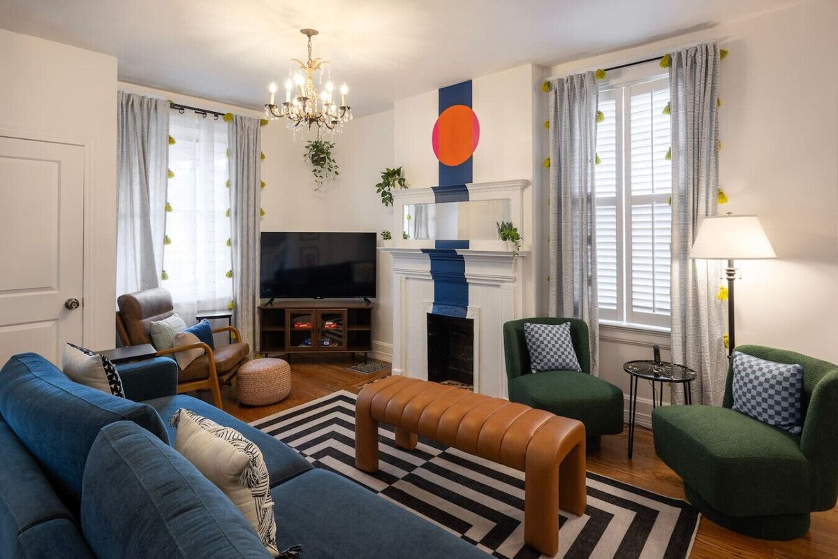 Welcome to Academy House — a historic, three-story Cincinnati gem where each bedroom is themed with a touch of academia. Sleep under a constellation mural in the Science Room, spin vinyl in the Music Room, and gather around the backyard firepit after exploring nearby Over-the-Rhine. There is so much to do in Cincinnati, and guests will get our guidebook of the absolute best things to do, see, eat, and drink in our city! 😀 In general: - Keypad entry and self check-in - 2 full bathrooms with Jacuzzi bathtubs - Fast WiFi - Roku Smart TV in Living Room - Roku Smart TV in Music Bedroom - Fully stocked kitchen with brand new dishwasher, range, and microwave, extensive small appliance collection (air fryer, blender, toaster, coffee grinder, crockpot, hand mixer) - Coffee and tea station (Keurig, drip coffee machine, electric kettle, and French press) - 8 person dining table - Combo Booster seat/high chair - Pack N Play - sheets not provided. Please bring your own sheets. - Washer and dryer - King beds in all bedrooms - Dedicated workspace in the 2nd floor office - We provide a generous starter supply of paper towels, toilet paper, trash bags, shampoo, conditioner, body wash, hand soap, dish soap, laundry detergent, fabric softener sheets, coffees, teas, creamers, and sweeteners. 🛏️ Sleeping Spaces: - Spin vintage vinyl or pluck the strings of the guitar in the Music room. Unwind from the day with your own Roku Smart TV. - Enjoy morning coffee and pick a book off of the wall to enjoy in the private seating area of the Literature Room. - Peruse art books and spark your creativity in the Art Room complete with cozy sitting area for one. - Read under the stars in the Science Room. 🌳 Outdoor space: - Outdoor dining table for 8 - 8 Adirondack chairs for relaxing around a propane fire pit - Front porch with seating area for 2 🚗 Parking: -Free street parking 📍 The location: - Less than 2 minutes off of I-71 with easy access to downtown Cincinnati - 1 mile from Hard Rock Casino - 2.2 miles to Paycor Stadium (home of the Bengals) - 1.9 miles to Great American Ballpark (home of the Reds) - 1.4 miles to University of Cincinnati - 2.9 miles to Xavier University - 1.7 miles to Heritage Bank Center - 1.8 miles from TQL Stadium (home of FC Cincinnati) - 1.2 miles to the Over-The-Rhine district (restaurants and bars) - 0.6 miles from Christ Hospital - less than 2 miles to Cincinnati Childrens Hospital, University Hospital, VA Hospital A few notes: There are steps up to the house from the street, and the home has three stories. This is an older home with lots of steps, which unfortunately makes access difficult for anyone with mobility issues. The bedrooms are on the 2nd and 3rd floors. The 2 full bathrooms (both with shower/tub combos) are on the 1st and 2nd floors. The Music and Literature bedrooms have a door between them that can be locked from either side or can be open - great for families with children! The Art Bedroom is open to the stairs, and guests staying in the Science Bedroom must pass through the Art Bedroom to go downstairs. Ceilings in the 3rd floor bedrooms (Art and Science) are sloped, so please mind your head when navigating the space. There is one motion-sensor flood light and camera located at the front entrance of the home. There is one security camera at the back door of the home. The following areas of the home are used for owner storage and are not accessible to guests: living room closet, Music bedroom closet, basement, and backyard shed. Allergen alert - While we do our best to thoroughly clean between guests, this home is dog-friendly and may not be appropriate for guests with pet allergies. Whether you`re here to cheer on the Bengals, reconnect with family, or simply explore the city, Academy House offers a cozy, creative retreat you`ll remember long after checkout. Guests will self check-in using a keypad on the front door. Please message us if any assistance is needed during your stay. PETS We allow up to **3 dogs (50 lb max each)** for **$75 per pet, per stay**. - If you add pets during booking, VRBO will automatically include the first pee fee in your total. - If not, we’ll send an alteration request after booking. - We will request additional pet fees after booking For larger dogs or more than 3 pets, please **send an inquiry first** for approval. **No cats or other animals are allowed.** RENTAL AGREEMENT, DAMAGE WAIVER/HOLD, ID VERIFICATION AND CHECK-IN STEPS We`re so excited for your trip! PLEASE NOTE: Our listing description and house rules mention that you will be required to complete a Guest Rental Agreement, ID verification, and Security Hold (which is not a security deposit) in order to receive Arrival Instructions to the home. Details of the Guest Rental Agreement can be found in the House Rules. Important: When cancelling your reservation, the credit card processing fees of 3.9% + 30c will not be refunded. If booking with a credit card that doesn`t match the guest name, you`ll be required to provide a written authorization, photo of the ID, selfie, and card showing the last 4 digits of the credit card holder, or reservation will be cancelled. Cincinnati Short Term Rental Registration #414210 Our prices include all fees. No hidden fees.