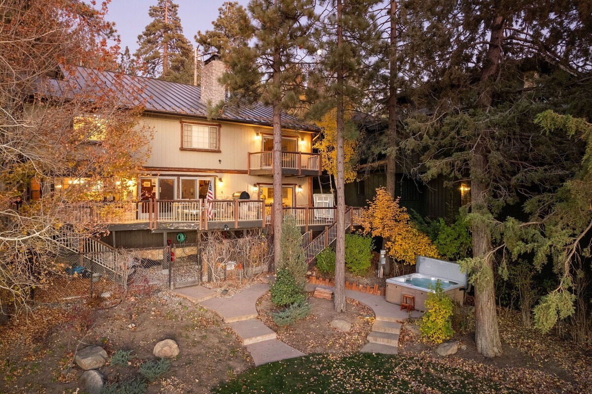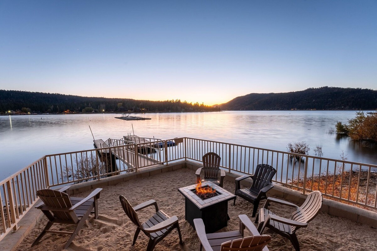 Discover the serene beauty of Water's Edge, a stunning lakefront property nestled in the heart of Big Bear Lake. This idyllic retreat is perfect for families with kids or groups of friends looking to create unforgettable memories together. With its prime location right on the water, Water's Edge offers breathtaking views and direct access to the lake, complete with a private dock for all your aquatic adventures. Whether you're swimming, fishing, or simply soaking up the sun, this property is designed for fun and relaxation. The spacious layout accommodates up to 16 guests, making it a peaceful getaway for large or multiple families. The ambiance is warm and inviting, ensuring a comfortable stay. Enjoy the convenience of a fully equipped kitchen, perfect for preparing meals after a day of exploration. The living area is designed for relaxation, providing a peaceful space to unwind and enjoy the stunning lake views. Cozy up in the movie room w/ surround sound for a memorable movie night or enjoy the foosball & ping pong table for some friendly competition. Step outside to experience the beauty of nature right at your doorstep. The outdoor space is ideal for barbecues, stargazing, picnics, or simply enjoying the fresh air while relaxing in the hot tub, taking in the picturesque surroundings. Water's Edge is not just a place to stay; it's a gateway to adventure. Explore nearby attractions such as hiking trails, local shops, and dining options that showcase the charm of Big Bear Lake. Don't miss the chance to experience this unique lakefront property. Book your stay at Water's Edge today and immerse yourself in the beauty and tranquility of Big Bear Lake! Property layout: 1st Floor, Entry Level: -Entry to home & access to garage. 2nd Floor, Downstairs: -Bedroom w/ 1 twin over twin Bunk bed & 2 twin singles. (Sleeps 4) -Jack N Jill Bathroom -Laundry room (detergent, fabric softener, or dryer sheets are not supplied.) -Bedroom w/ Queen Bed & smart TV. (Sleeps 2) -Bedroom w/ Queen Bed. (Sleeps 2) -Guest Bathroom -Master Bedroom w/ King bed, private balcony, smart TV, wood burning fireplace (Wood is not supplied). As well as en suite bathroom w/ dual shower, jetted tub, double sink, and fire TV. (Sleeps 2) 3rd Floor, Bottom Level: -Kitchen w/ basics needed to cook, pantry, trash compactor, 2 ovens, and 2 refrigerators! Adjacent to the kitchen is the breakfast nook, desk/workspace & Fire TV -Dining area w/ wood burning fireplace. (Wood is not supplied) -Living room w/ smart TV, foosball table, & gas stove w/ fake logs. -Entertainment room w/ surround sound, Smart TV and Queen pullout couch. (Sleeps 2) -Guest Bathroom -Bedroom w/ King bed (Sleeps 2) -Bedroom w/ King Bed (Sleeps 2) -Access to outside area. -Outside: Propane BBQ, Hot Tub, Propane Fire pit, seating, hammock, swing, lake/dock access, & amazing lake views! *This home has a foosball & Ping Pong table. *The dock is only available during spring/summer months. *This home does not have central AC, only central heating. Disclosure: All our pictures are for displaying the home. Please keep in mind that appliances, decor, and furniture can change at any given time without notice. Please refer to the amenity list for the current amenities provided. Thank you! Guests' Rules Welcome to the rules for Water's Edge. Our aim is to maintain a harmonious environment that aligns with local Code Compliance and respects the comfort of all guests. As part of this effort, we've established some friendly but firm and inflexible house guidelines. Maximum Occupancy: 16 guests (14 adults max). The maximum occupancy for guests can not be exceeded at any given time. Parking: Space for 6 vehicles, including garage access. Exceeding the limit may result in fines of up to $1,000. Pets: Pets Allowed (Max: 2 pets). Pets require pre-approval: Post-approval, a $125 fee per pet applies (charged post-booking). Unapproved Pets: incur a minimum of a $1,000 fine. Pet Guidelines: Kennel pets when unattended. Keep off furniture/beds. Clean up after them. Charges apply for pet damages. Coyote Warning: Coyotes are extremely prevalent in Big Bear, even in the most densely populated areas. If you see one, you can bet they re part of an unseen pack. These animals are bold and territorial. They pose a significant threat to pets. For their safety, never leave your pets unattended, even in fenced areas, especially after dark. Coyotes are known for their ability to overcome barriers, including high fences. And they re even known for attacking pets that are on a leash. We cannot overstate the need for heightened vigilance concerning your pets safety. Check-In: Remote check in after identity verification. You'll need to sign a Rental Agreement with the Big Bear Good Neighbor Policy (5 minutes). The link with the rental agreement will be sent once the booking is confirmed. It needs to be completed and signed before checking-in. To confirm and maintain your reservation, our Rental Agreement must be completed within 24 hours of booking. Failure to complete the agreement within this timeframe may result in cancellation without refund if the cancellation window has passed. Please note: Our standard cancellation policy applies from the moment the reservation is confirmed, not from when the rental agreement is completed. By booking, you agree to complete all required documentation within the given timeframe and to be bound by the cancellation terms. Noise: Quiet hours from 10 pm to 7 am. You are not allowed to be outside, in a hot tub, play music or create any noise from inside of the residence that could be heard outside of the home. If these rules are violated, Code Enforcement could impose fines of up to $1,000 or eviction. (We have no control over Code Enforcement's decisions.) Air Conditioning: None. Enjoy natural mountain breezes through open windows. Ants: Sometimes our ants can be a bit over-friendly. To keep these small visitors at bay, we suggest promptly cleaning up right after each m