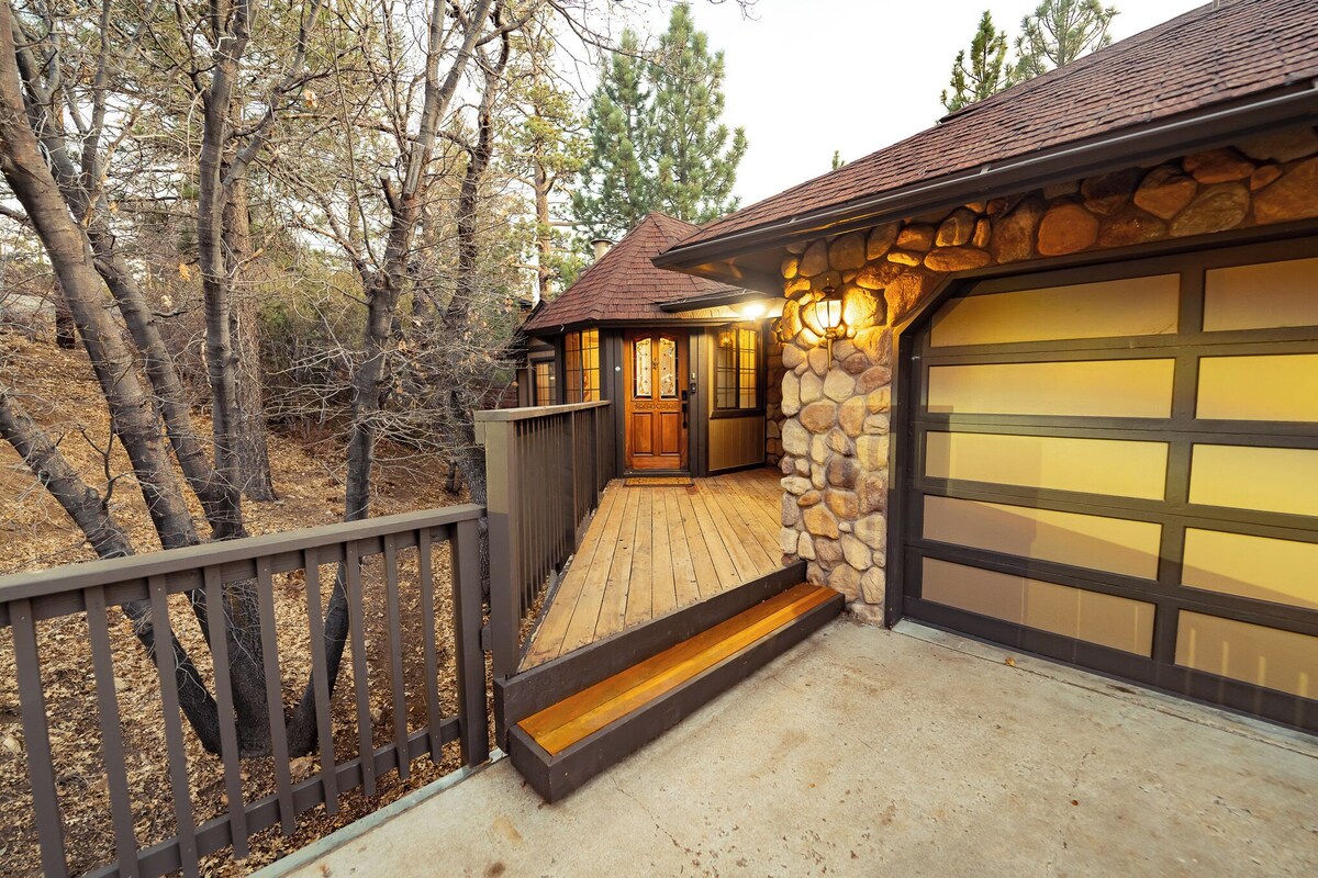 Welcome to Lift View Lodge, where mountain living meets modern luxury. Remodeled in 2024…everything is clean, modern, and NEW! Nestled at the top of Moonridge, Lift View Lodge features an expansive back deck with a BREATHTAKING BEST IN BIG BEAR 270* VIEW of the national forest, and Bear Mountain Ski Resort. Relax and unwind, while soaking in the homes hot tub, perfectly perched atop the back deck to take in some of the best sweeping mountain, forest and ski lift views. Self check-in and the homes flat driveway and front door entrance make arrival during the winter months easy. Interior: Fully updated in 2024. Lift View Lodge boasts a spacious, modern floorplan with two separate living areas, set on opposite sides of the new, open flow kitchen and dining areas. Both sitting areas on the main floor feature large comfortable couches, and huge 100” smart tvs, equipped with Youtube tv and streaming services. The main family room features a beautiful floor to ceiling stone fireplace, making it the perfect place to cozy up by a warm fire during the wintertime. The homes den offers room for your family/group to spread out into a second sitting area featuring a wet bar, and dual temp wine frig. All four bedrooms are spacious, tastefully decorated and designed with comfort in mind. All three bathrooms were fully update in the fall of 2024 and are BRAND NEW! - Master bedroom 1: The completely private upstairs bedroom features a king sized bed, large flat screen smart tv, wood burning fireplace, private balcony, and a beautiful, newly remodeled luxury bathroom. - Bedroom 2 : The spacious guest bedroom features a king sized bed, large flat screen smart tv, and an attached, newly remodeled luxury jack and jill full bathroom. - Bedroom 3: The bunkroom can double as a single bedroom, or the perfect place for all of the kids, featuring a double bottom bed, with a second double bed over top, and a twin trundle underneath. To make it the ultimate kid zone the room also features a large flat screen smart tv, and PacMan machine! - Bedroom 4: The spacious guest bedroom features a queen bed and large flat screen smart tv. - Powder room off of the main living area. CLOSE PROXIMETY TO BEAR MOUNTAIN SKI RESORT, AND A JUST A FEW MINUTE DRIVE TO THE LAKE'S SHORE, AND BIG BEAR VILLAGE!! LIFT VIEW LODGE IS NEWLY REMODELED, MODERN, CLEAN, AND WELL STOCKED - MAKING IT THE PERFECT FOUR SEASON RETREAT! Exterior security cameras on property. Big Bear Vacation Rental License#: VRR -2024-2676 Our prices include all fees. No hidden fees.