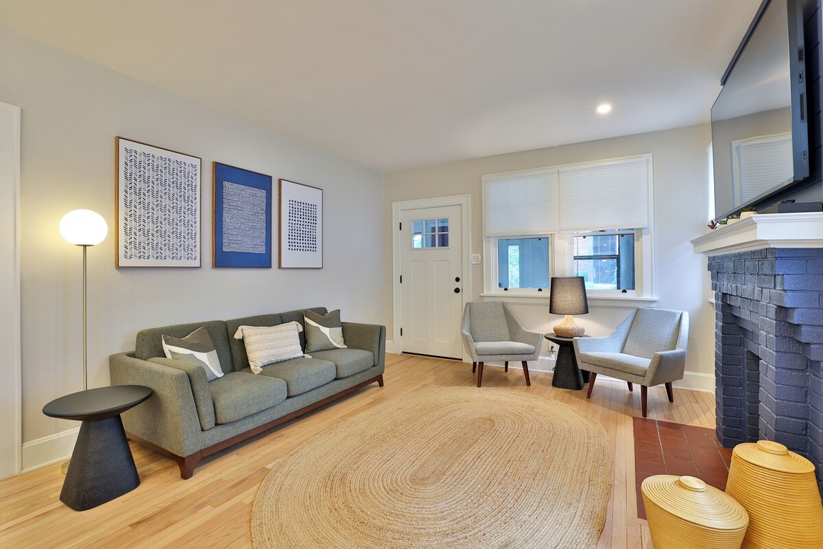 MORE PHOTOS COMING SOON - Step into the perfect blend of historic charm and luxurious comfort at Queen City Blue, a beautifully renovated 1920s home nestled on quiet, tree-lined street in the heart of Hyde Park, one of Cincinnati's best neighborhoods. This meticulously updated home features two bedrooms, one pristine bathroom and a cozy finished basement with pull-out couch, perfect for families and small groups. Enjoy off-street and a private, peaceful backyard walkable to many local coffee shops and retail! Our prices include all fees. No hidden fees.