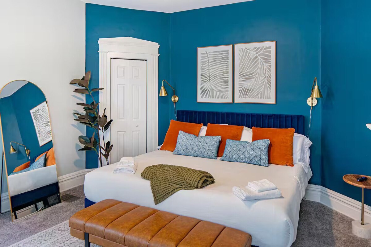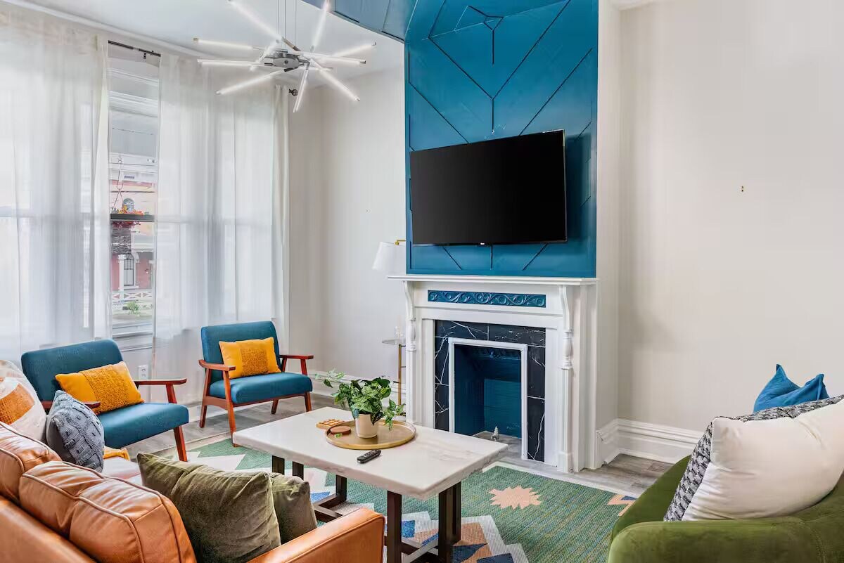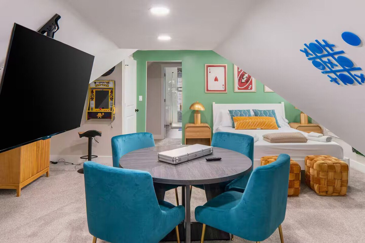Newly renovated 4+1BR, 4BA home in Evanston, minutes from downtown Cincinnati. 8 beds that sleeps 16. One bedroom doubles as an arcade room with plenty of games. Enjoy a private backyard with string lights, a hot tub, cold plunge, mini-golf, corn hole, BBQ grill, and a firepit under a covered gazebo. Walkable neighborhood near East Walnut Hills, Over-the-Rhine, and downtown attractions. Perfect for families or larger groups! Free street parking, Wi-Fi, self check-in. The space: This Cincinnati getaway has plenty to offer including a hot tub, cold plunge, cornhole, mini golf, 5 TVs, cozy outdoor seating with a fire pit, and more! The modern kitchen features quality countertops, a spacious island, and all the essentials for cooking meals. Each bedroom is thoughtfully designed—choose from a luxurious master with bold teal accents, a charming bunk room for kids or groups, or cozy attic spaces with unique decor. The bathrooms are spa-like, with sleek vanities, marble finishes, and a glass shower for relaxation. House set up Floor 1: Living room Kitchen Dining Room Half bathroom Laundry room Floor 2: Bedroom - King bed, TV, workspace Bedroom - King bed, TV, workspace Bedroom - Double Queen bunk bed, TV, workspace 2x Full bathrooms w/ Essentials Floor 3: Bedroom/Entertainment room - Queen bed, TV, arcade games, board games Bedroom - King bed, baby crib & rocking chair Full bathroom w/ Essentials Outside, the private backyard is a true oasis. Soak in the hot tub, practice your swing on the putting green, or enjoy a barbecued meal under the covered gazebo with comfy seating. String lights add a magical touch for evening gatherings, and games like cornhole keep the fun going. Located just minutes from downtown Cincinnati, you’re close to attractions like the Cincinnati Art Museum, Findlay Market, and the vibrant Over-the-Rhine district. Explore local gems in East Walnut Hills, from galleries to cafes, or take a short drive to the Cincinnati Zoo. Whether you’re here for a family vacation, a friends’ getaway, or a relaxing retreat, this home has it all. Book now for an unforgettable stay! Guest access: You can access the home anytime after 4 PM by using the keyless keypad to enter with your unique code that is sent three days prior to arrival. We ask that you respect our home and the quiet hours of the community. Message me to talk about a free early check-in or late check out! Additional rules - No parties - No guests not listed on the reservation - Must respect quiet hours - No smoking in the home. Any evidence of smoke with trigger an automatic $500 feet Our prices include all fees. No hidden fees.