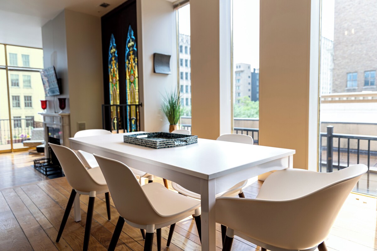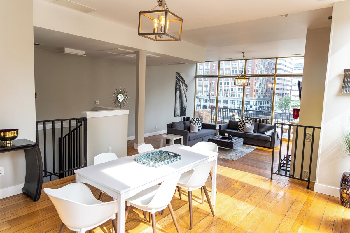 Welcome to your skyline sanctuary in the heart of Cincinnati! This unique and spacious penthouse (sleeps 8) offers sweeping panoramic views of downtown.