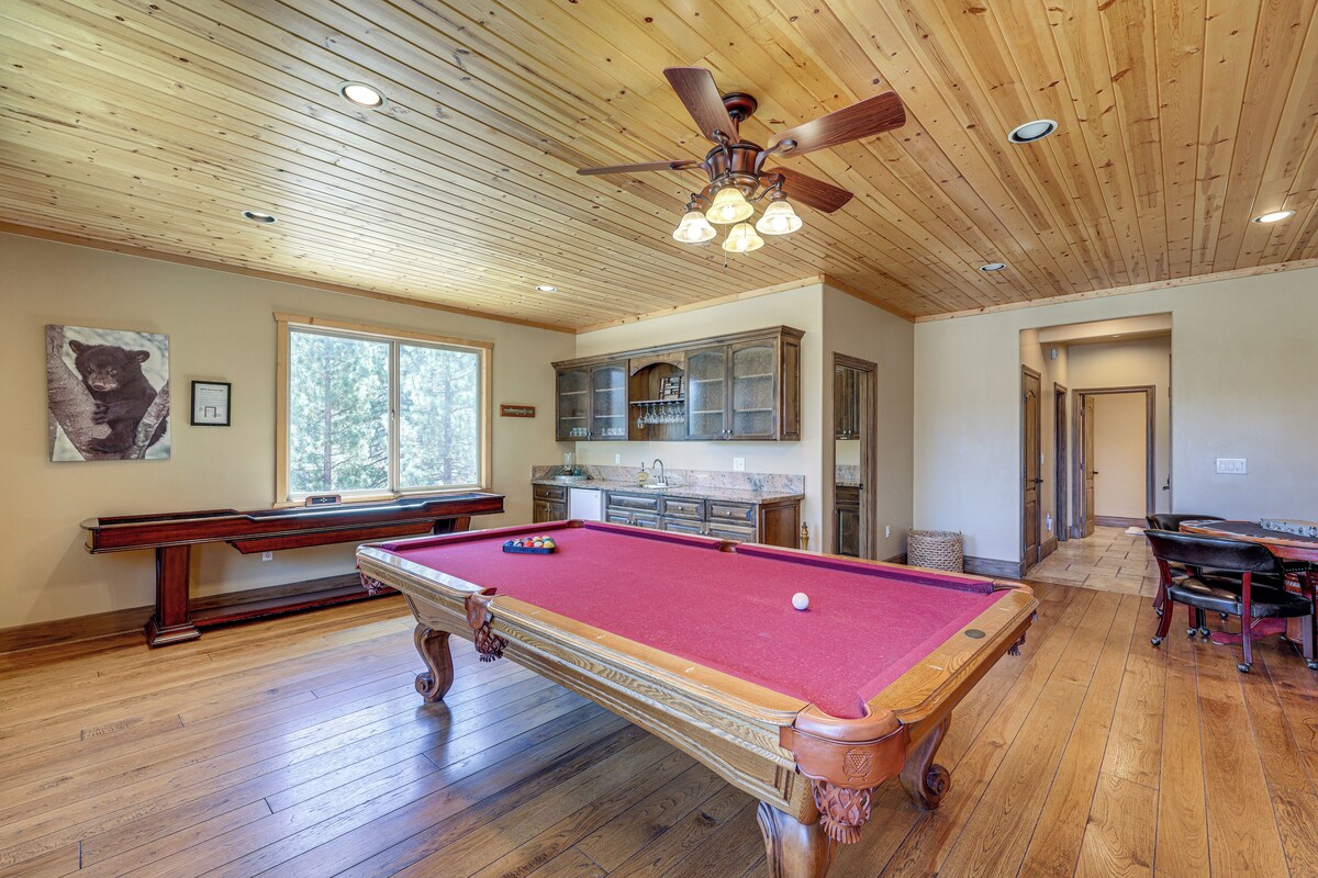 Pet Friendly w/ Fee | Trail Access On-Site Ready for fun, family, and fresh alpine air? Pack your bags and head to this Big Bear Lake vacation rental for a memorable getaway with those who matter most! Ideally situated and stylishly furnished, this 4-bedroom, 3.5-bath home offers the perfect base to shoot rounds of pool, explore quaint shops, hit the lake, or shred the slopes at Snow Summit. After a day full of activity, relax on the deck and soak in breathtaking mountain views! -- THE PROPERTY -- VRR-2025-0050 SLEEPING ARRANGEMENTS - Bedroom 1: 1 king bed - Bedroom 2: 1 bunk bed (twin/queen) - Bedroom 3: 1 bunk bed (twin/queen) - Bedroom 4: 1 queen bed - Additional Sleeping: 1 portable crib OUTDOOR LIVING - Mountain & lake views - Deck w/ gas grill & dining area - Private hot tub - Private yard w/ hiking trail access INDOOR LIVING - Mountain & lake views - Flat-screen TVs, gas fireplaces - Game room w/ wet bar - Pool table, shuffleboard table - Laptop-friendly workspace - En-suite bathroom, jetted tub - Dining table, high chair - Open floor plan KITCHEN - Refrigerator, stove/oven, dishwasher - Keurig & drip coffee makers, blender, toaster - Cooking basics, spices, dishware & flatware - Trash bags/paper towels GENERAL - Central heating - Washer/dryer, laundry detergent, iron/board - Linens/towels, complimentary toiletries, hair dryer - Free WiFi FAQ - 3 exterior security cameras (facing out) - Pet fee (paid pre-trip) - Quiet hours (10:00 PM-7:00 AM) - No A/C ACCESSIBILITY - 2-story home, exterior stairs to enter - 1 bedroom & 1 full bathroom on 1st floor PARKING - Garage (2 vehicles) - Partially shared driveway (2 vehicles) -- THE LOCATION -- - Walk to shops, restaurants & marina - 0.8 miles to Alpine Slide at Magic Mountain - 1 mile to Ski Beach Park & 2 miles to Snow Summit - 3 miles to Big Bear Alpine Zoo - 11 miles to Snow Valley Mountain Resort & 22 miles to SkyPark at Santa's Village - 38 miles to San Bernardino Int'l Airport -- REST EASY WITH US -- Evolve makes it easy to find and book properties you’ll never want to leave. You can relax knowing that our properties will always be ready for you and that we’ll answer the phone 24/7. Even better, if anything is off about your stay, we’ll make it right. You can count on our homes and our people to make you feel welcome — because we know what vacation means to you. -- POLICIES -- - No smoking - Pet friendly w/ $50 fee (+ fees & taxes) - No events, parties, or large gatherings - Additional fees and taxes may apply - Photo ID may be required upon check-in - Please observe quiet hours from 10:00 PM to 7:00 AM ADDITIONAL INFORMATION - This 2-story home requires exterior stairs to enter; the 1st floor includes 1 bedroom and 1.5 bathrooms - This property does not offer air conditioning - Your safety matters. This property features 3 exterior security cameras: 1 camera is located on the front door facing the front outdoor entry, 1 camera is located on the front of the home facing the driveway, and 1 camera is located on the deck facing the back outdoor entry. The cameras do not look into any interior spaces. The cameras record video and sound when activated by motion Our prices include all fees. No hidden fees.