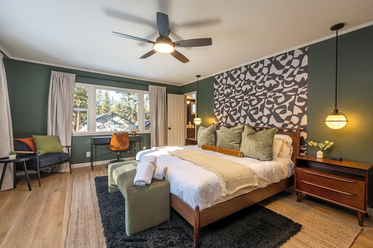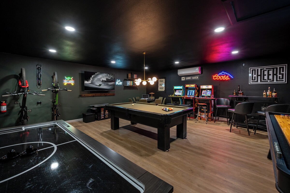 Perfectly located walking distance to Big Bear's resorts, lake, and village, this newly remodeled retreat offers 4 bedrooms, 2 baths, and over 2,200 sq. ft. of living space. Nestled on a spacious ¼-acre lot just below Snow Summit, there’s plenty of room for family and furry friends to play. Inside, enjoy wood-beamed ceilings, two fireplaces, and abundant natural light. Step outside to a fire pit, hot tub, and sauna, or have fun in the 400 sq. ft. heated game room. The ultimate mountain getaway