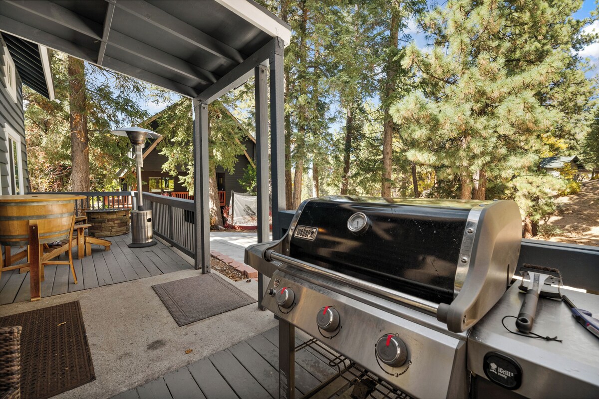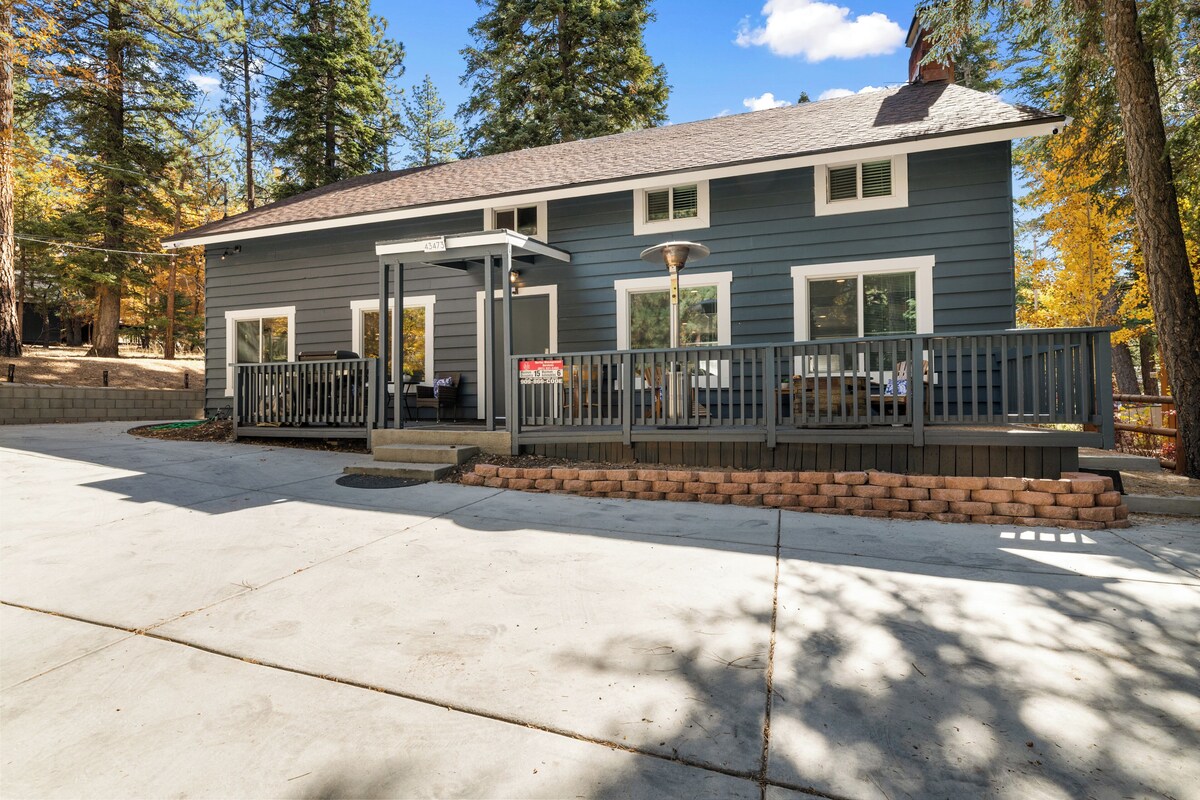 Moonridge FUN ZONE Cabin in Big Bear Lake for ALL AGES! Walk to Bear Mt & golf! Sleeps 15 (11 beds), dual living rooms (up/down), chef’s kitchen, massive wood-burning, stone fireplace. Packed with fun: pool, ping pong, poker, foosball and checkers tables. Wii, blue rays, and 8 TV's for consols, streaming, movies and sports. Stargaze in the hot tub, enjoy the quiet cul-de-sac and go sledding in the snow-play yard! Dual living rooms (up and down). Enjoy Giant Jenga, Corn Hole, sledding down the driveway and/or walking to Moonridge Coffee & Dank Donuts! Curated especially for families, retreats & group getaways. Come ski, board, hike, bike, paddle, fish and dine your way through Big Bear Lake! Lalacolusa is a hidden gem! Our prices include all fees. No hidden fees.