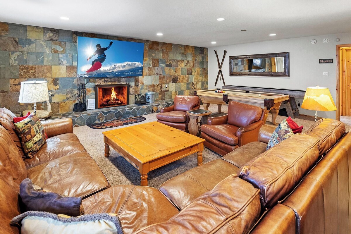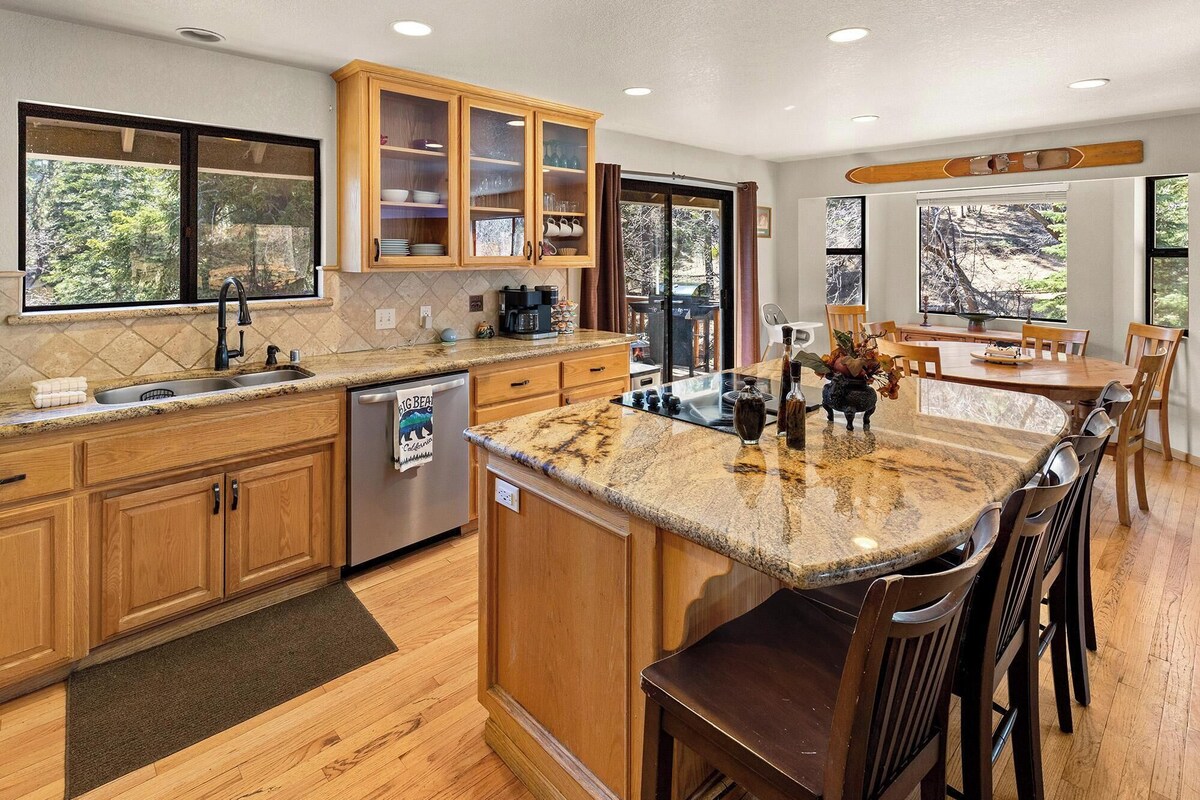 ★★Mountain Pines Lodge is a spacious and serene four-bedroom mountain retreat nestled at the end of a quiet street, backing directly onto the National Forest in Big Bear Lake. This peaceful escape offers both privacy and convenience—just a short walk to The Village and less than two miles to Snow Summit Ski Resort. Whether you’re planning an adventure-filled getaway or a relaxing retreat in nature, Mountain Pines Lodge has everything you need for a perfect stay.★★ ★★ HIGHLIGHTS ★★ ✓ 4 Bedroom Multi-Level Cabin Backing to National Forest ✓ Short Walk to The Village + Less Than 2 Miles to Snow Summit ✓ Multi-Level Outdoor Decks w/ Hot Tub + Propane BBQ + Forest Views ✓ Large Open Concept Living Area w/ Plush Leather Sectional & Smart TV ✓ Fully Stocked Kitchen w/ Granite Counters, Large Island, Gas Range, Dishwasher & Keurig ✓ Game Room w/ Pool Table, Shuffleboard, Bar w/ Sink & Full Fridge, Fireplace & Smart TV ✓ Pet-Friendly ✓ High-Speed Internet & WiFi + Smart TVs w/ Streaming Services ✓ Washer & Dryer + Towels & Linens Provided ★★ SPACIOUS LODGE-STYLE LIVING ★★ Step into comfort with an open floor plan that combines the living room, kitchen, and dining area—perfect for gathering with family and friends. Relax on the oversized leather sectional while streaming your favorite show on the large Smart TV, or step outside for fresh mountain air and forest views from the upper deck. ✓ Open Concept Living Area w/ Plush Leather Sectional, Smart TV & Forest Views ✓ Sliding Doors to Upper Deck w/ Outdoor Dining Table + Propane BBQ ✓ Cozy Mountain Furnishings + Inviting Natural Light ★★ KITCHEN & DINING ★★ Whip up hearty breakfasts or gourmet dinners in the fully stocked kitchen featuring granite countertops, stainless steel appliances, and a large island with barstool seating. Whether you're cooking for a crowd or just making coffee to sip on the deck, you’ll have everything you need. ✓ Fully Equipped Kitchen w/ Granite Counters & Stainless Steel Appliances ✓ Gas Oven/Range, Dishwasher, Microwave & Keurig Coffee Maker ✓ Indoor Dining Table w/ Seating for 6 + Kitchen Island Bar Seating ✓ Outdoor Dining on Deck w/ Forest Views & Propane BBQ ★★ RESTFUL BEDROOMS & BATHROOMS ★★ With four well-appointed bedrooms across multiple levels, every guest can enjoy privacy and comfort. Cozy décor and soft linens set the scene for restful mountain nights. Bathrooms are conveniently located on both the upper and lower levels. ✓ Master Bedroom (Upper Level): King Bed, Smart TV, En-Suite Bathroom w/ Double Sink Vanity + Shower/Tub Combo ✓ Bedroom 2 (Upper Level): Queen Bed, Smart TV, Closet, Views of Backyard ✓ Bedroom 3 (Upper Level): Queen Bed, Smart TV, Closet, Lake/Fishing Themed Décor ✓ Bedroom 4 (Lower Level): Two Twin-Over-Twin Bunk Beds, Smart TV, Oversized Bean Bag Chair & Closet ✓ Bathrooms: • Lower Level: ¾ Bathroom w/ Walk-In Shower • Upper Level: ¾ Bathroom w/ Walk-In Shower ★★ ENTERTAINMENT & OUTDOOR RELAXATION ★★ Head downstairs to the ultimate entertainment space. Shoot pool, play shuffleboard, mix drinks at the bar, or curl up by the wood-burning fireplace while watching a movie on the oversized Smart TV. Step outside to the lower deck for a relaxing soak in the hot tub surrounded by peaceful pines. ✓ Game Room w/ Pool Table, Shuffleboard, Wood-Burning Fireplace & Smart TV ✓ Bar Area w/ Mini Sink + Full Refrigerator ✓ Outdoor Lower Deck w/ Hot Tub, Dining Area & Forest Views ✓ Bose Sound System for an Immersive Movie or Music Experience ★★ Let Mountain Pines Lodge be your home base for the ultimate Big Bear experience! With a peaceful forested setting, stylish interior comforts, a game-packed entertainment space, and proximity to both The Village and Snow Summit, this beautifully crafted cabin is the perfect retreat for families, friends, and furry companions alike. Book now and start making mountain memories that will last a lifetime! ★★ 2025-1796 Important: Dear Traveler, you will be charged with USD 200 in case you include a Pet in your reservation as a Refundable Damage Deposit for Pets. Our prices include all fees. No hidden fees.