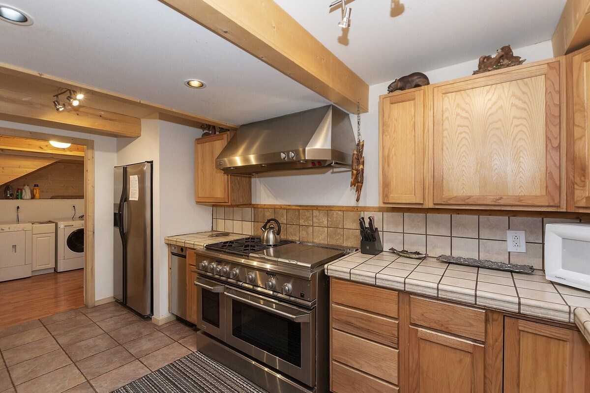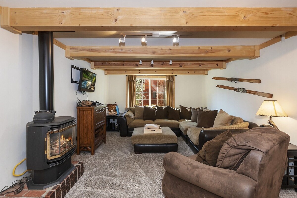 ★★The Great Escape is within walking distance to the shuttles that will take you to Bear Mountain Resort★★ ★★ Highlights ★★ ✓ Pine Log Staircase & Open Beam Ceilings: Welcoming you upon entry with rustic charm. ✓ Upper Deck: Enjoy a cup of coffee or a drink in the evening with peaceful forest views. ✓ Entertainment Space: Large kitchen with upgraded stainless steel appliances, breakfast bar, dining area, and oversized sectional in the living room for movie nights. ✓ Outdoor Amenities: PET FRIENDLY with newly installed dog run, well-treed lot with a propane barbecue, and hot tub for soaking under the stars. ★★ Kitchen & Dining ★★ ✓ Fully Equipped Kitchen: Stainless steel appliances, including fridge/freezer combo, large gas range with indoor grill and griddle, double oven, microwave, dishwasher, and coffee maker. ✓ Dining Area: Breakfast bar and adjacent dining table, perfect for family meals. ✓ Butler’s Room: Convenient powder bath and full-size washer and dryer just off the kitchen. ★★Bedroom Dynamics★★ ✓ Master Suite Retreat: Queen bed, flat-screen TV with Roku, sunken jetted tub (jets currently out of order), separate shower, and access to the sunroom with two twin daybeds. ✓ Additional Bedrooms: One bedroom with a queen bed and flat-screen TV, and another downstairs bedroom with a twin over full-size bunk. ★★ Outdoor Living ★★ ✓ Backyard Access: Step outside from the living area to a serene backyard surrounded by trees. ✓ Hot Tub: Relax after a day of adventures. ✓ Propane Barbecue: Perfect for grilling up a feast. ✓ PET FRIENDLY : Newly installed dog run ★★ The Great Escape offers a peaceful mountain retreat with modern amenities and comfortable spaces. Book your stay today and experience the charm of Big Bear! ★★ 2025-1397 Important: Dear Traveler, you will be charged with USD 200 in case you include a Pet in your reservation as a Refundable Damage Deposit for Pets. Our prices include all fees. No hidden fees.