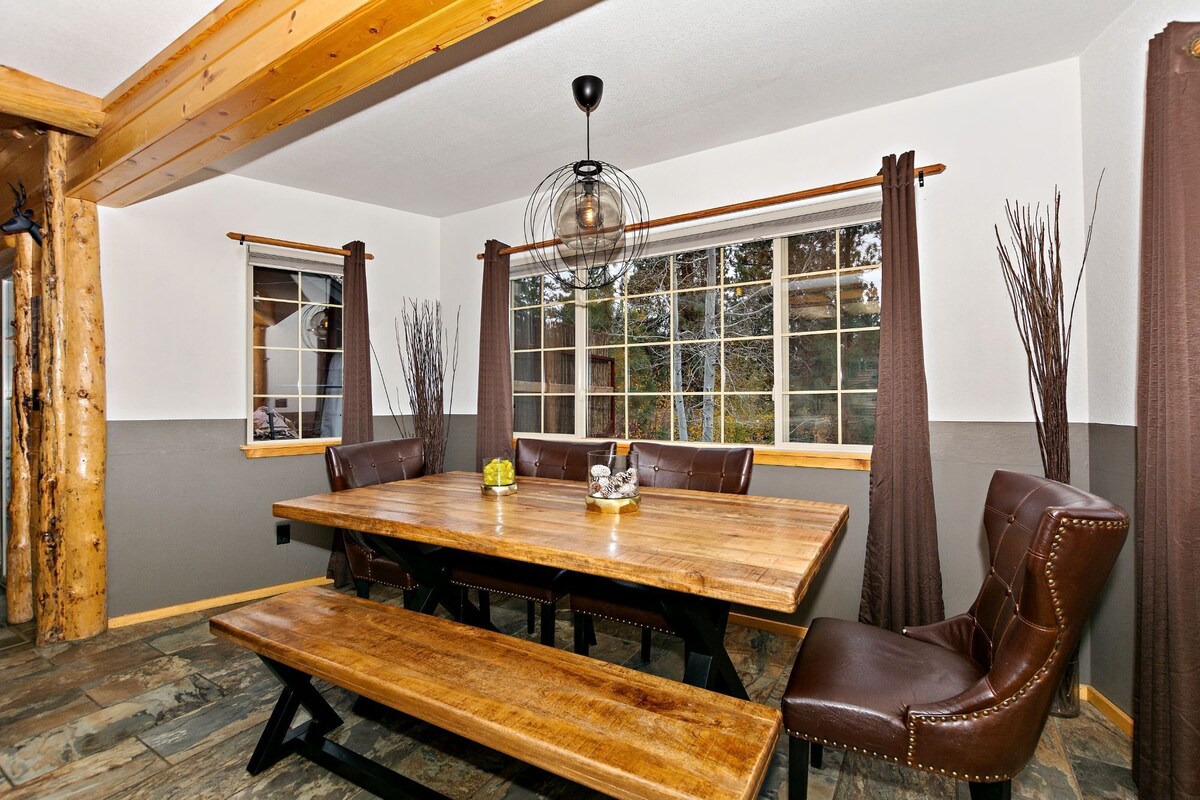 ★★Escape to The Crazy Bear , a charming 3-bedroom PET FRIENDLY mountain cabin just minutes from Bear Mountain Resort and Big Bear’s best attractions. With its cathedral knotty pine ceilings, warm mountain décor, wood-burning fireplace, and outdoor hot tub, this lodge is the perfect blend of comfort and rustic charm. Whether you’re here to ski, hike, or simply relax by the fire, you’ll feel right at home in this inviting retreat. ★★ ★★ HIGHLIGHTS ★★ ✓ 3 Comfortable Bedrooms + 2 Full Bathrooms ✓ PET FRIENDLY ✓ Wood-Burning Fireplace + Smart TVs with Streaming ✓ Spacious Open Floor Plan with Knotty Pine Cathedral Ceilings + Central Heat ✓ Fully Equipped Kitchen w/ Stainless Steel Appliances ✓ Outdoor Hot Tub + Propane BBQ ✓ Fenced Backyard – Great for Kids or Pets ✓ Multi Arcade Pac-Man + PlayStation 3 (bring your favorite games!) ✓ Washer & Dryer Available ✓ Towels and Linens Provided ✓ Convenient Location – Minutes to Bear Mountain & Shops ★★ COZY MOUNTAIN LIVING ★★ Gather in the open living room where cathedral ceilings and mountain décor create a true alpine ambiance. Curl up on the comfy sofas, stream your favorite shows on the Smart TV, or warm up by the wood-burning fireplace after a day of adventure. ✓ Open-Concept Living Room w/ Plush Seating & Large Smart TV ✓ Wood-Burning Corner Fireplace for Cozy Nights ✓ Mountain-Style Decor & Vaulted Knotty Pine Ceilings ★★ FULLY EQUIPPED KITCHEN ★★ The heart of the cabin features a bright and spacious kitchen with everything you need to prepare home-cooked meals or holiday feasts. ✓ Stainless Steel Appliances + Gas Range & Dishwasher ✓ Coffee Pot & Keurig for Your Morning Brew ✓ Microwave, Cookware, Utensils & Dishware Provided ✓ Dining Table for 7 + Breakfast Counter for Extra Seating ★★ PEACEFUL BEDROOMS ★★ With three well-appointed bedrooms, Crazy Bear Lodge offers restful nights and plenty of space for families or groups. ✓ Bedroom 1: Twin-over-Queen Bunk, Smart TV & PlayStation 3(Bring Your Own Games) ✓ Bedroom 2: Queen Bed, Smart TV, Direct Access to Deck & Yard ✓ Master Bedroom 3: King Bed, Smart TV, Private Full Bathroom ✓ 1 Additional Full Bathroom w/ Shower/Tub Combo ★★ OUTDOOR FUN ★★ Step outside and enjoy the fresh mountain air! The fenced backyard offers space for kids or pets to play, while the HOT TUB is the perfect spot to unwind under the stars. ✓ Relaxing HOT TUB on the Deck ✓ Propane BBQ for Grilling & Outdoor Dining ✓ Fenced Backyard with Plenty of Room to Roam ✓ Peaceful Setting Minutes from Bear Mountain ★★Whether you’re hitting the slopes, exploring hiking trails, or simply relaxing by the fire, The Crazy Bear has everything you need for a memorable Big Bear vacation. Cozy, convenient, and full of charm, this cabin is the perfect place to make lasting mountain memories. Book your stay today!★★ ★★ IMPORTANT NOTES ★★ ✓ No Cable: Streaming services available on Smart TVs. ✓ PS3 Games: Not provided, please bring your own. ✓ Security Cameras: Exterior cameras are for policy enforcement and compliance. Damaging cameras may result in loss of security deposit. 2025-1383 Important: Dear Traveler, you will be charged with USD 200 in case you include a Pet in your reservation as a Refundable Damage Deposit for Pets. Our prices include all fees. No hidden fees.