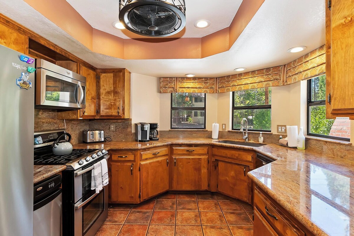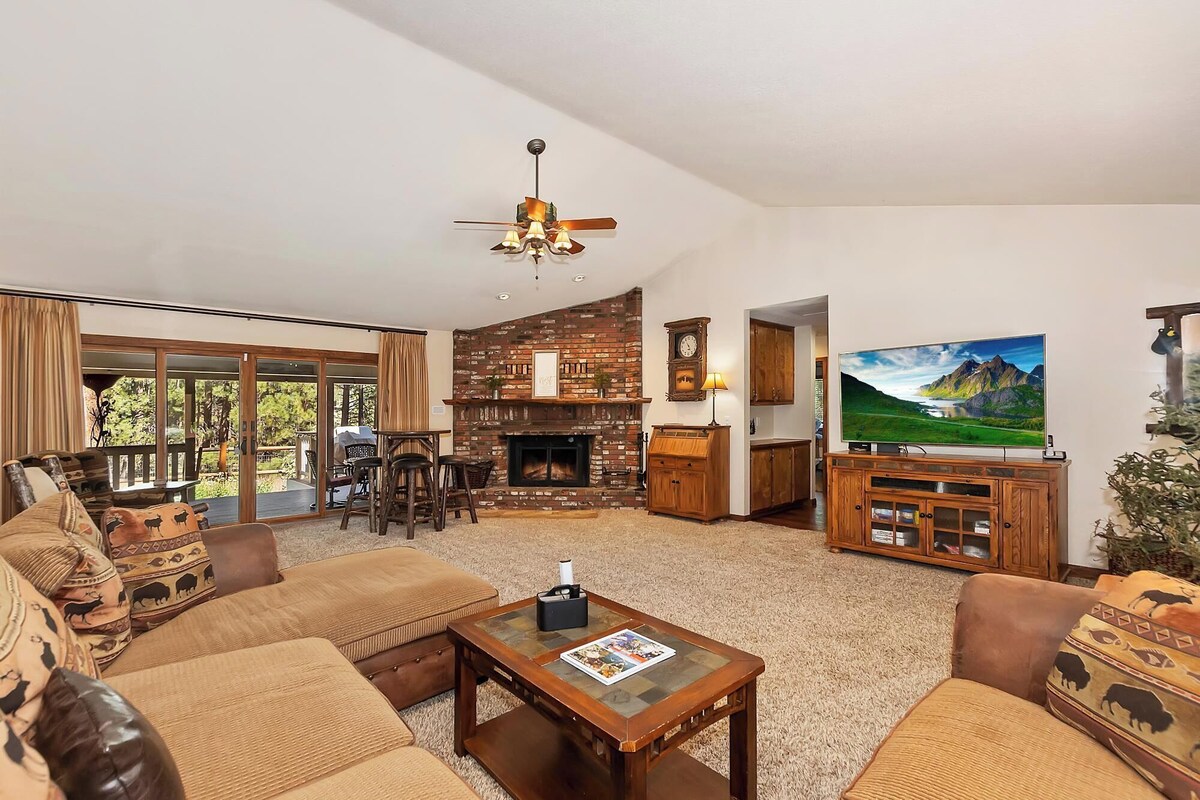 Discover comfort and convenience at Big Bear Bungalow, a charming single-story cabin nestled in the desirable Fox Farm neighborhood of Big Bear Lake. This 3-bedroom, 2-bathroom retreat is perfectly positioned minutes from the slopes, lake, recreation areas, shopping, and dining. Designed with families in mind, this home features kid-friendly amenities, mountain decor, and luxurious finishes, offering an exceptional base for your Big Bear adventures. ★★ HIGHLIGHTS ★★ · Prime Location: Close to slopes, lake, shopping, and dining. · Family-Friendly Features: Kid-friendly amenities and a fenced yard. · Outdoor Entertainment: Covered deck, hot tub, and gas barbecue. · Modern Comforts: Smart TVs, Spectrum Cable, and luxury finishes. ☆☆ Spacious Great Room ☆☆ The open great room invites you to relax on a large sofa while enjoying your favorite shows on the big flat-screen Smart TV with Spectrum Cable and a DVD player. The wood-burning fireplace adds a cozy touch, perfect for snowy winter nights. · Living Room Features: Large sofa, Smart TV, Spectrum Cable, DVD player, wood-burning fireplace. ☆☆ Gourmet Kitchen ☆☆ Prepare delicious meals in the well-equipped kitchen featuring granite countertops, stainless steel appliances, a gas range with double oven, dishwasher, coffee pot, and microwave. The kitchen includes ample counter space and a breakfast bar with seating, making it ideal for family meals and gatherings. · Kitchen Features: Granite counters, stainless steel appliances, gas range with double oven, dishwasher, coffee pot, microwave, breakfast bar. ☆☆ Outdoor Oasis ☆☆ The back yard offers a fantastic space for relaxation and fun. Enjoy the covered deck with smart TV, gas barbecue, and various seating options. Unwind in the hot tub after a day of exploring. The yard is fenced for privacy, and there’s an adjoining open lot (private property, not for tenant use). · Outdoor Features: Covered deck, smart TV, gas barbecue, hot tub, fenced yard. ☆☆ Comfortable Bedrooms ☆☆ Three well-appointed bedrooms ensure a restful stay. The master suite features a king bed, electric fireplace, TV with Firestick Streaming, back deck access, and a private bathroom with double sinks and a multi-sprayer shower. The second bedroom includes a queen bed and a twin bed with Roku streaming TV. The third bedroom offers a queen and a full bed with Roku streaming TV. Additionally, a Pack & Play and highchair are available for the little ones. · Master Suite: King bed, electric fireplace, TV with Firestick Streaming, private bathroom with double sinks and multi-sprayer shower. · Second Bedroom: Queen bed, twin bed, Roku streaming TV. · Third Bedroom: Queen bed, full bed, Roku streaming TV. ☆☆ Additional Amenities ☆☆ · Convenience: Washer and dryer, central heat, ceiling fans. · Family Essentials: Pack & Play, highchair, towels, and linens provided. Big Bear Bungalow offers a perfect blend of modern comfort and mountain charm, making it an ideal choice for a memorable family vacation. Book your stay today and experience all that Big Bear Lake has to offer! 2024-2595 Important: Dear Traveler, you will be charged with USD 200 in case you include a Pet in your reservation as a Refundable Damage Deposit for Pets. Our prices include all fees. No hidden fees.