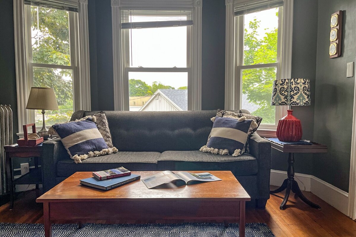 Spacious Cozy 4 bedroom, 2 bath Back Cove 2nd floor condo in a lovely Portland neighborhood. Great for groups and families! Centrally located just off Forest Ave, near Woodfords Corner, Back Cove, and the University of Southern Maine. Walk to cute local eateries and The Great Lost Bear! Back Cove Trail just a 3 min walk down the street to see the ocean! 5 min drive to Old Port, or catch the #2 Bus to downtown (every hour). • Sleeps 12! Larger groups inquire about renting the 1st floor unit in this building as well. • Off street Parking for 2 cars. Easy, free street parking as well. • Smart lock self check-in - Queen beds in each bedroom (2 queens in the largest bedroom). Queen pull out couch in the living room. - High-Speed Internet and Smart TV - Fully equipped kitchen - A/C window units - Designated Outdoor Grill & Picnic Tables - Relaxing Outdoor Porch - Beach Chairs & Insulated Coolers available for use. - Community Bike Share corral located down the street Guests have access to the Second Floor Condo and will be given a unique code to enter and exit through the front door or back door at their pleasure. Please Note: The exterior home entrances are monitored by security cameras for your safety. There is NO SMOKING or vaping of any kind. Designated smoking area outside. Registration number Permit # 001321-2019 Our prices include all fees. No hidden fees.