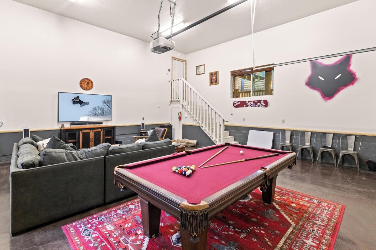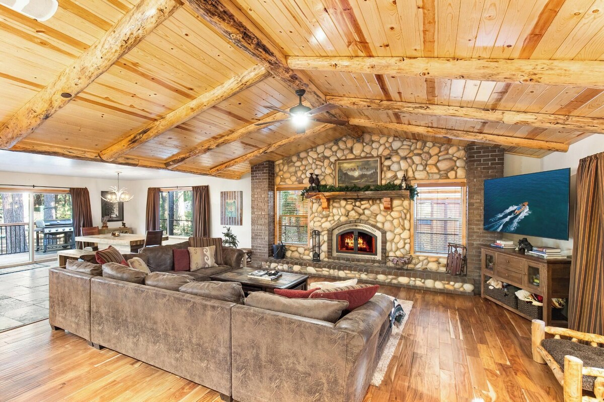 ★★ Escape to Lone Wolf Lodge, your serene and stylish mountain getaway in the heart of Big Bear! Perfectly located near Snow Summit, the Village, hiking trails, and all the best local attractions, this beautifully furnished cabin offers everything you need for an unforgettable alpine escape. Whether you're soaking in the hot tub, enjoying family movie nights, or relaxing under the pines, Lone Wolf Lodge is the perfect home base for year-round adventure. ★★ ★★ HIGHLIGHTS ★★ ✓ Prime location near Snow Summit, the Village, and hiking/biking trails ✓ Spacious open-concept living area with wood-burning fireplace ✓ PET FRIENDLY (2 dogs maximum) ✓ Central heating, ceiling fans, and thoughtful cabin décor ✓ Game room with pool table, 75” smart TV, and cornhole ✓ Private HOT TUB and hammock with forest views ✓ Three comfy bedrooms + sleeper sofa (sleeps up to 9) ✓ Fully equipped chef’s kitchen with stainless steel appliances ✓ High-speed Wi-Fi, premium TV channels (HBO Max, NFL, Showtime & more) ✓ Fenced backyard, large deck, and propane grill ✓ Laundry room with oversized washer/dryer + granite folding countertops ✓ Driveway parking and easy year-round access ✓ Towels and Linens Provided ★★ LIVING & ENTERTAINMENT ★★ Step into a cozy, open-concept living space designed for quality time and relaxation. Gather around the beautiful stone fireplace or stretch out on the plush leather sectional for a movie night with the whole crew. With premium streaming options and a welcoming layout, this is the heart of your mountain retreat. ✓ Cozy living room with plush leather sectional + queen pull-out bed ✓ Smart TV with 175+ channels including sports & movie packages ✓ Wood-burning fireplace with custom stonework ✓ Dining area with rustic table and bench seating ✓ Upgraded Wi-Fi – perfect for remote work or streaming ★★ GOURMET KITCHEN ★★ Whether you're brewing your morning coffee or cooking a full family meal, this kitchen has everything you need. With granite countertops, stainless steel appliances, and a bonus prep sink, the family chef will feel right at home. The open flow to the dining and living areas keeps everyone connected while meals come together. ✓ Granite countertops and spacious prep island with bonus sink ✓ Stainless steel appliances including gas range & microwave ✓ Pantry, Keurig & drip coffee makers, and full cookware ✓ Bar seating and easy access to outdoor dining on the deck ★★ OUTDOOR LIVING ★★ Step outside and breathe in the fresh mountain air as you unwind on the spacious deck. Fire up the grill, kick back in the hammock, or soak in the hot tub while gazing at the surrounding pine forest. With a fenced yard and peaceful views, this is the outdoor sanctuary you've been craving. ✓ Private HOT TUB overlooking peaceful pine forest ✓ Hammock strung between trees – perfect for afternoon naps ✓ Propane BBQ grill and large deck for summer cookouts ✓ Fenced backyard – ideal for kids or furry friends ✓ Seasonal note: Hammock and patio furniture available May–October ★★ BEDROOMS & BATHS ★★ After a full day of Big Bear adventures, retreat to cozy and inviting bedrooms for a restful night’s sleep. The spacious primary suite offers forest views and spa-like comforts, while the guest rooms provide privacy and comfort for everyone in your group. Every detail is designed to help you recharge in style. ✓ Primary Suite – King bed, twin pull-out bed, en-Suite Bath with Double sinks, jetted tub, large tiled shower, & Toilet + Smart TV + ceiling fan + deck access + forest views ✓ Bedroom 2 – Queen bed + ceiling fan + mirror closet doors + cozy reading nook w/forest views ✓ Bedroom 3 – Queen bed + Smart TV + ceiling fan + mirror closet doors + cozy reading nook w/forest views ✓ Bonus Sleeping – Queen sofa sleeper in living room ✓ Full Hallway Bathroom ★★ GAME ROOM: THE WOLF’S DEN ★★ Head downstairs to the ultimate hangout spot where fun and relaxation collide. Whether you're shooting pool, playing cornhole, or catching the big game on the massive 75” TV, there’s something here for everyone. It’s the perfect space to make lasting memories with family and friends. ✓ 75” Smart TV with speaker system – perfect for game day ✓ Full-size pool table and cornhole ✓ Board games and comfy sectional for the whole crew ✓ Stained concrete floors with rustic modern vibes ★★ IMPORTANT NOTES ★★ To ensure a smooth stay for you and future guests, please review a few important reminders. Trash must be taken to designated local drop-off sites, and firewood should be brought with you. Outdoor amenities like the hammock and patio furniture are seasonal and available May through October. ✓ Guests are responsible for taking their own trash to local dump sites ✓ Please bring your own firewood – none is provided ✓ Do not use neighbor’s trash bins or take wood from nearby properties ✓ Patio furniture and hammock not available November–April ★★ Whether you’re hitting the slopes, hiking through the forest, or enjoying a family game night, Lone Wolf Lodge offers the perfect mix of rustic charm and modern comfort. With nature at your doorstep and Big Bear’s best attractions just minutes away, this is the mountain escape you’ve been dreaming of... Book your stay today! ★★ 2024-0918 Important: Dear Traveler, you will be charged with USD 200 in case you include a Pet in your reservation as a Refundable Damage Deposit for Pets. Our prices include all fees. No hidden fees.